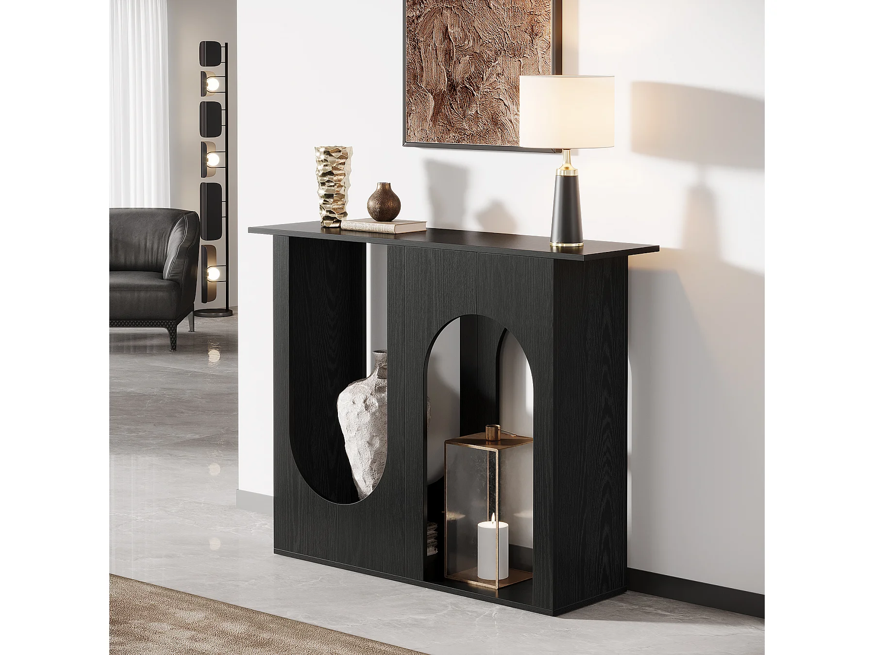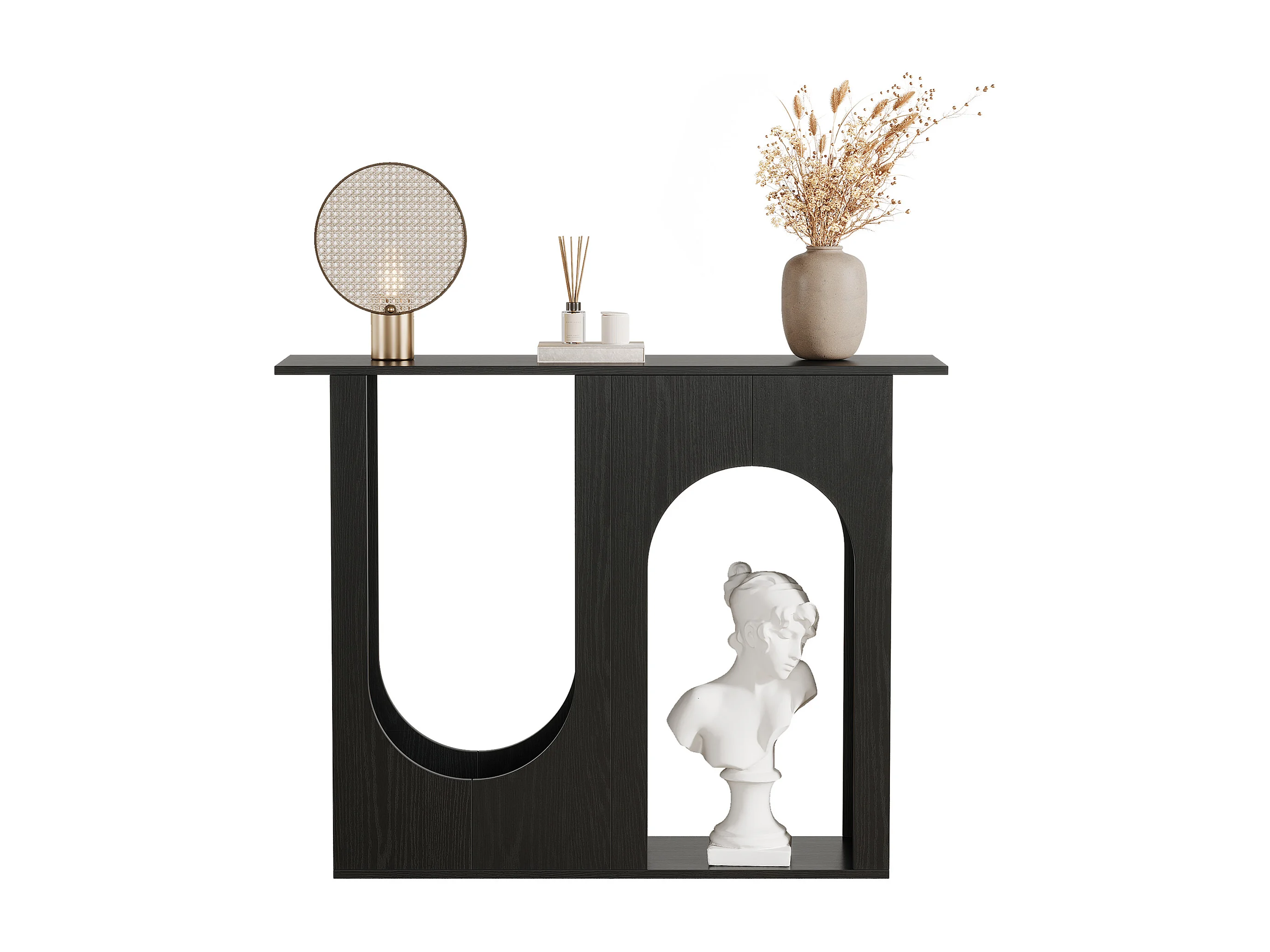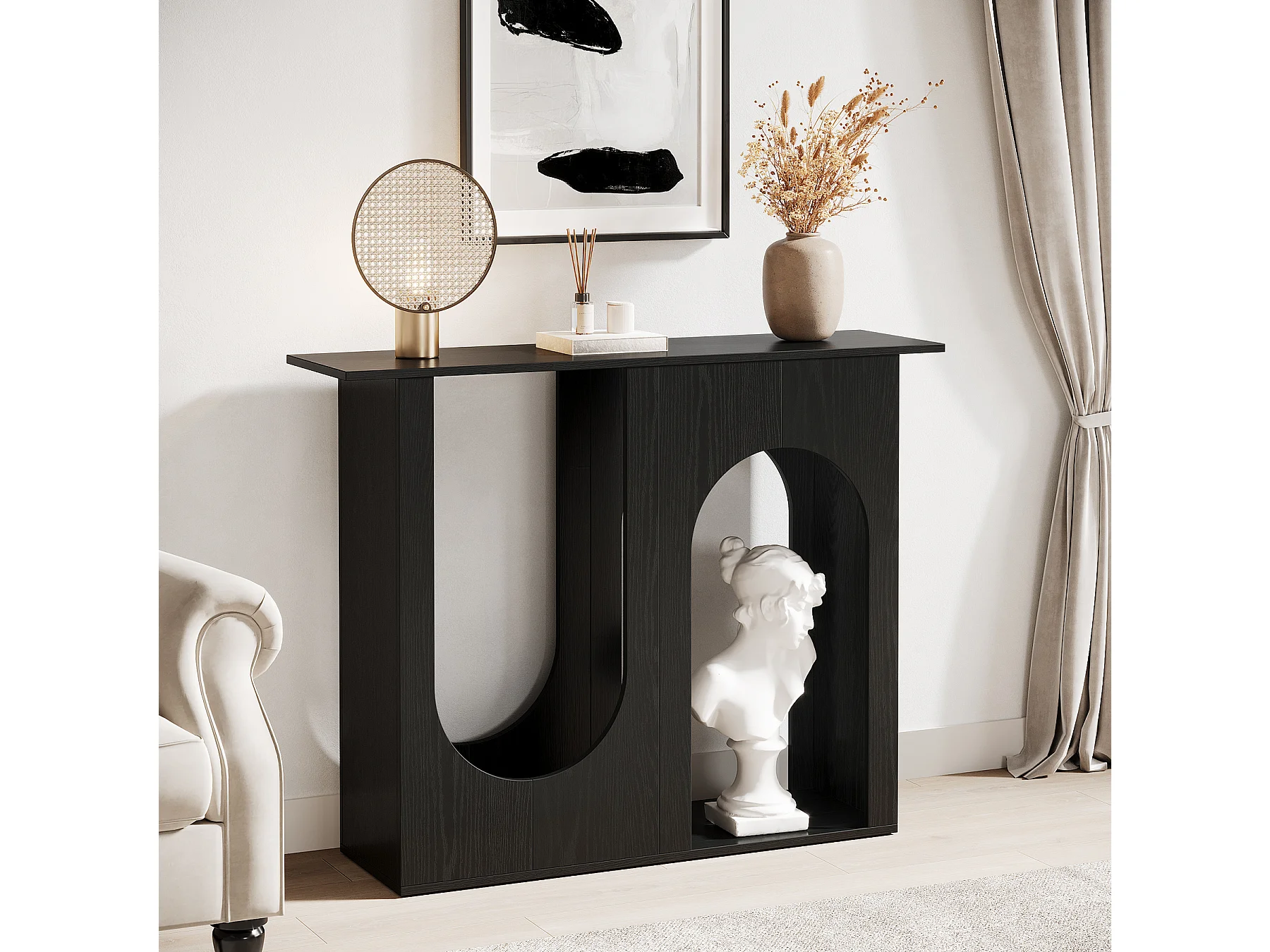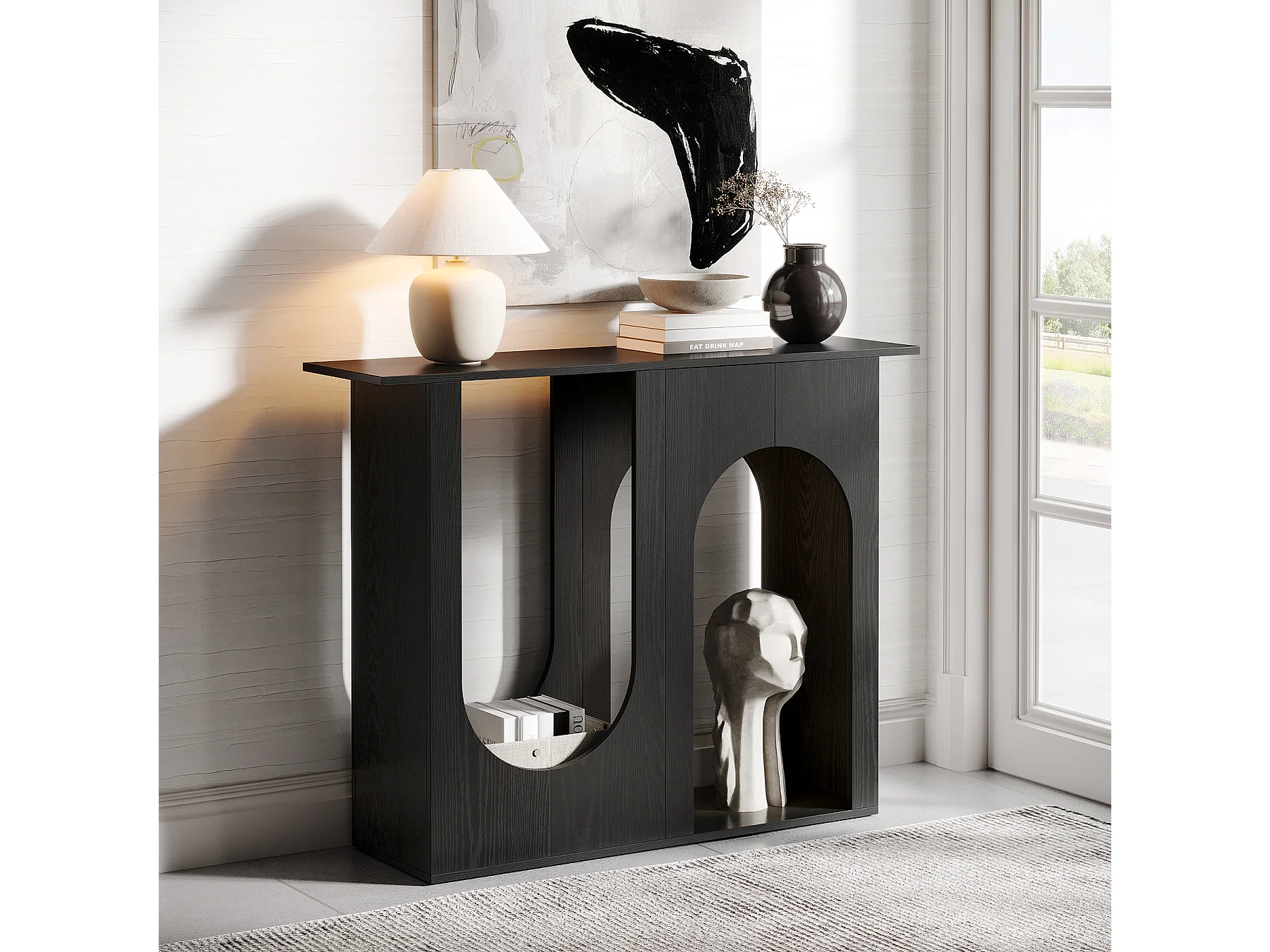 100 cm czarny stolik kawowy, wąska konsola za kanapą o łukowym kształcie, nowoczesna konsola do przedpokoju