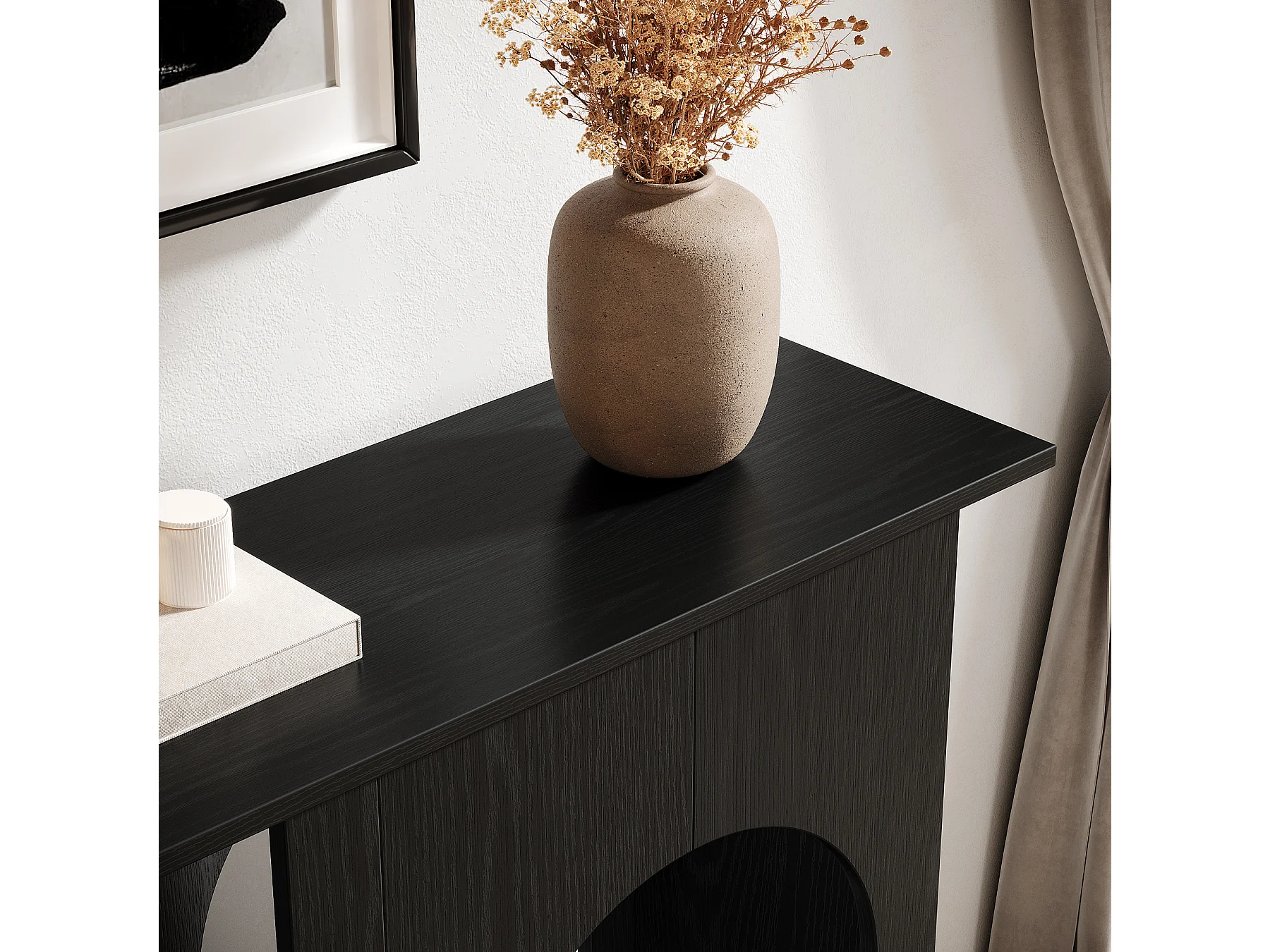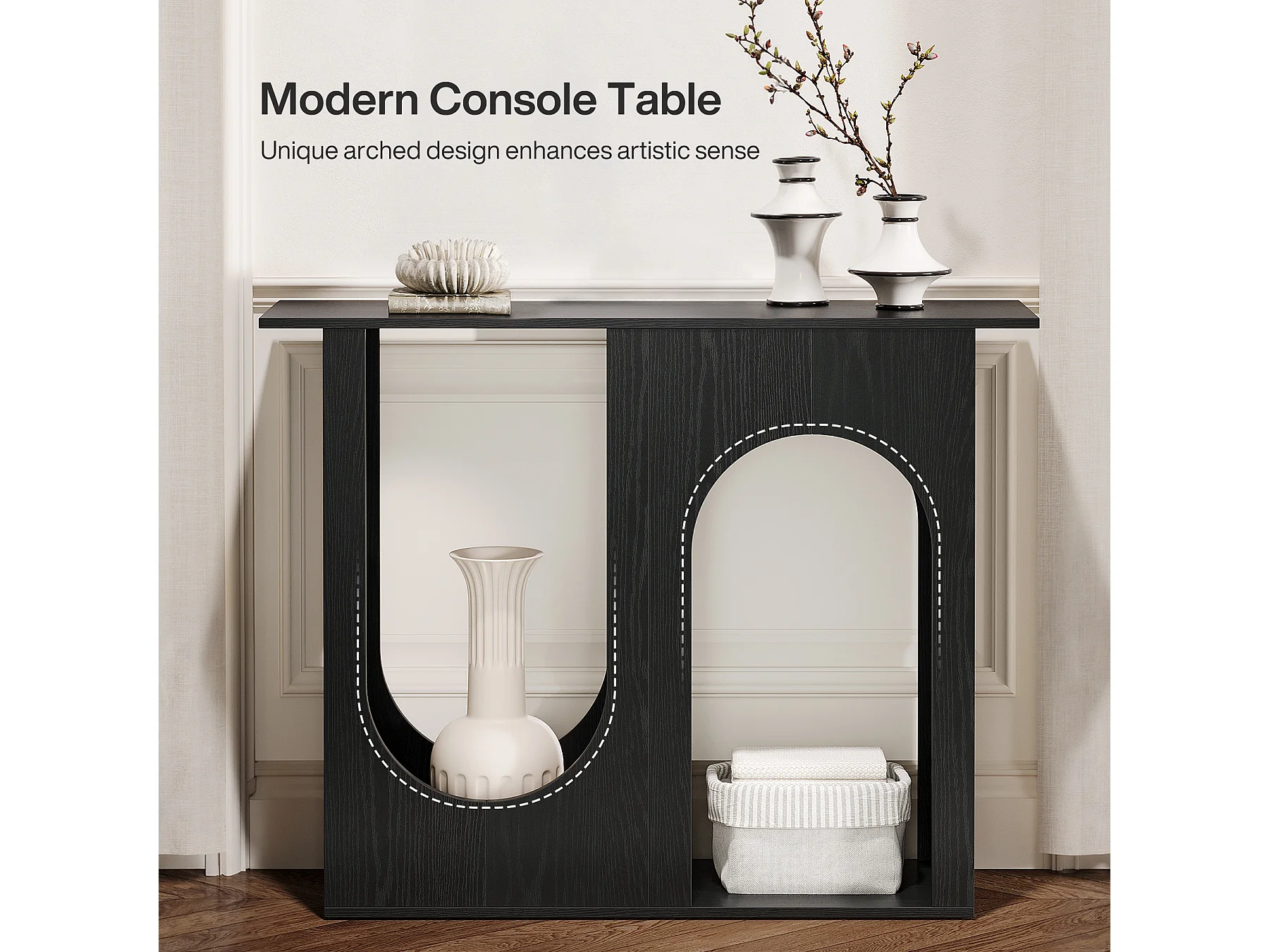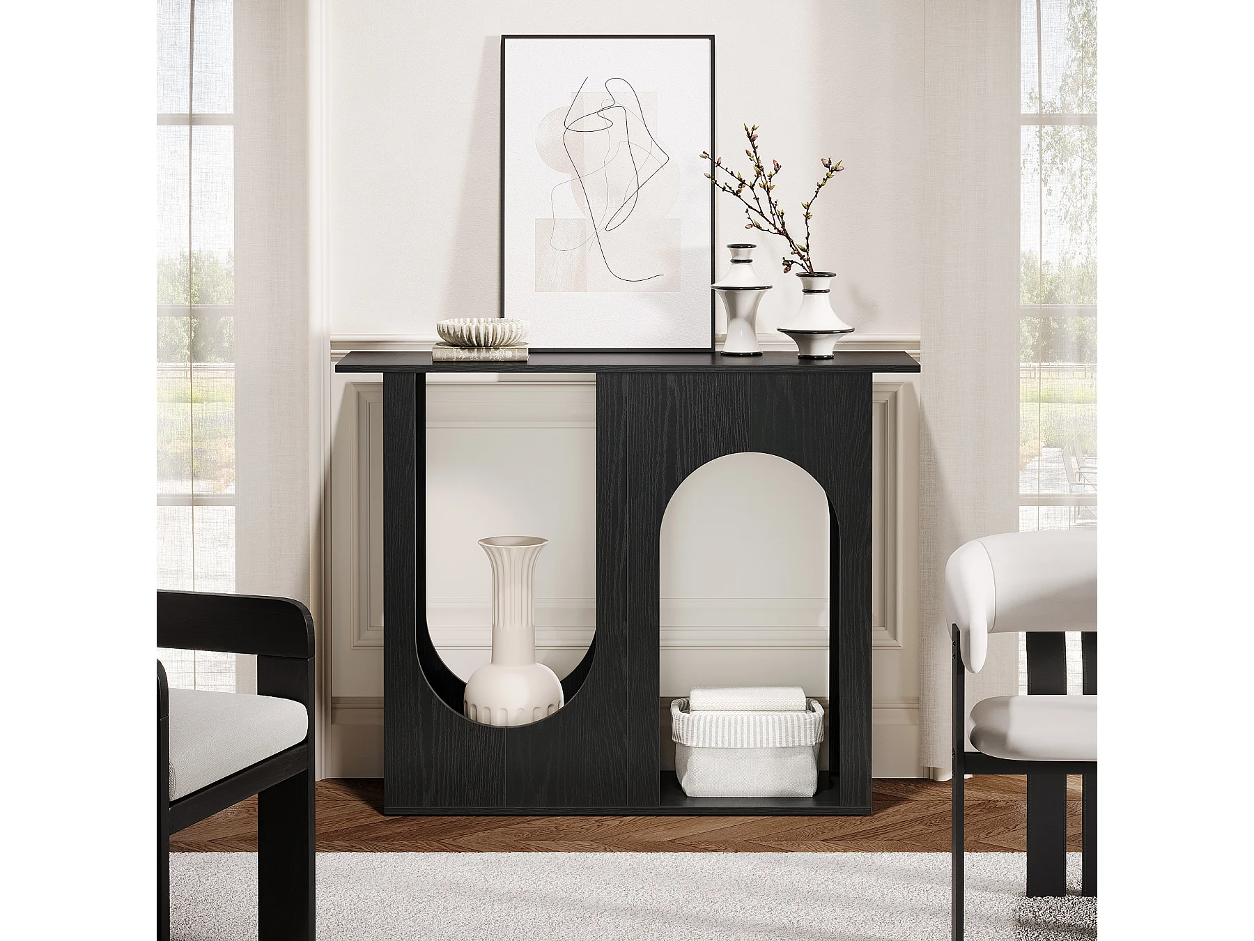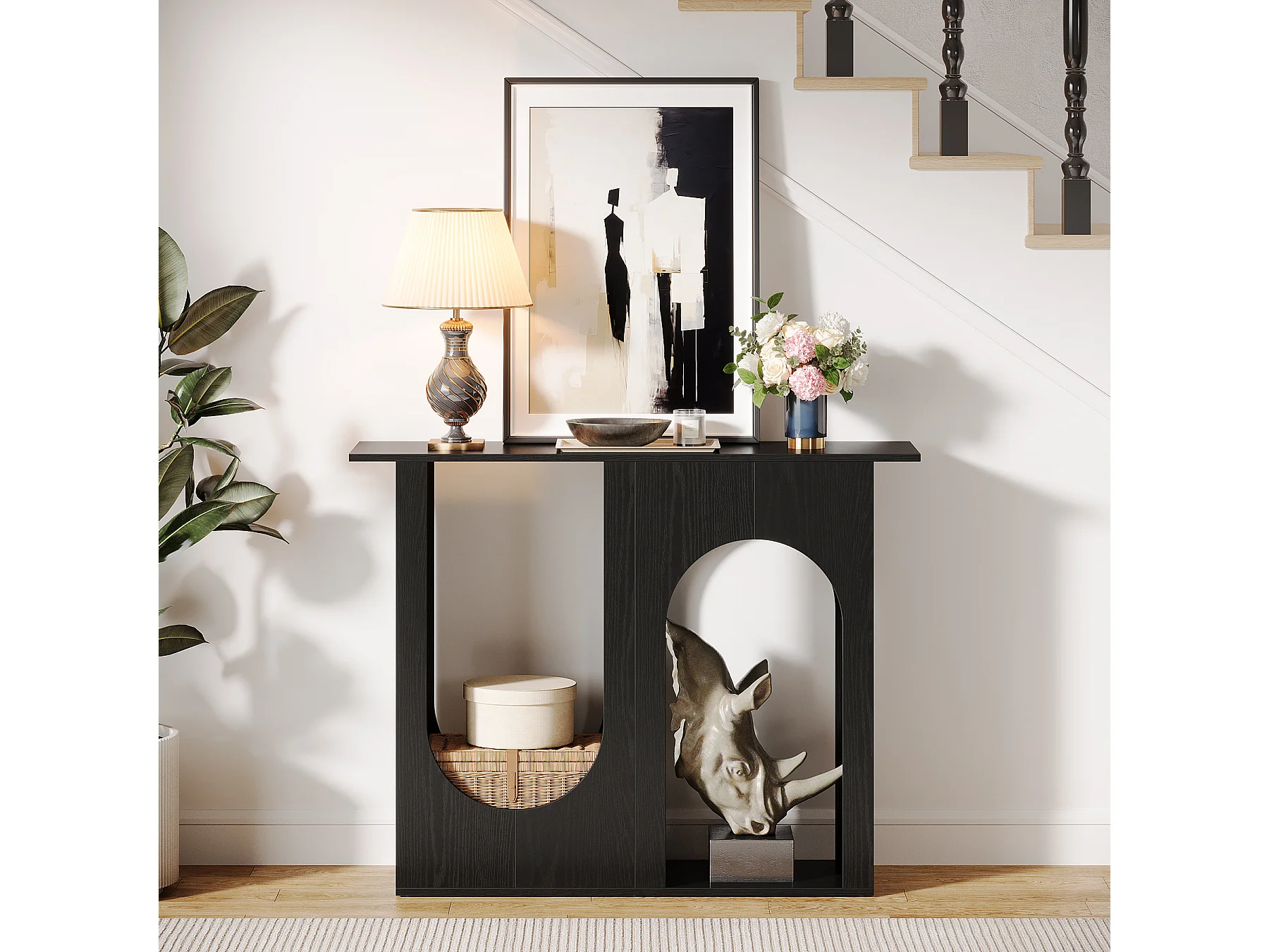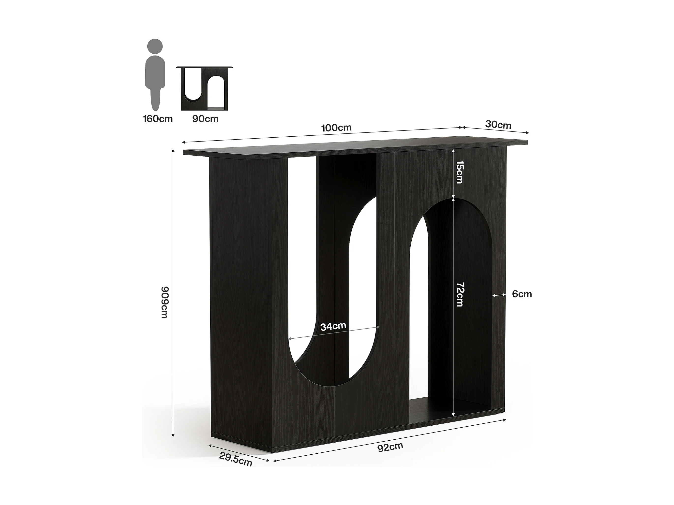 100 cm czarny stolik kawowy, wąska konsola za kanapą o łukowym kształcie, nowoczesna konsola do przedpokoju