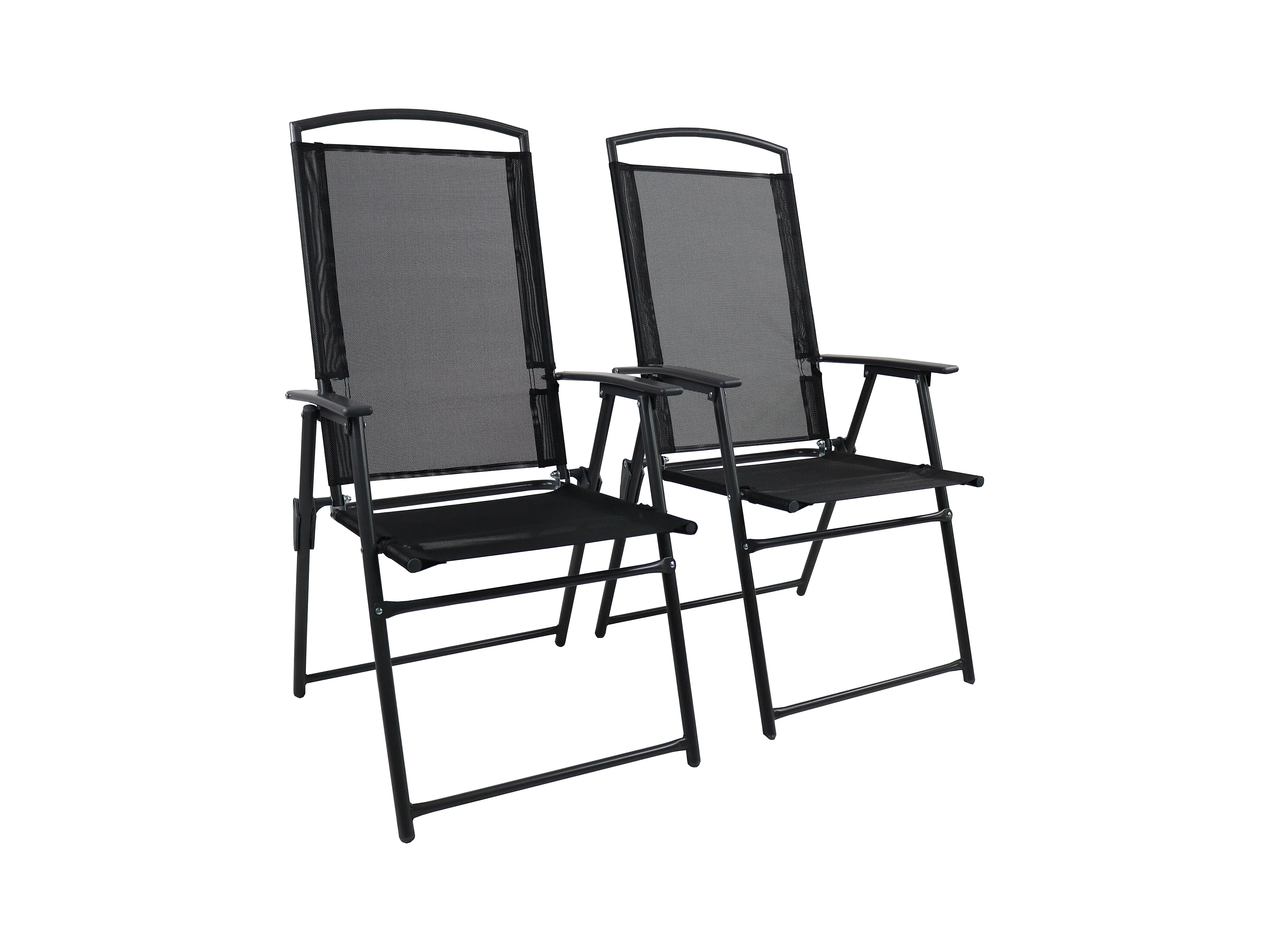 Pakiet dwóch składanych krzeseł ogrodowych Perla z metalu w kolorze czarnym.
