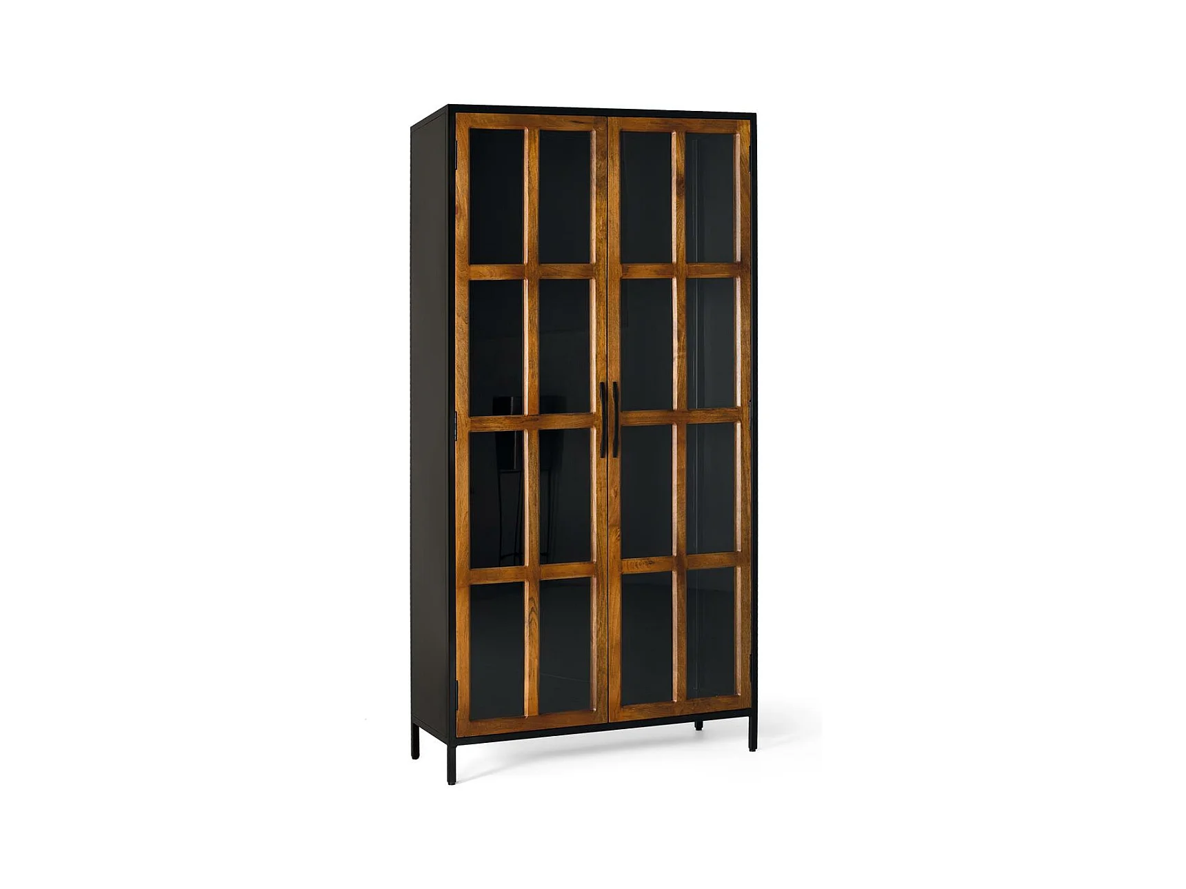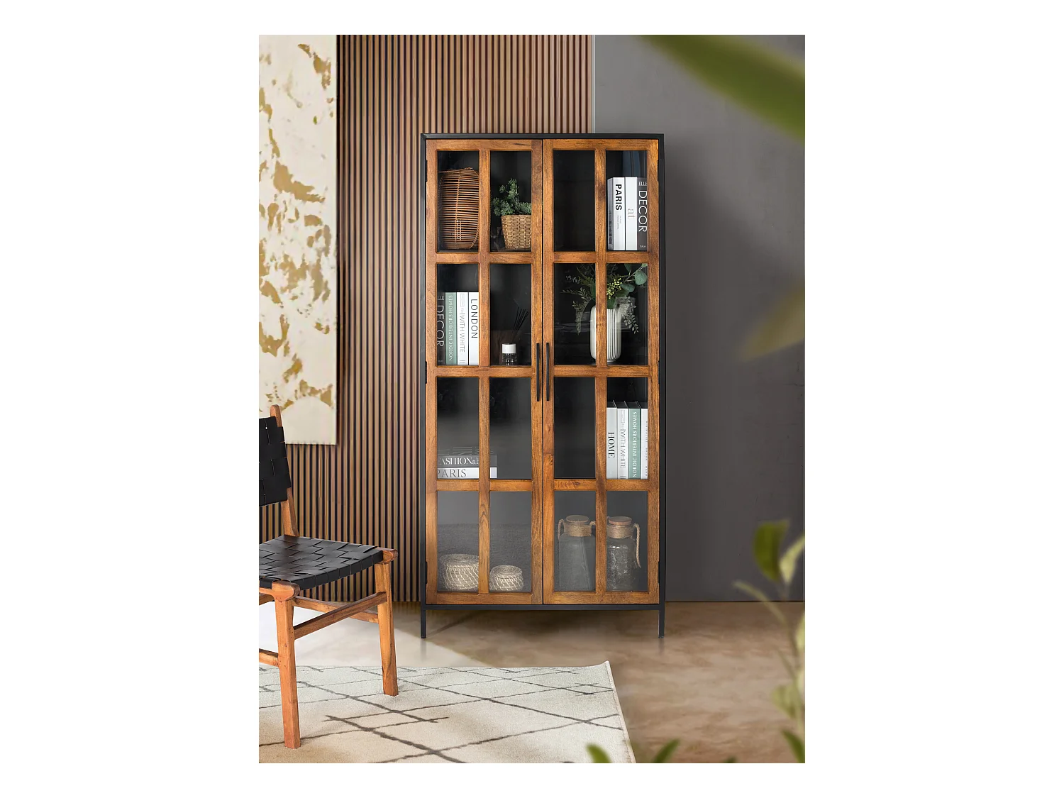 2-drzwiowa gablota z drewna mango i metalową ramą