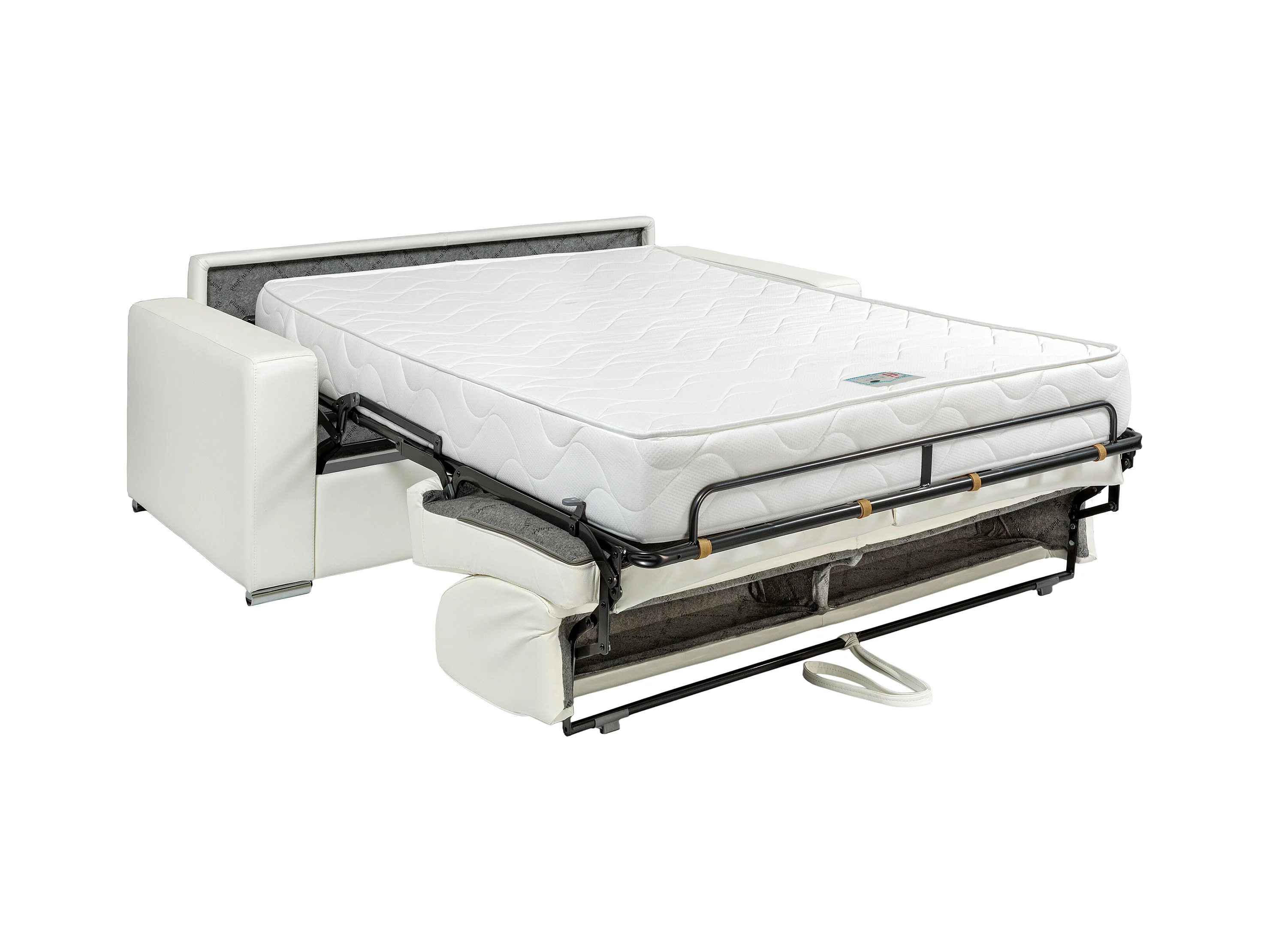 Kanapa 2-osobowa z ekspresowym mechanizmem rozkładania z ekoskóry CALITO - Kolor: biały - Miejsce do spania: 120 cm - Materac 22 cm