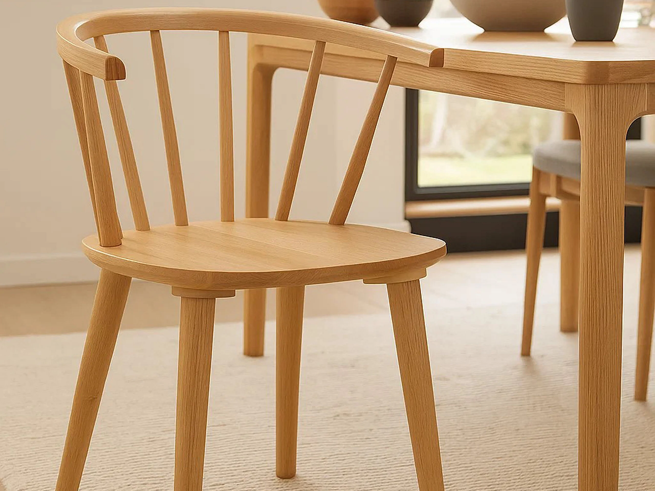 2x Krzesło dębowe Scandi line z podłokietnikami, tapicerowane Danny beige 3