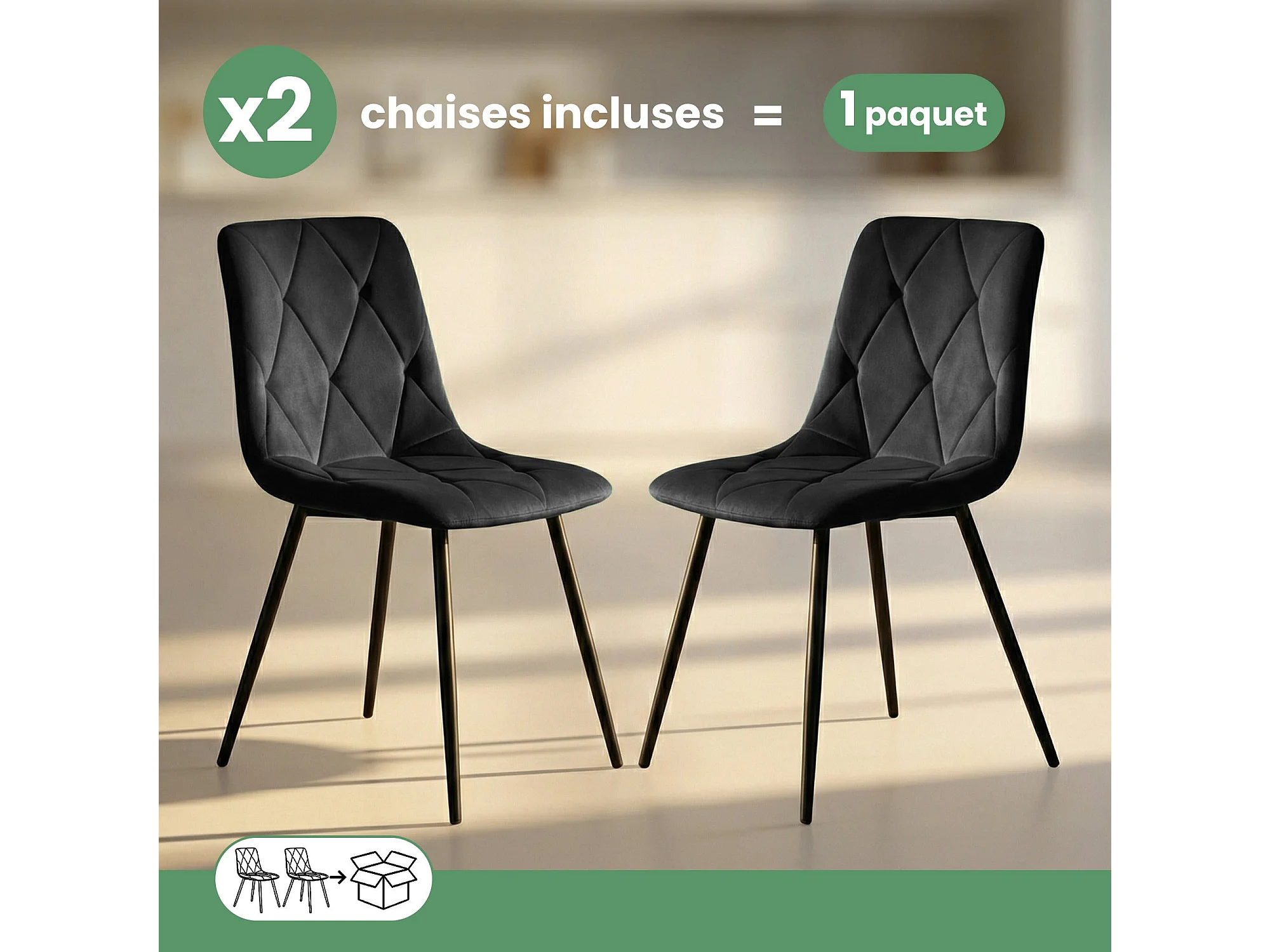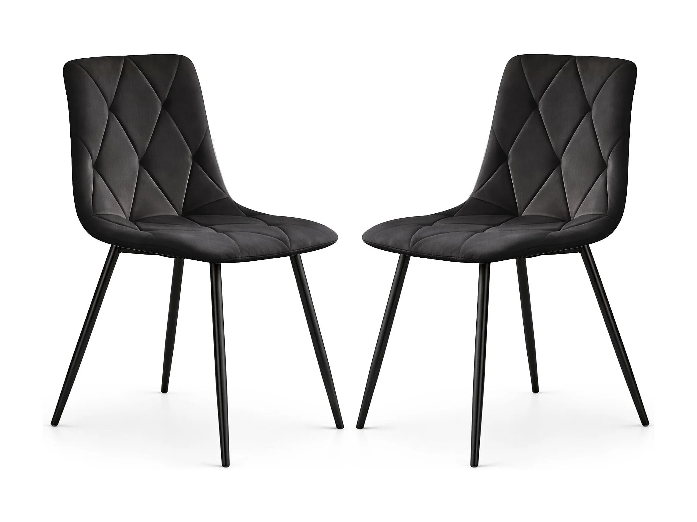2x Welurowe krzesło tapicerowane pikowane Czarne MILO Czarne nogi