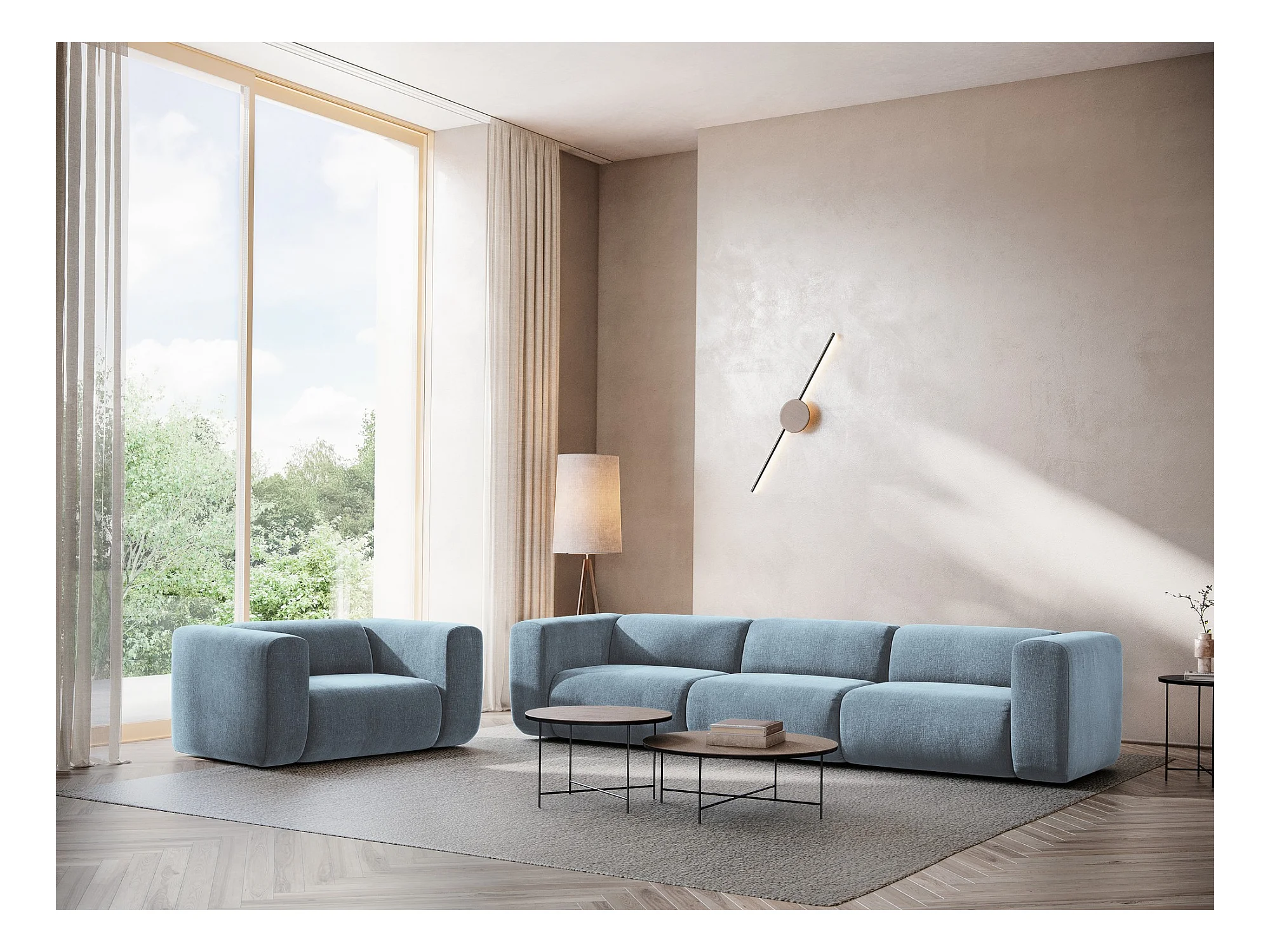 CXL by Christian Lacroix - Narożnik prawy panoramiczny, "Lorella" 3 miejsca tkanina strukturalna, niebieski jasny - 205x145x70cm