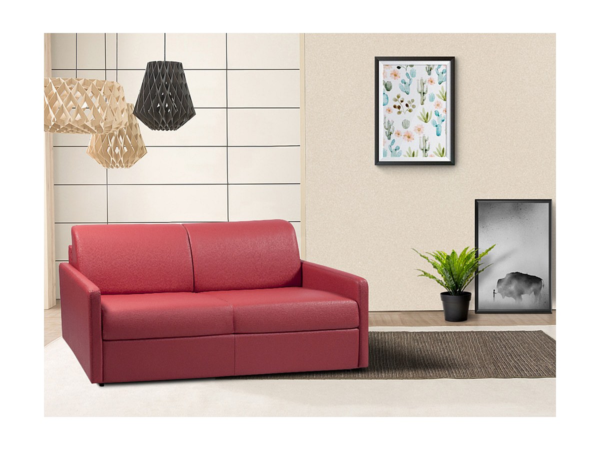 3-osobowa kanapa z ekspresowym mechanizmem rozkładania z materiału skóropodobnego CALIFE - Kolor: czerwony - Wymiary miejsca do spania: 140 cm - Materac 18 cm