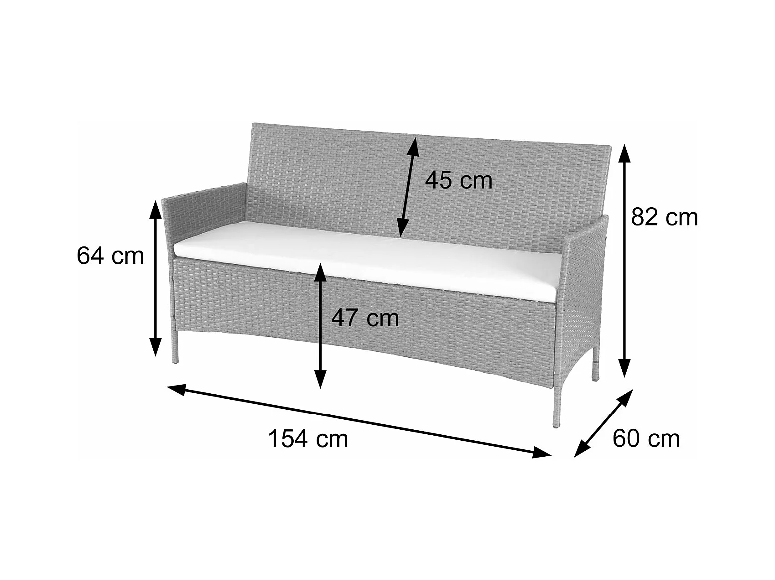 Ławka 2-osobowa z polirattanu MCW-F39, szary, poduszki beżowe