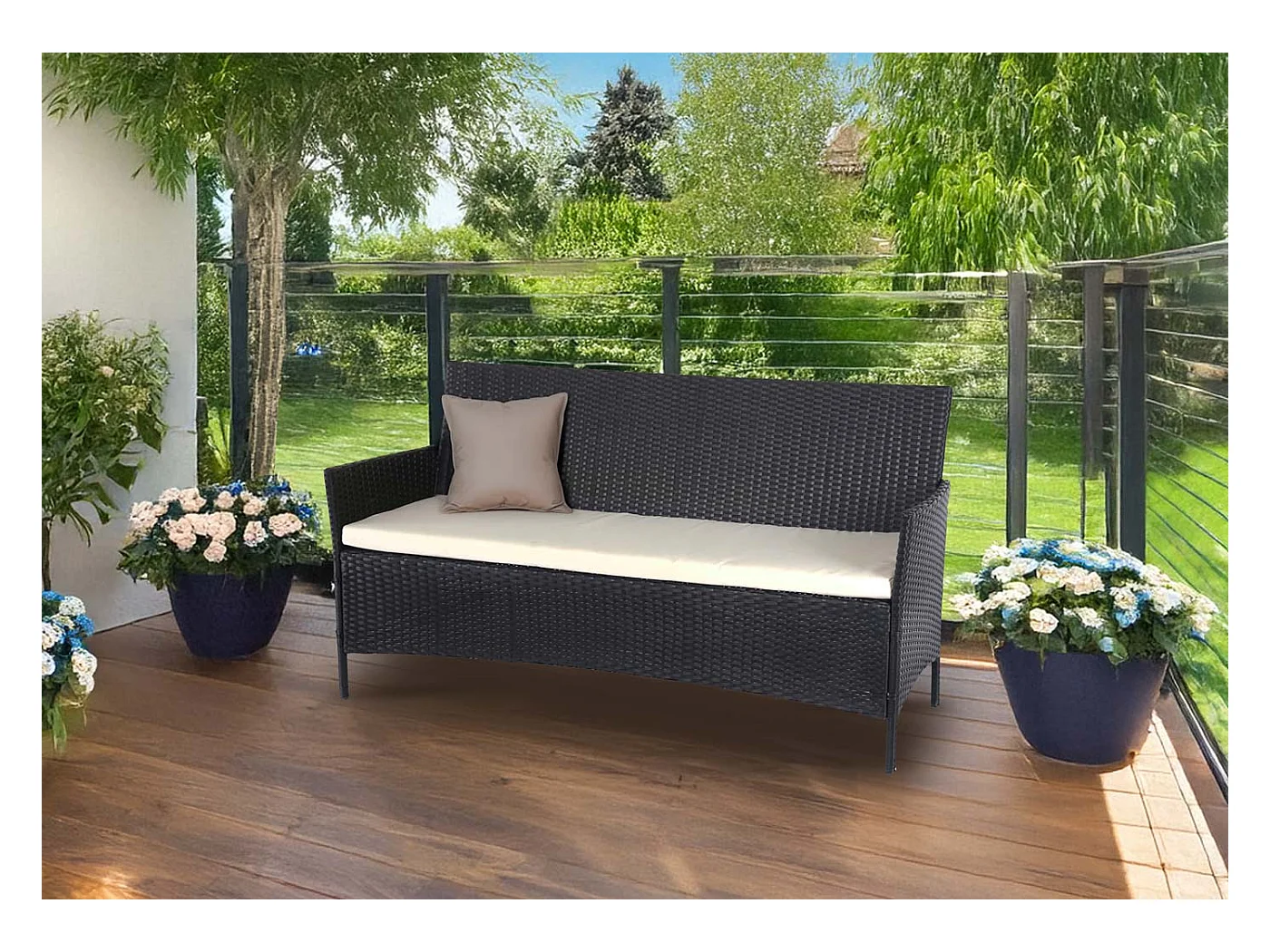 3-osobowa ławka ogrodowa z polirattanu Hamar, antracyt, poduszki kremowe