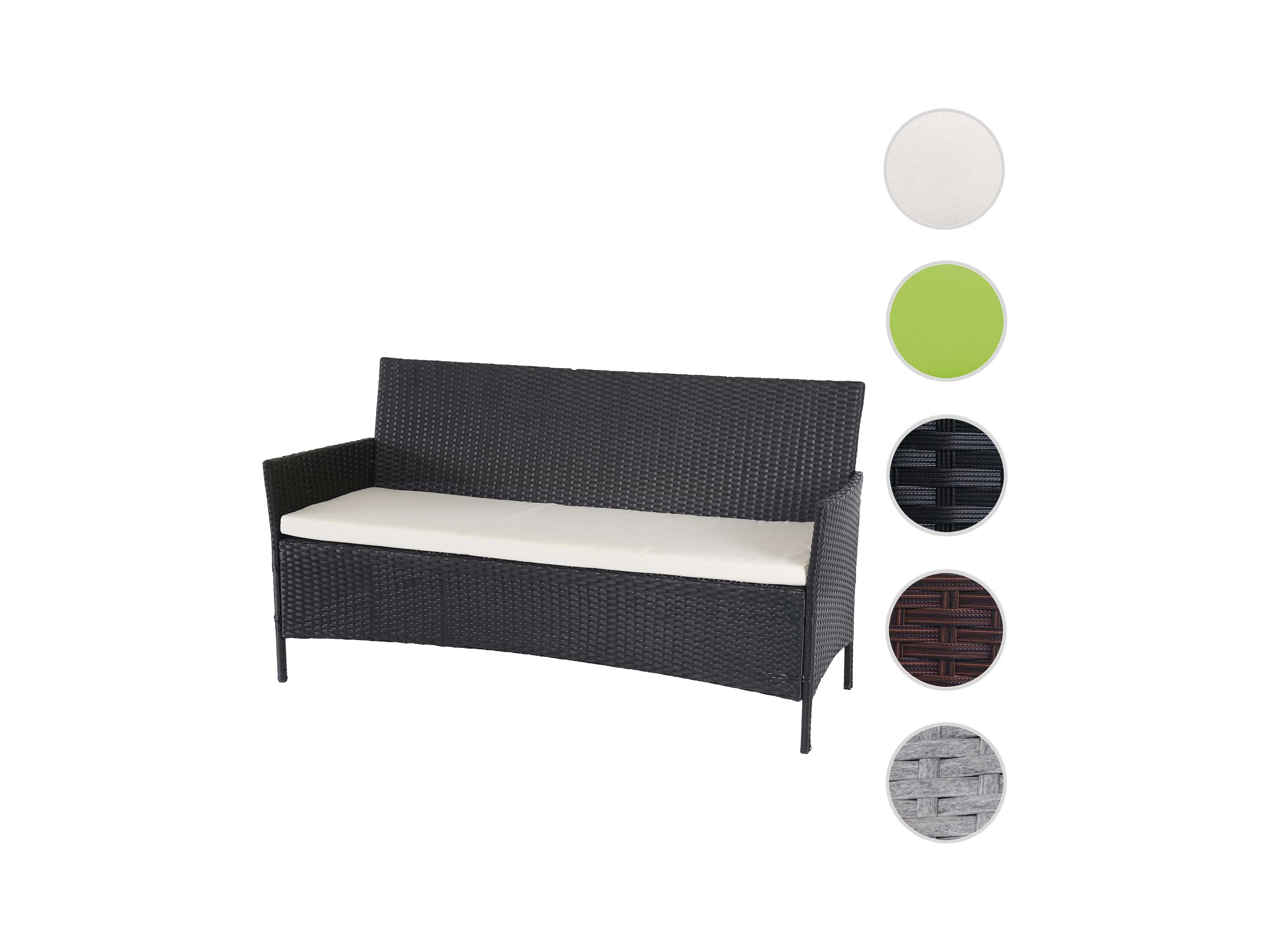 Ławka 3-osobowa z polirattanu MCW-F39, antracyt, poduszki zielone