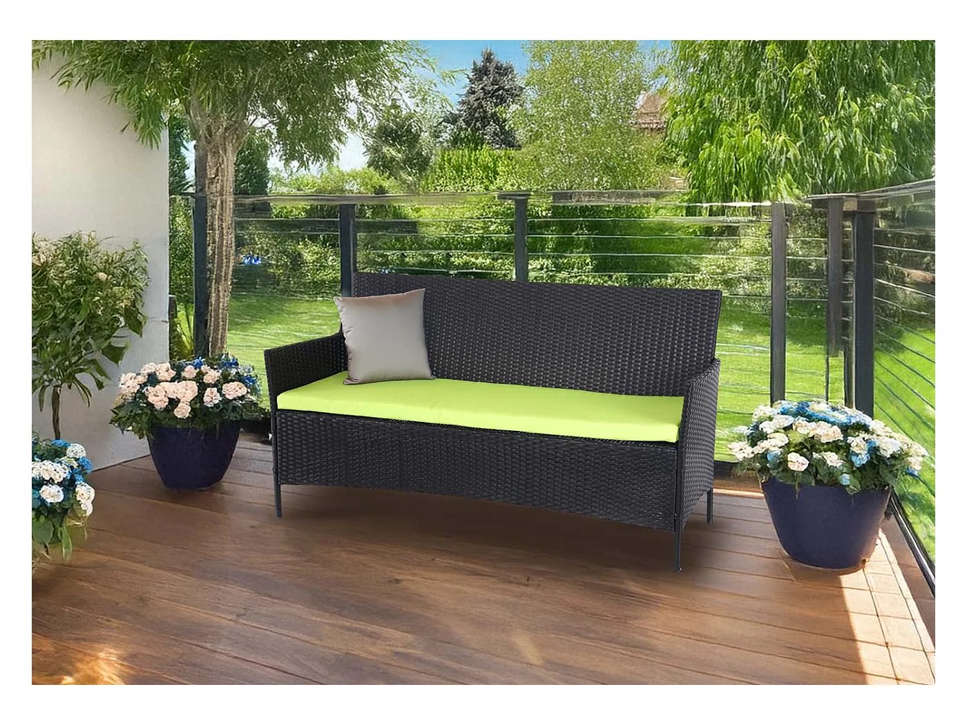 Ławka 3-osobowa z polirattanu MCW-F39, antracyt, poduszki zielone