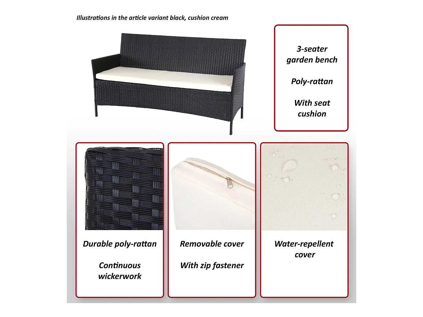 Poli rattanowa ławka ogrodowa Hamar, antracyt, kremowe poduszki