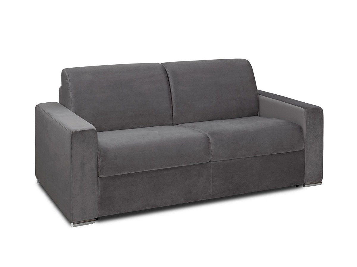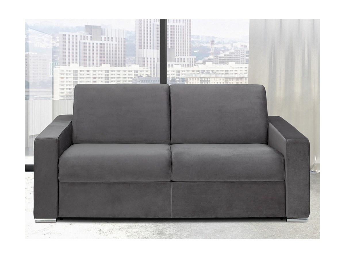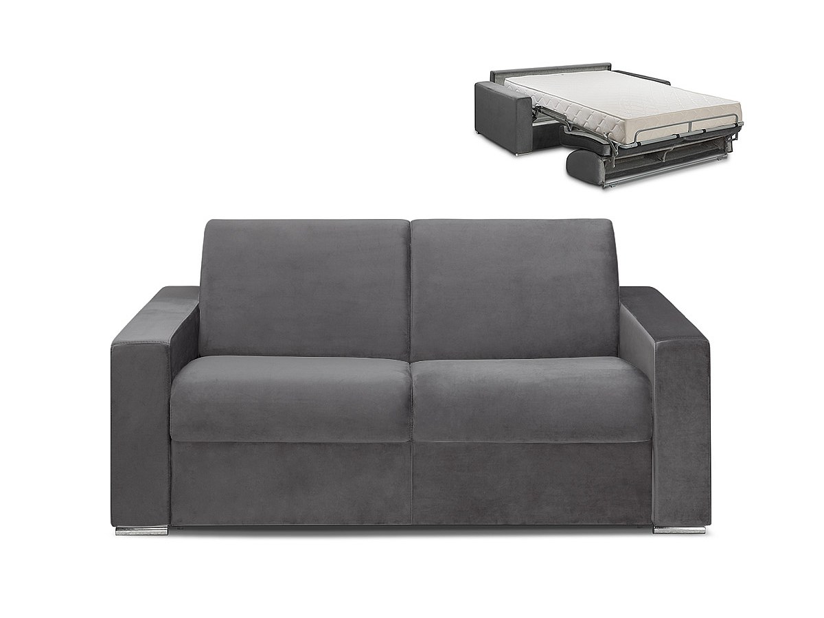 3-osobowa rozkładana sofa z weluru CALITO - Kolor antracytowy - Łóżko 140 cm - Materac 22 cm