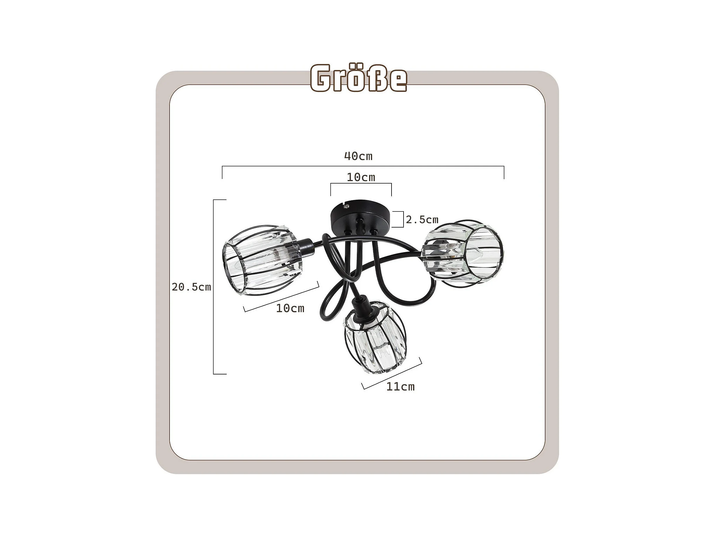 3-punktowy, zabytkowy, czarny kryształowy reflektor sufitowy E14 do korytarza, obrotowy 350°, przemysłowy