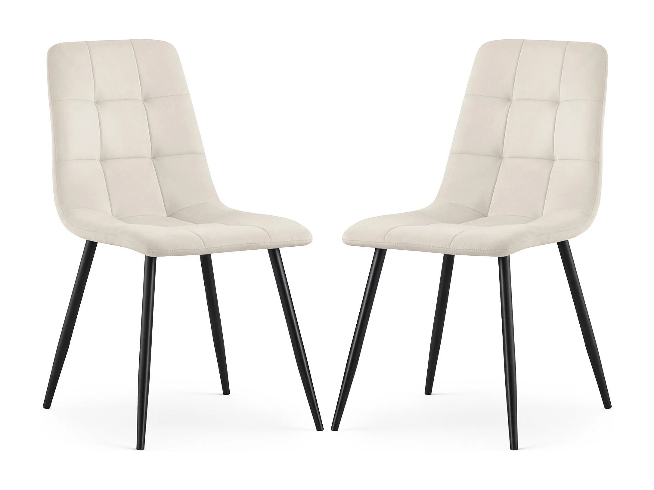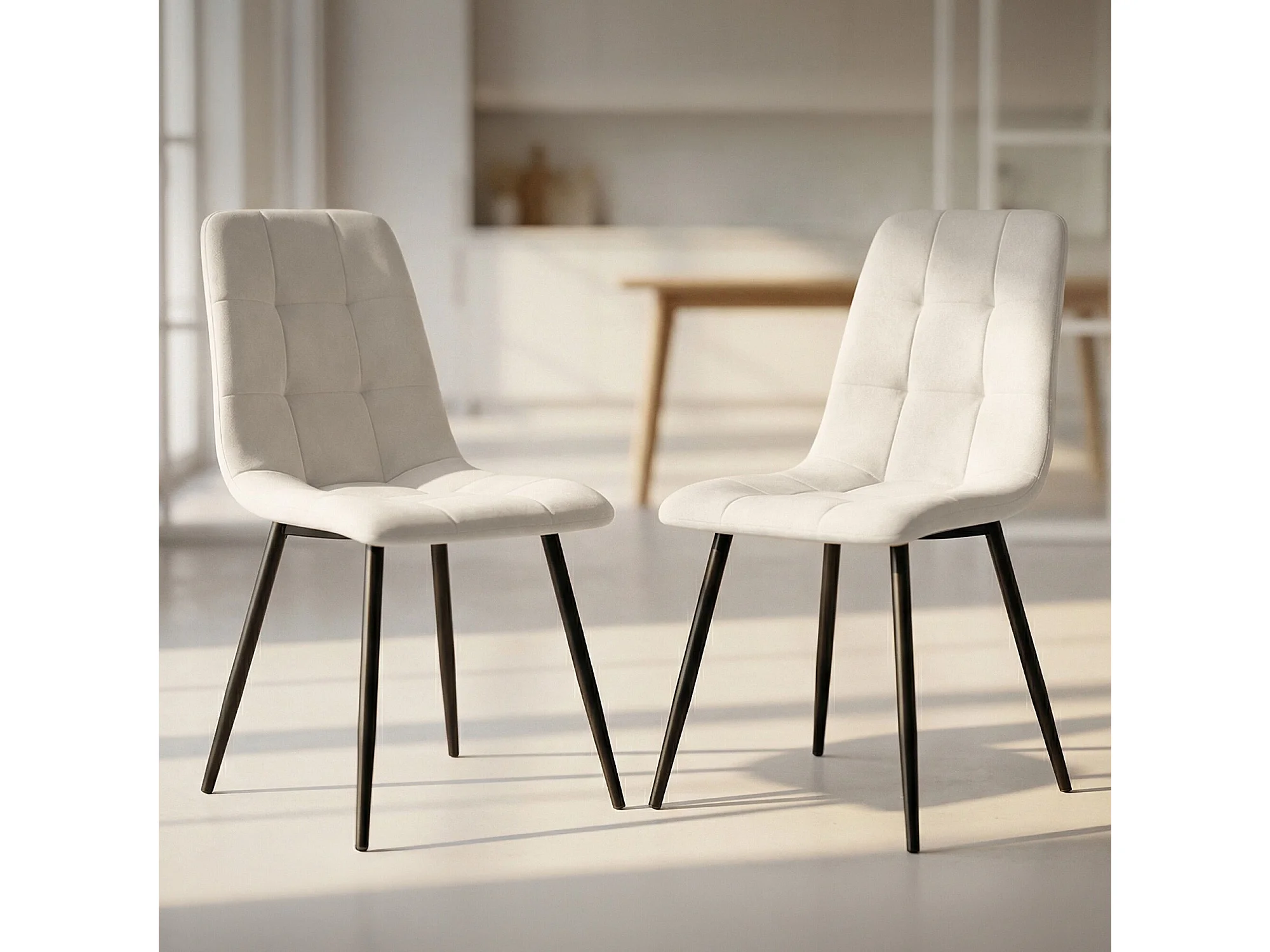 4x Welurowe krzesło tapicerowane pikowane Beżowe NERO Czarne nogi