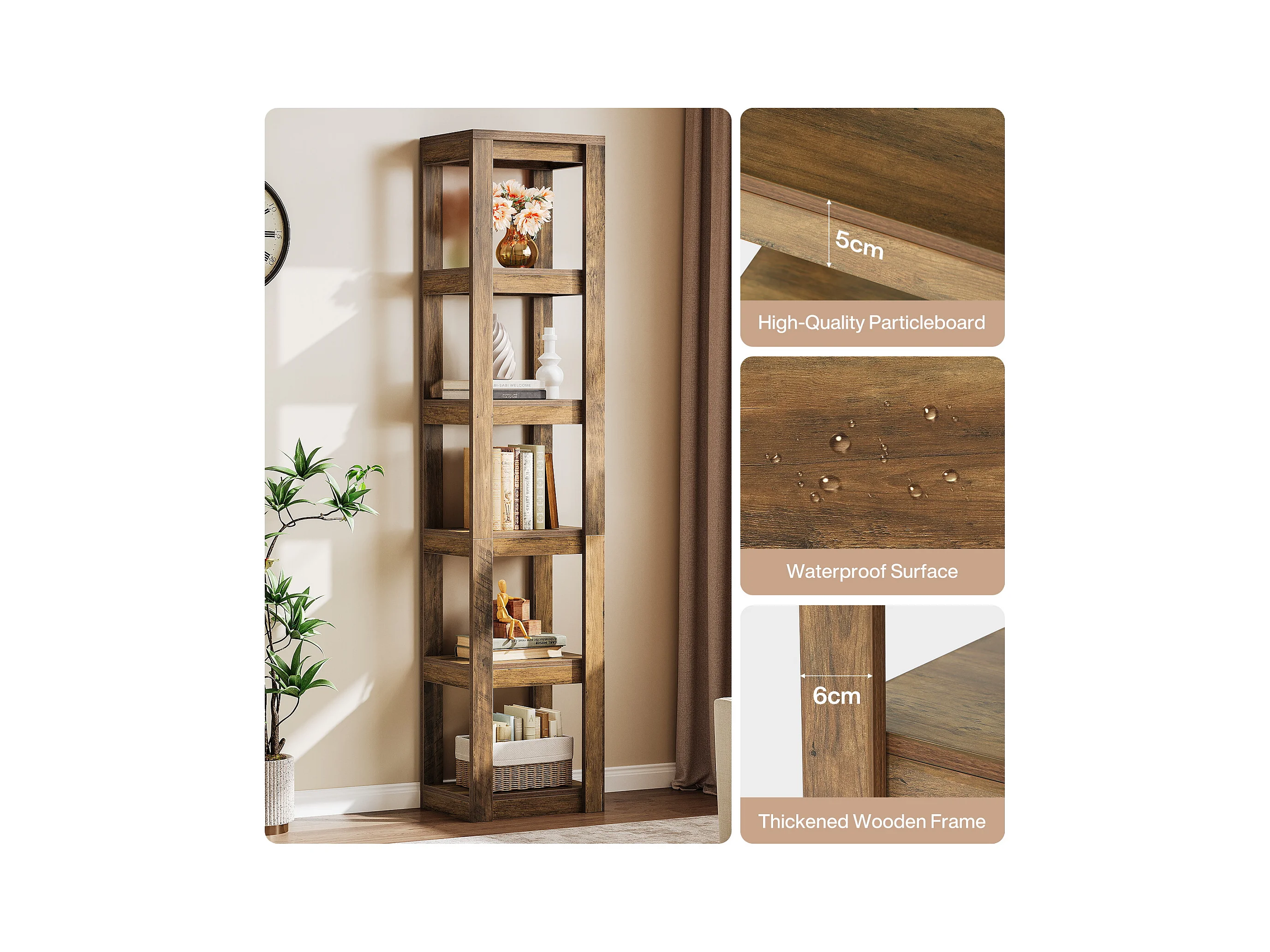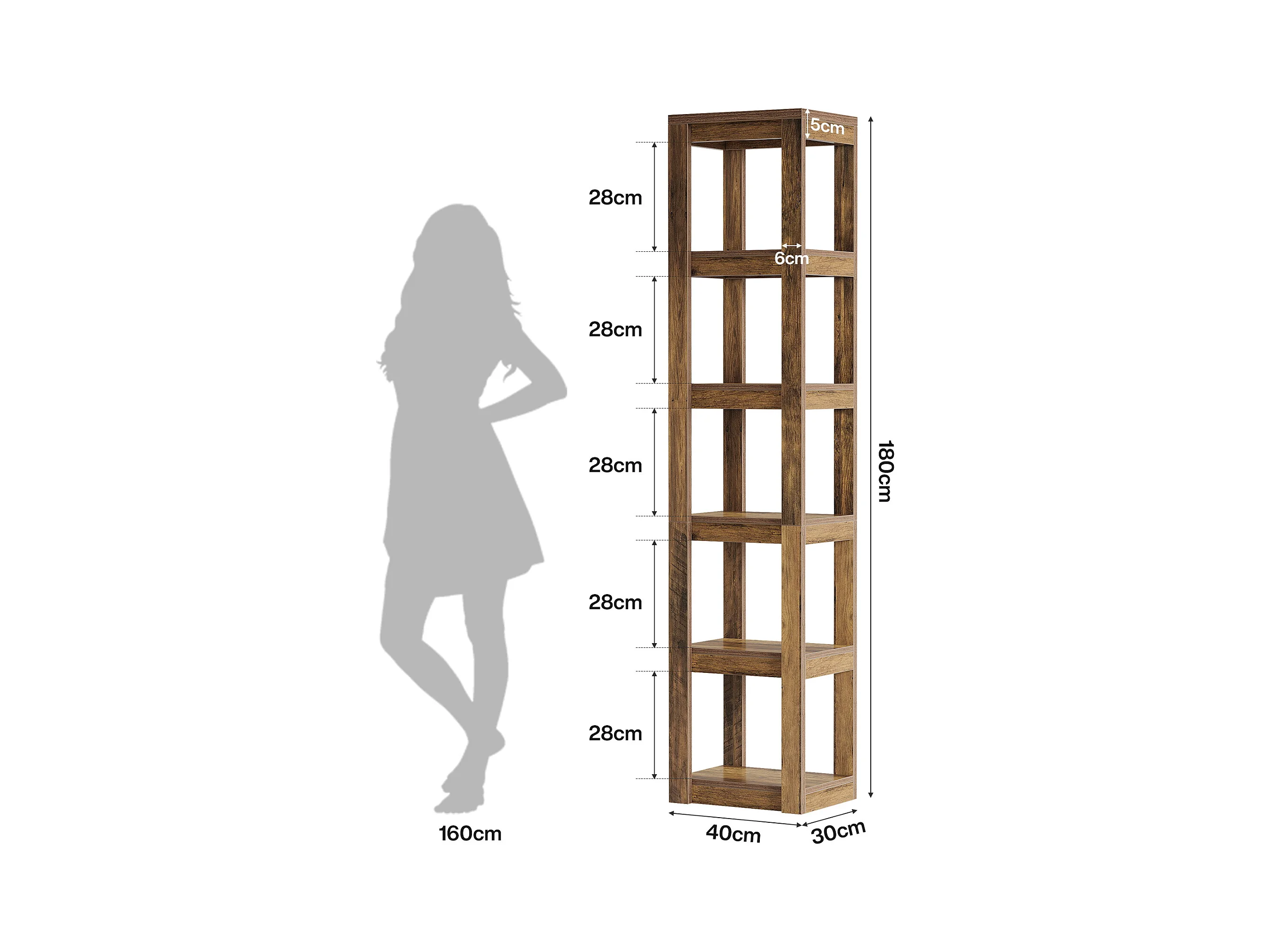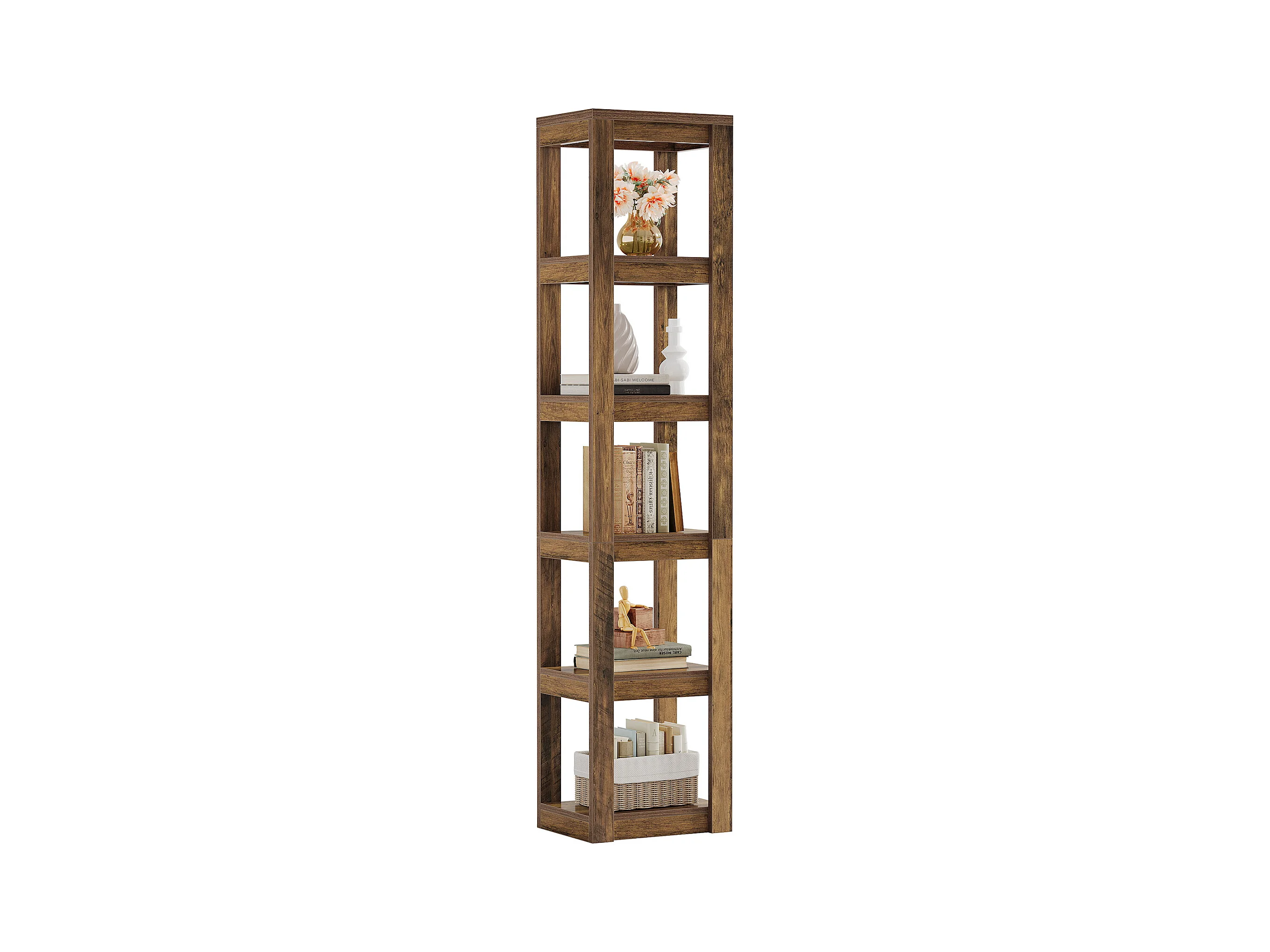 5-poziomowa półka na książki, 180 cm wysokości, wąska półka narożna, regały do małych przestrzeni, wolnostojąca półka ekspozycyjna