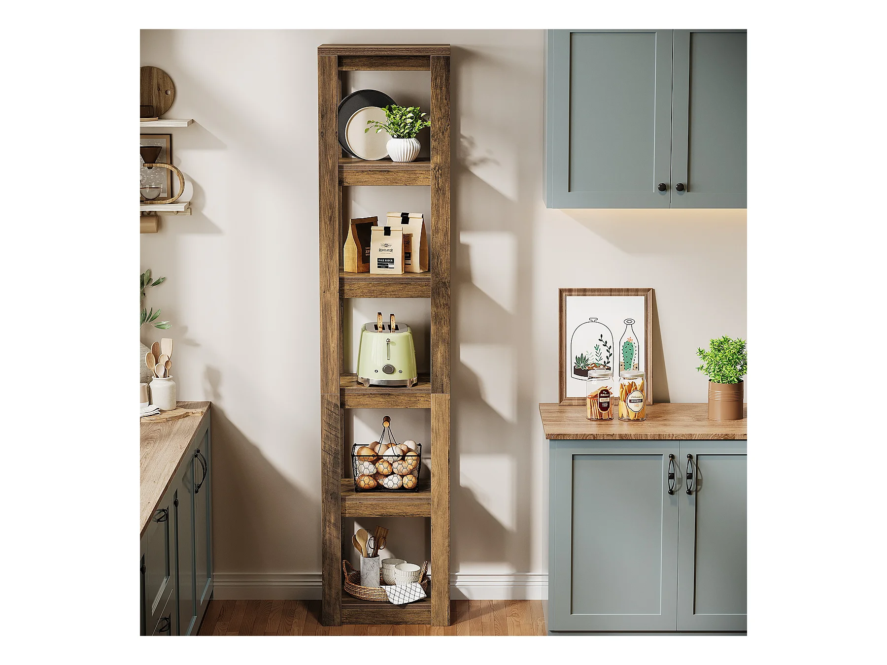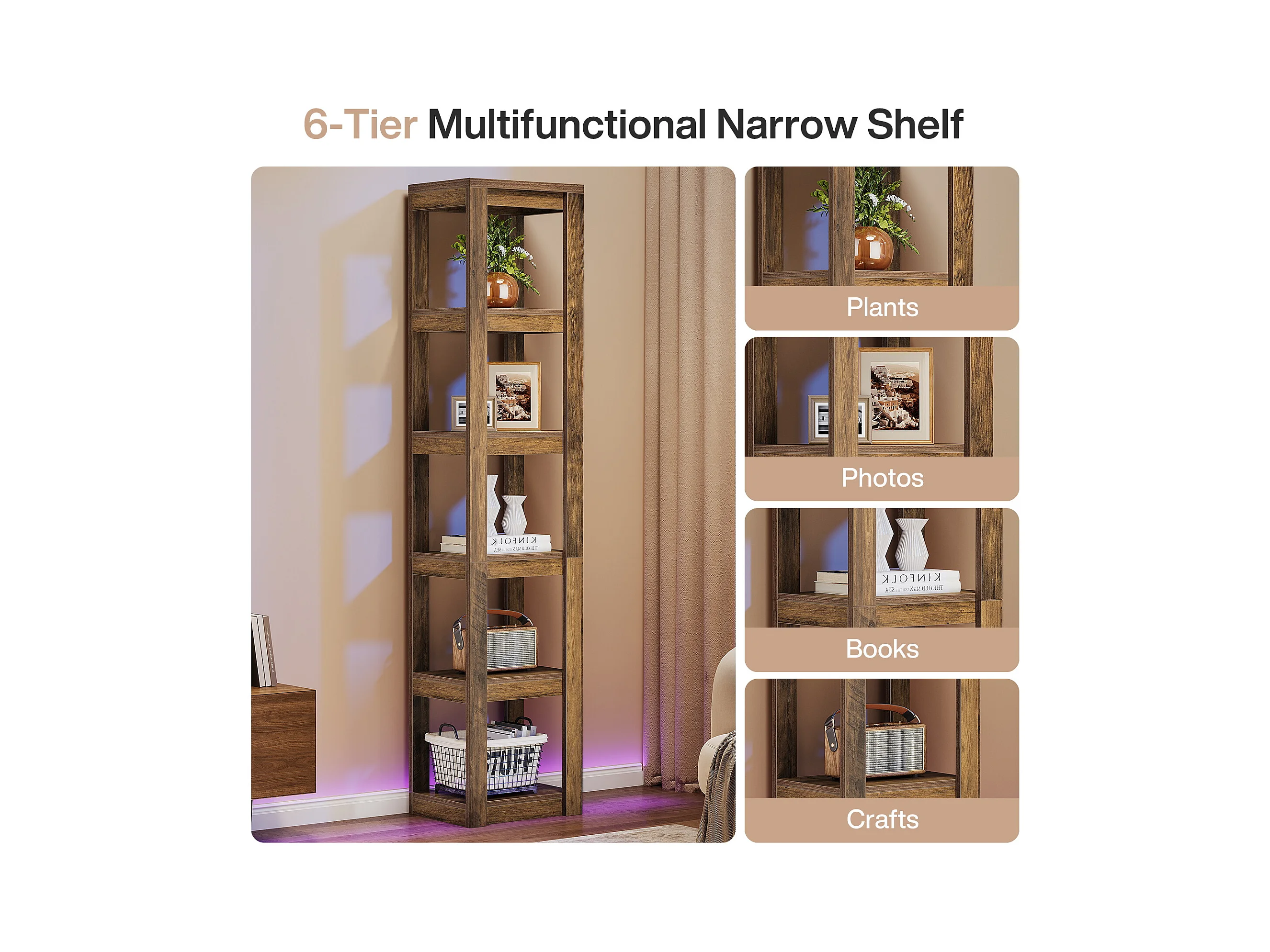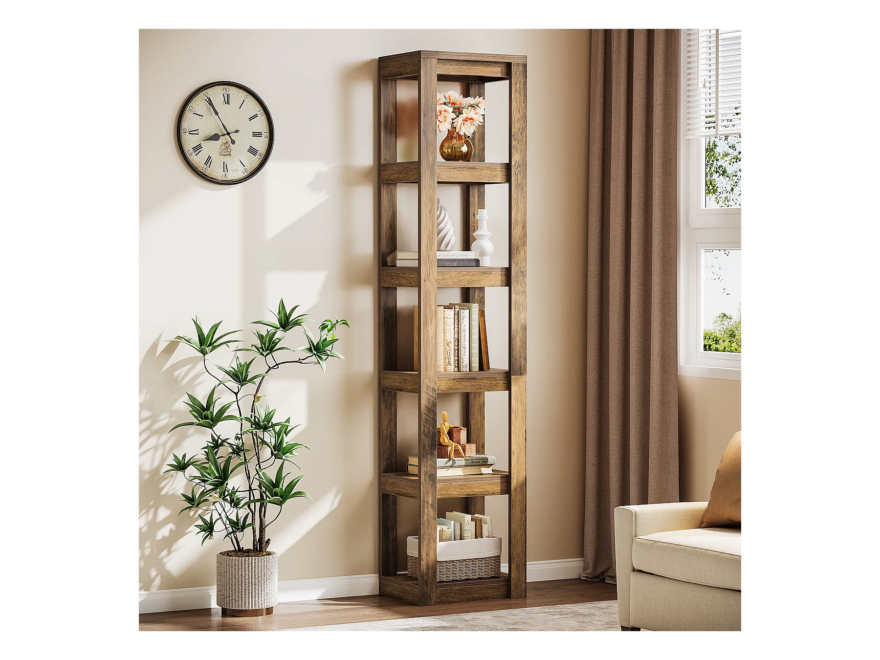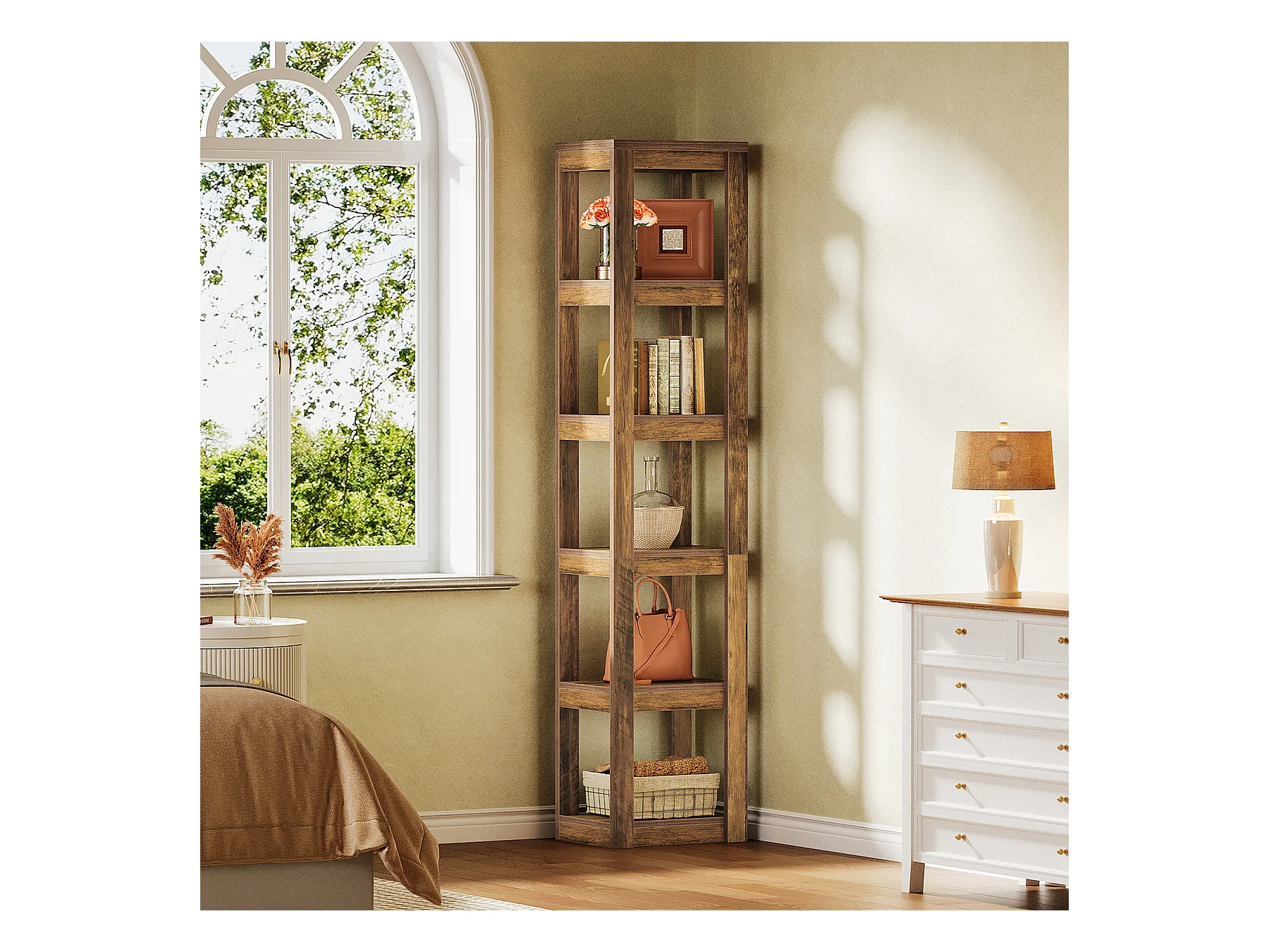5-poziomowa półka na książki, 180 cm wysokości, wąska półka narożna, regały do małych przestrzeni, wolnostojąca półka ekspozycyjna