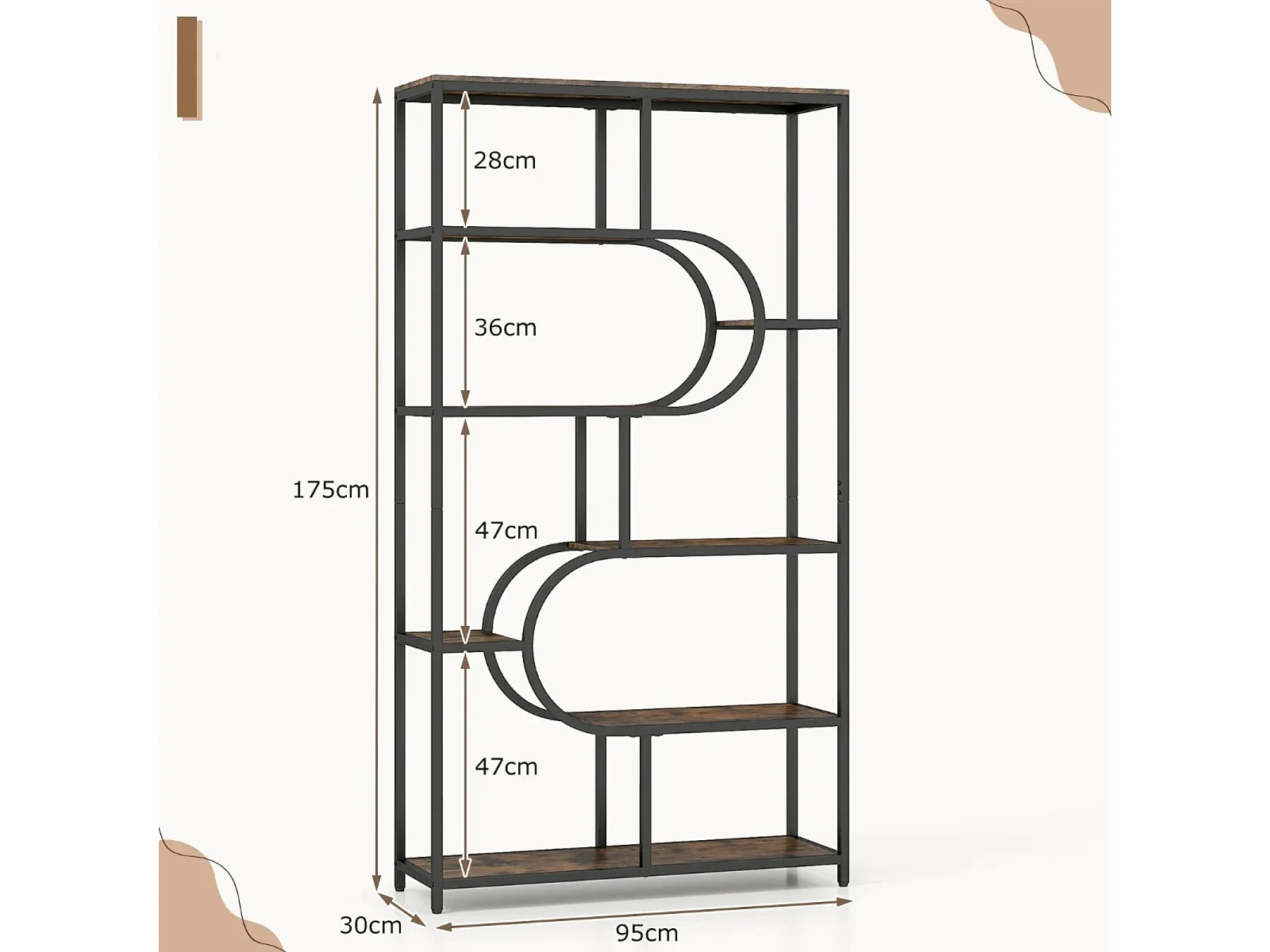 5-poziomowy regał z otwartymi półkami Regał na książki