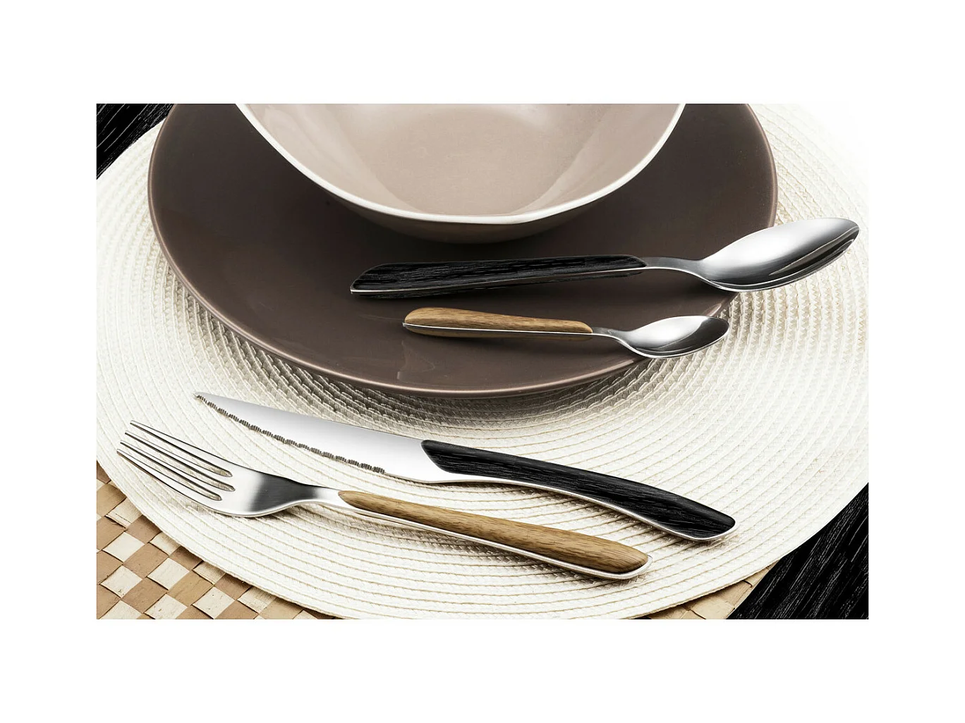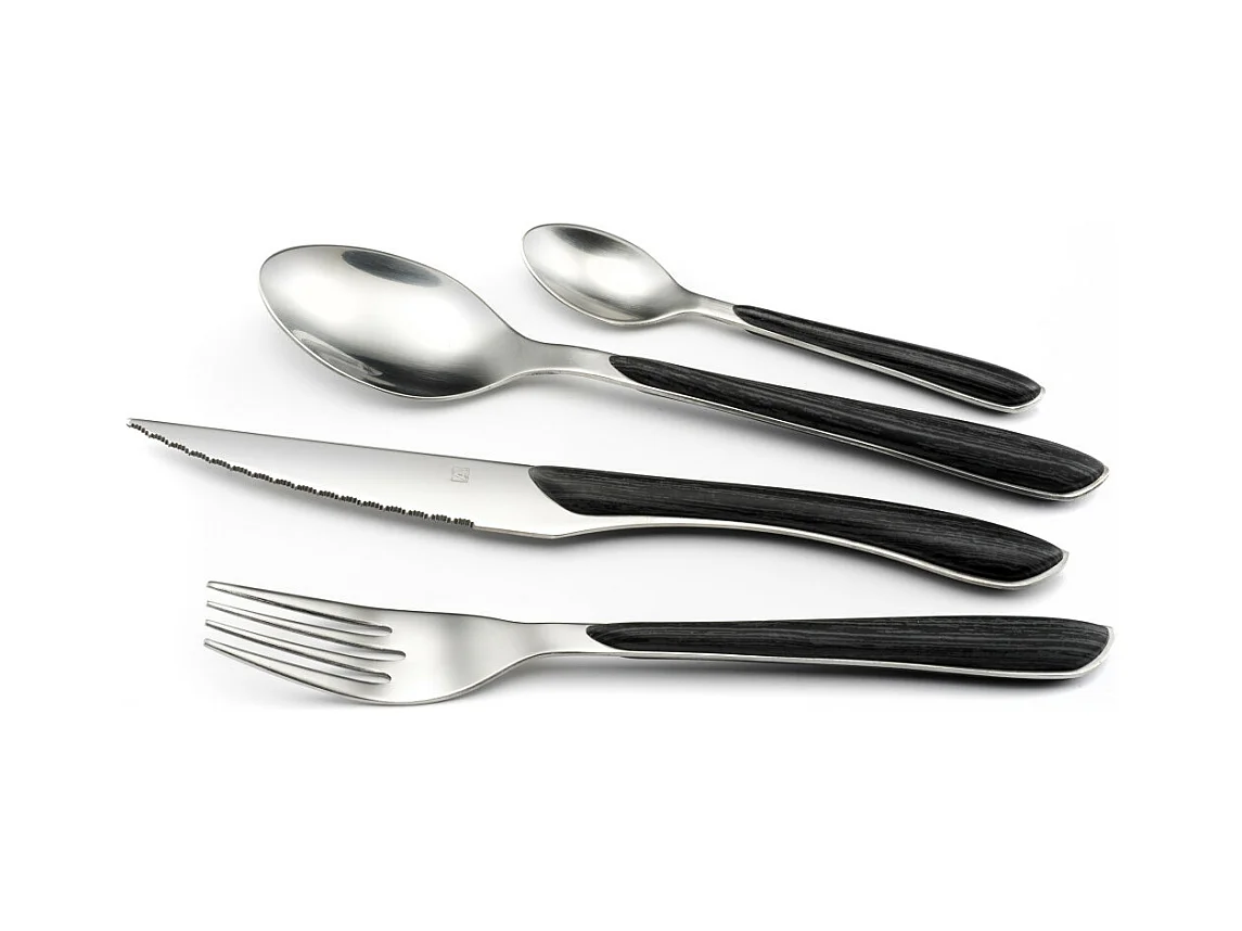 Zestaw sztućców 24 elementy Eclat Nature Czarny Drewniany - Styl Skandynawski