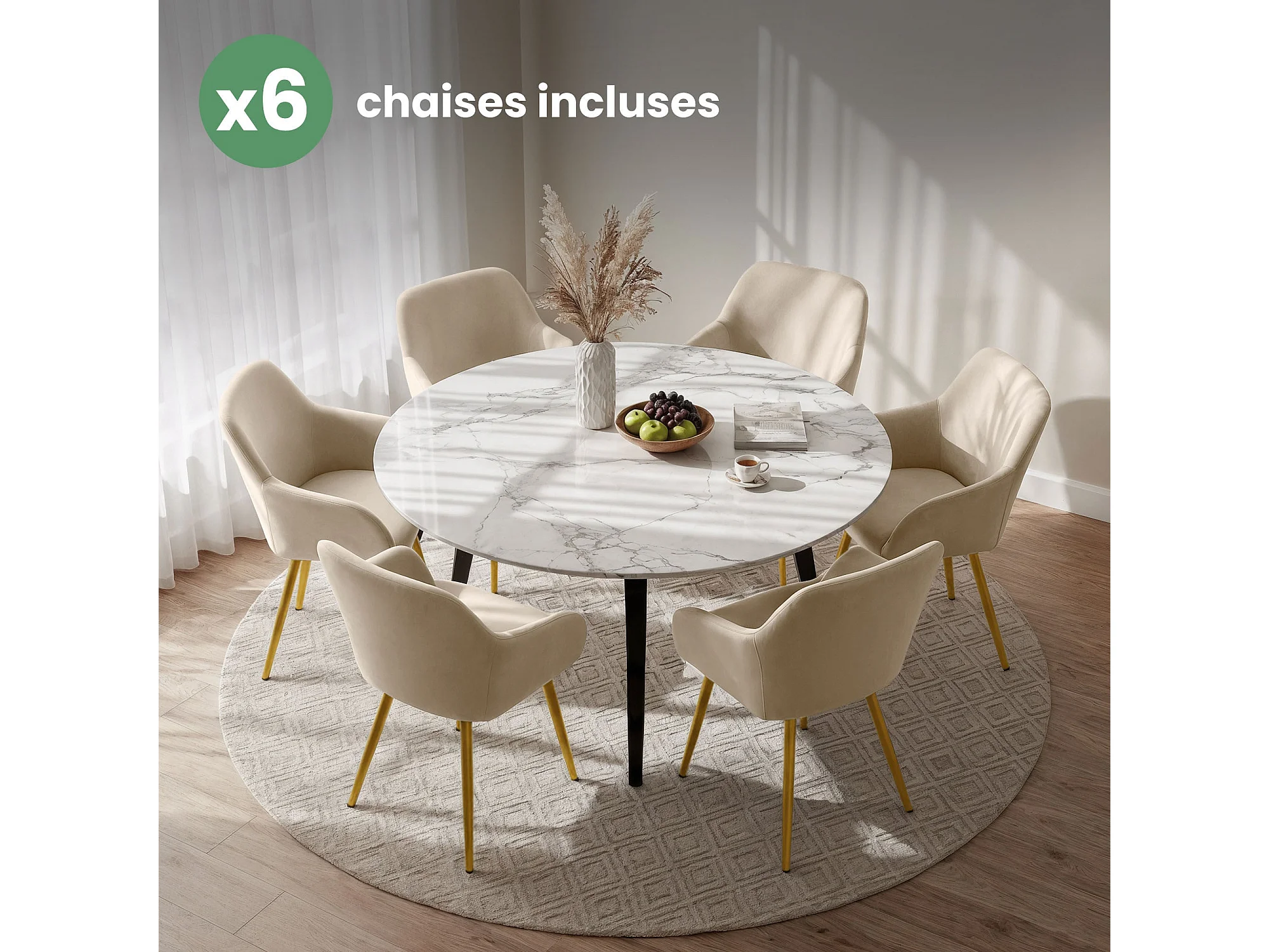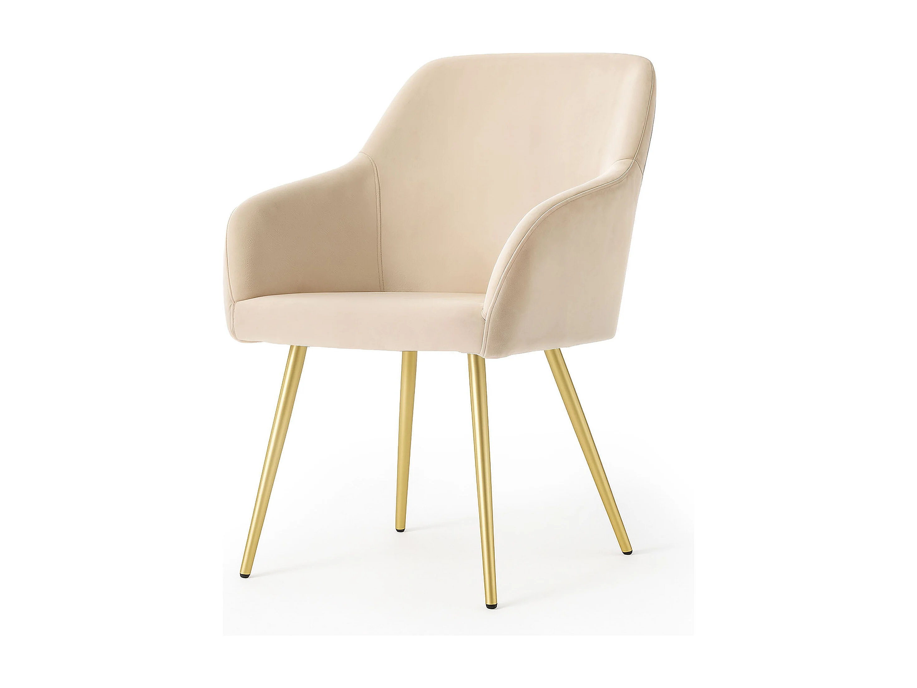 Zestaw 6 welurowych krzeseł z metalowymi nogami – beżowy i złoty
