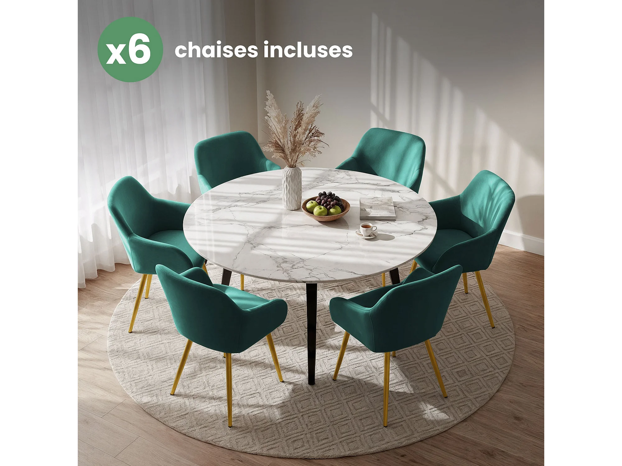 Zestaw 6 krzeseł z aksamitu, oparcie w kształcie płatków, złote metalowe nogi – zielone