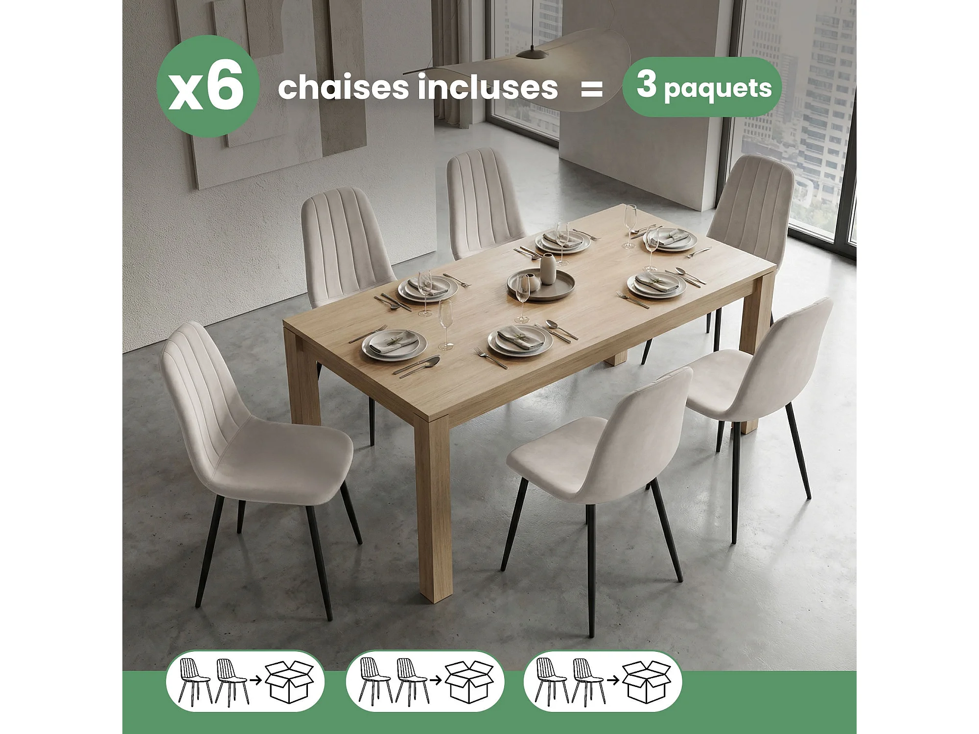 Zestaw 6 welurowych krzeseł z dębowymi nogami – beżowy
