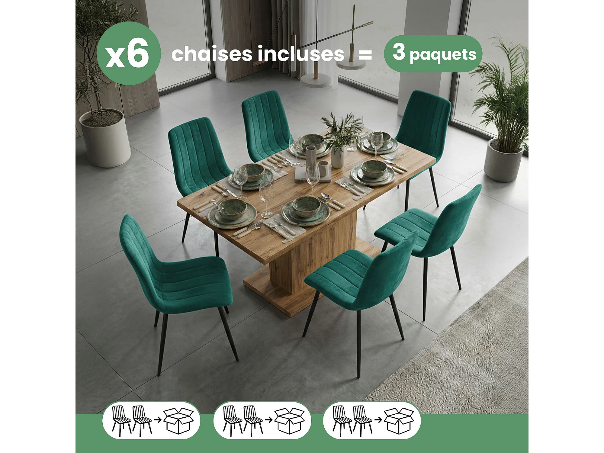 Zestaw 6 krzeseł z aksamitu, oparcie w kształcie płatków, złote metalowe nogi – zielone