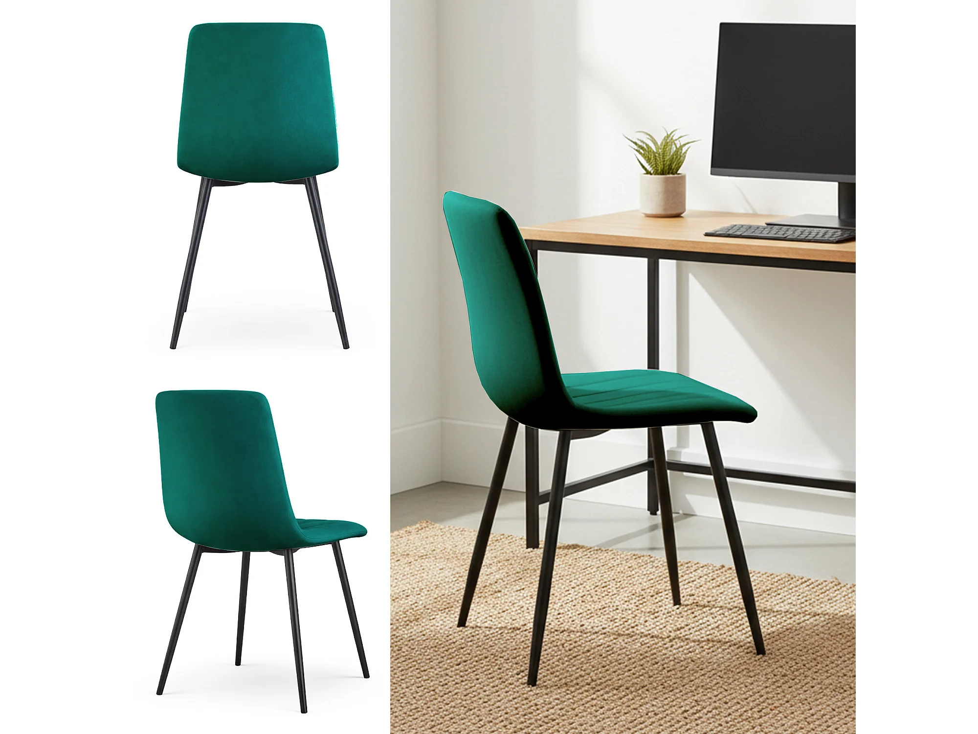 Krzesło do jadalni z aksamitu, metalowe nogi – zielony