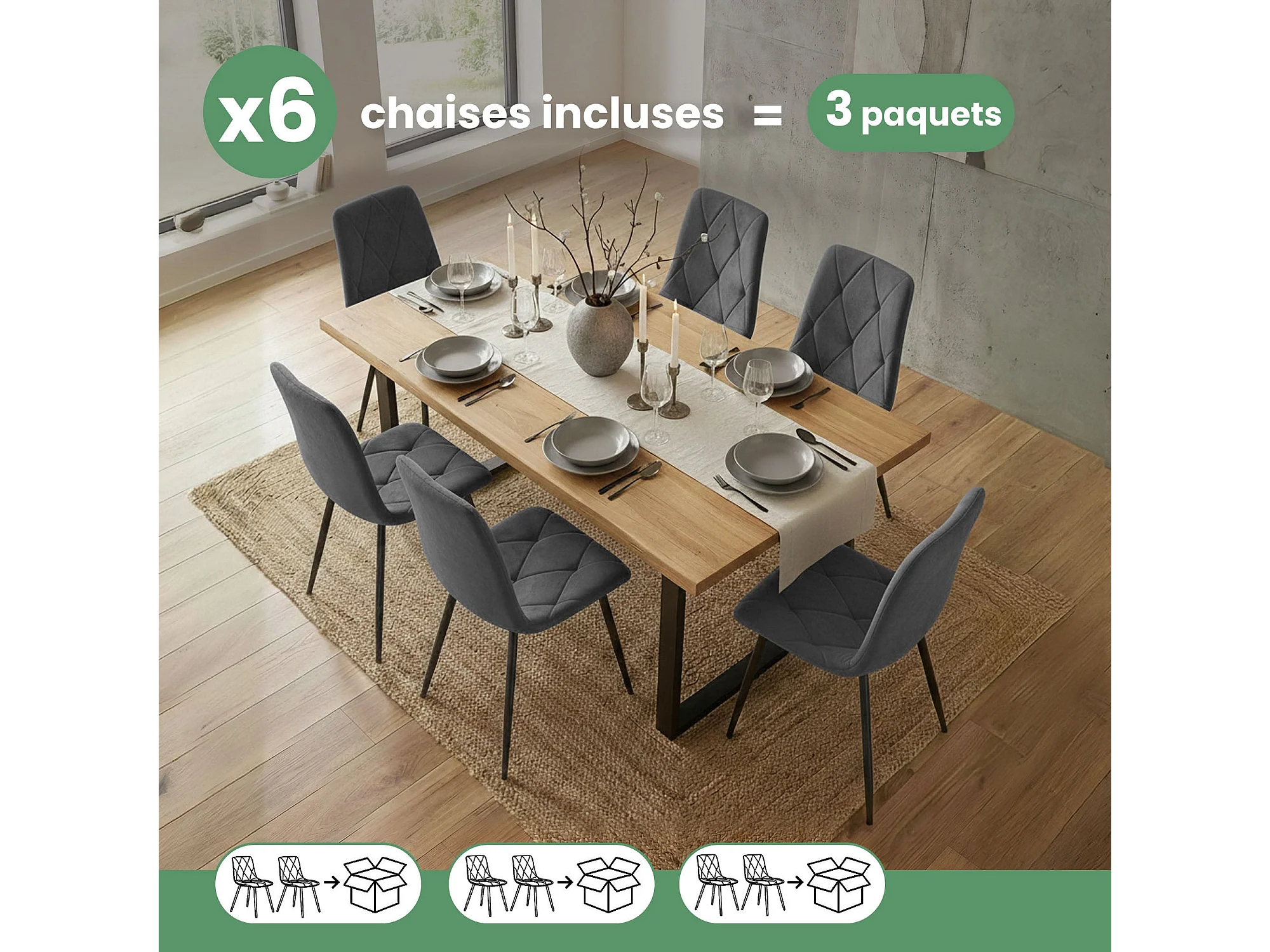6x Welurowe krzesło tapicerowane pikowane Ciemny Grafit MILO Czarne nogi