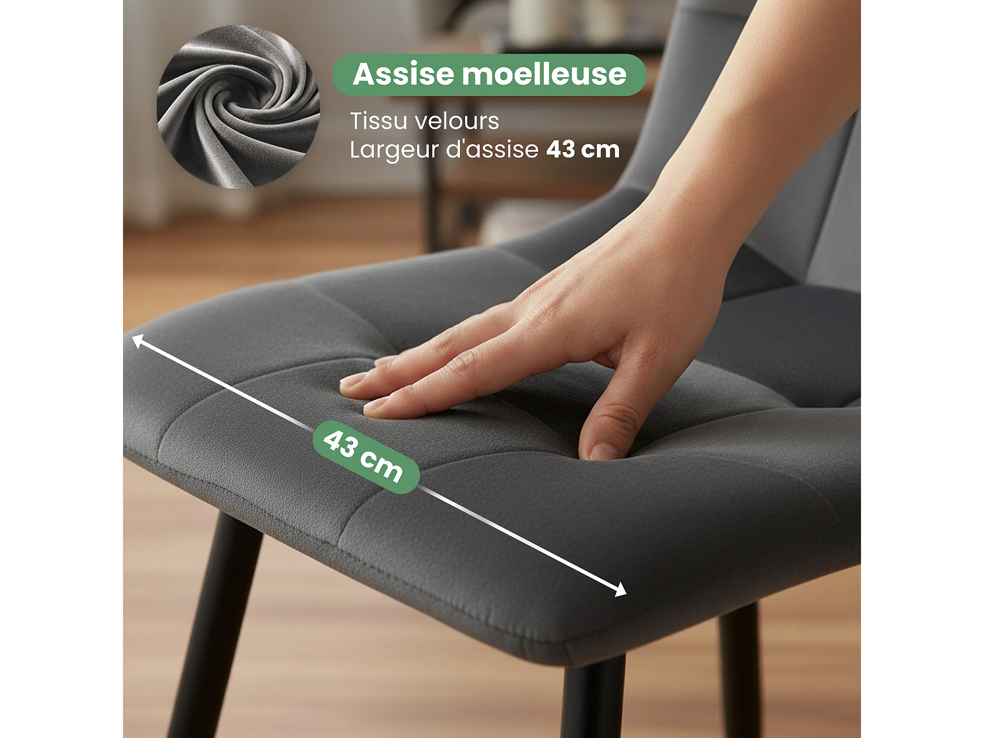 6x Welurowe krzesło tapicerowane pikowane Ciemny Grafit MILO Czarne nogi