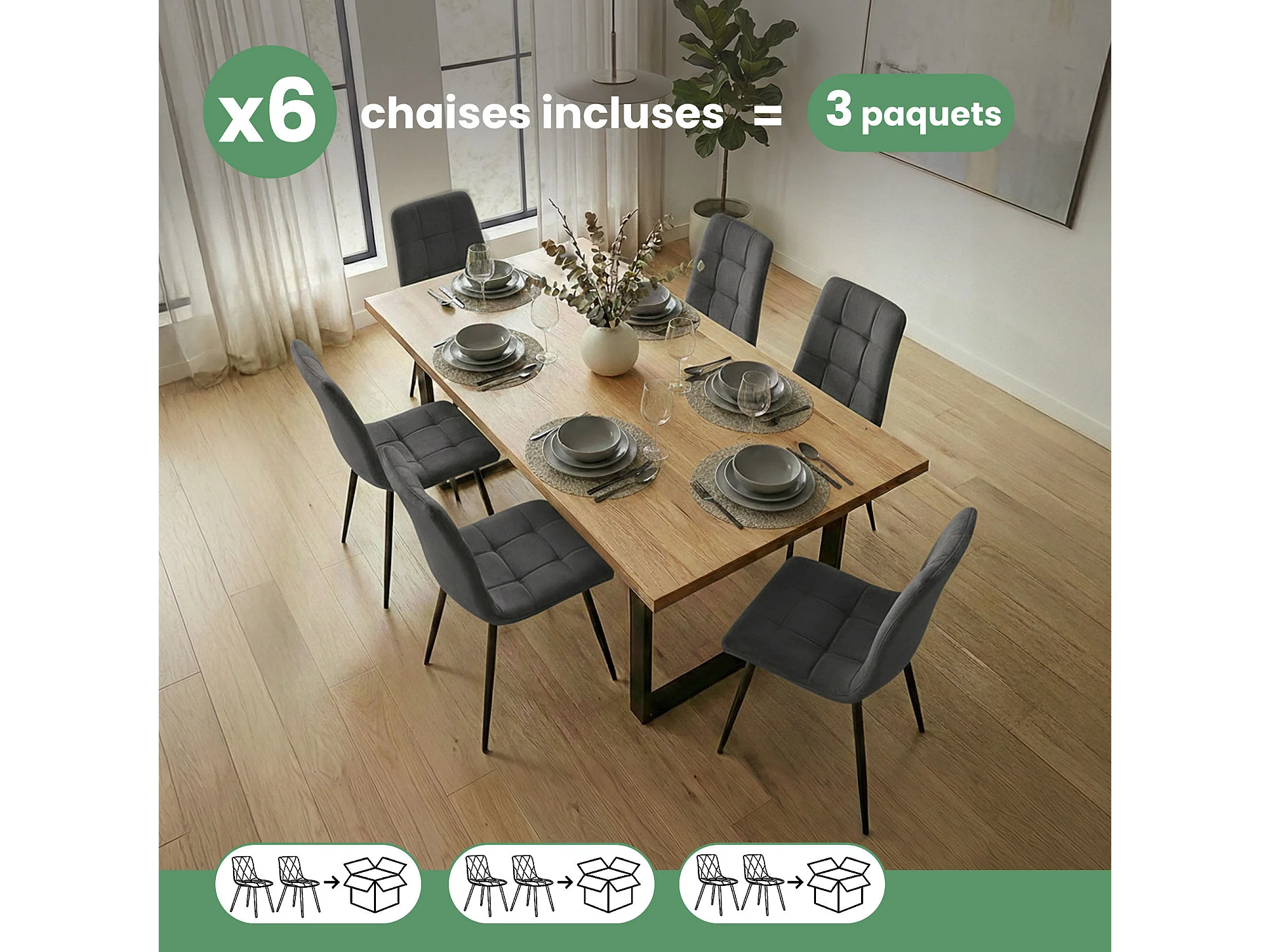 Zestaw 6 welurowych krzeseł, nogi z litego drewna, pikowane oparcie – szary