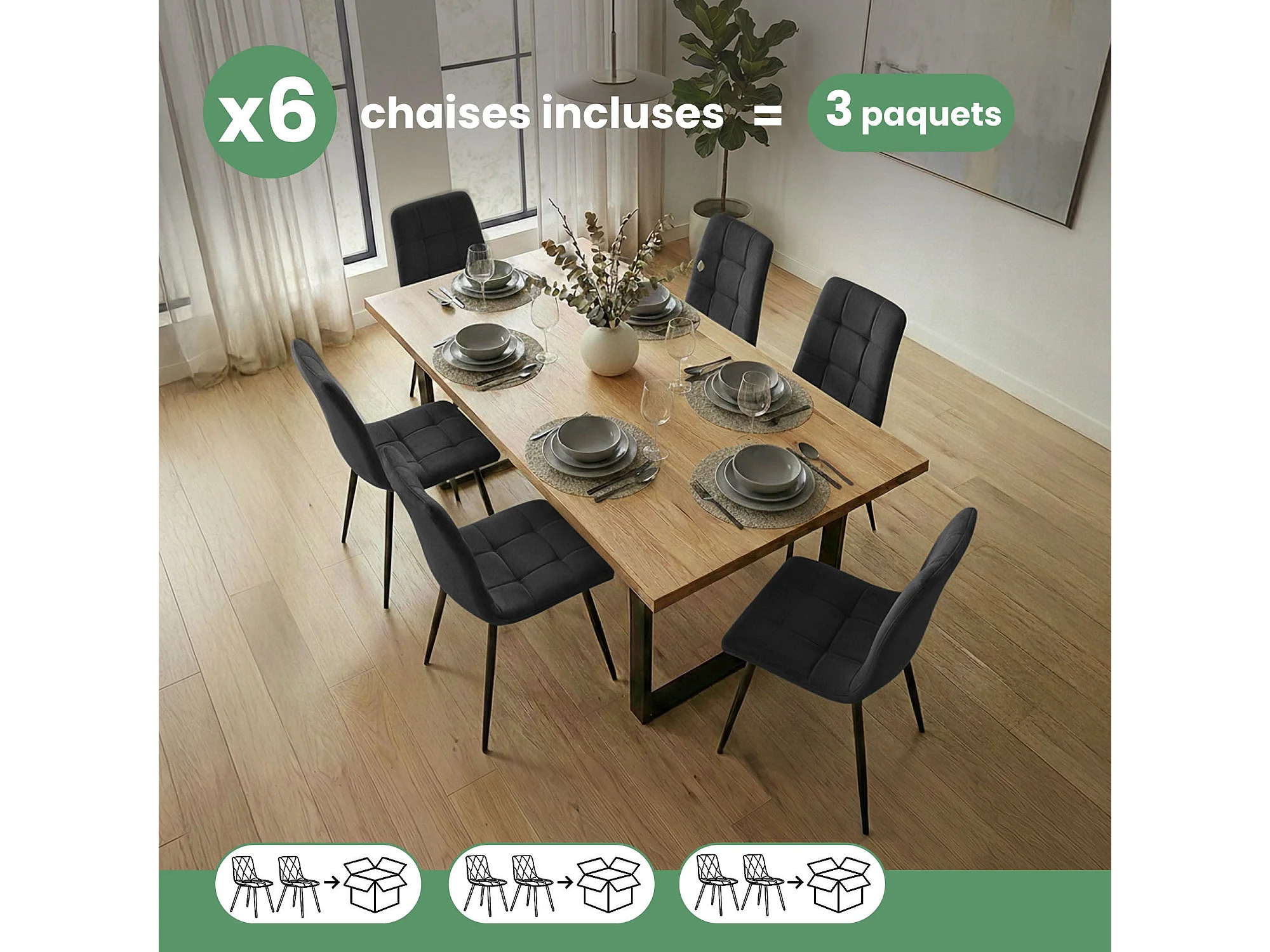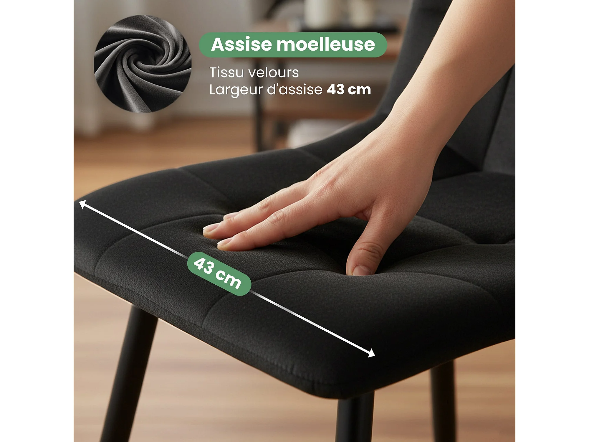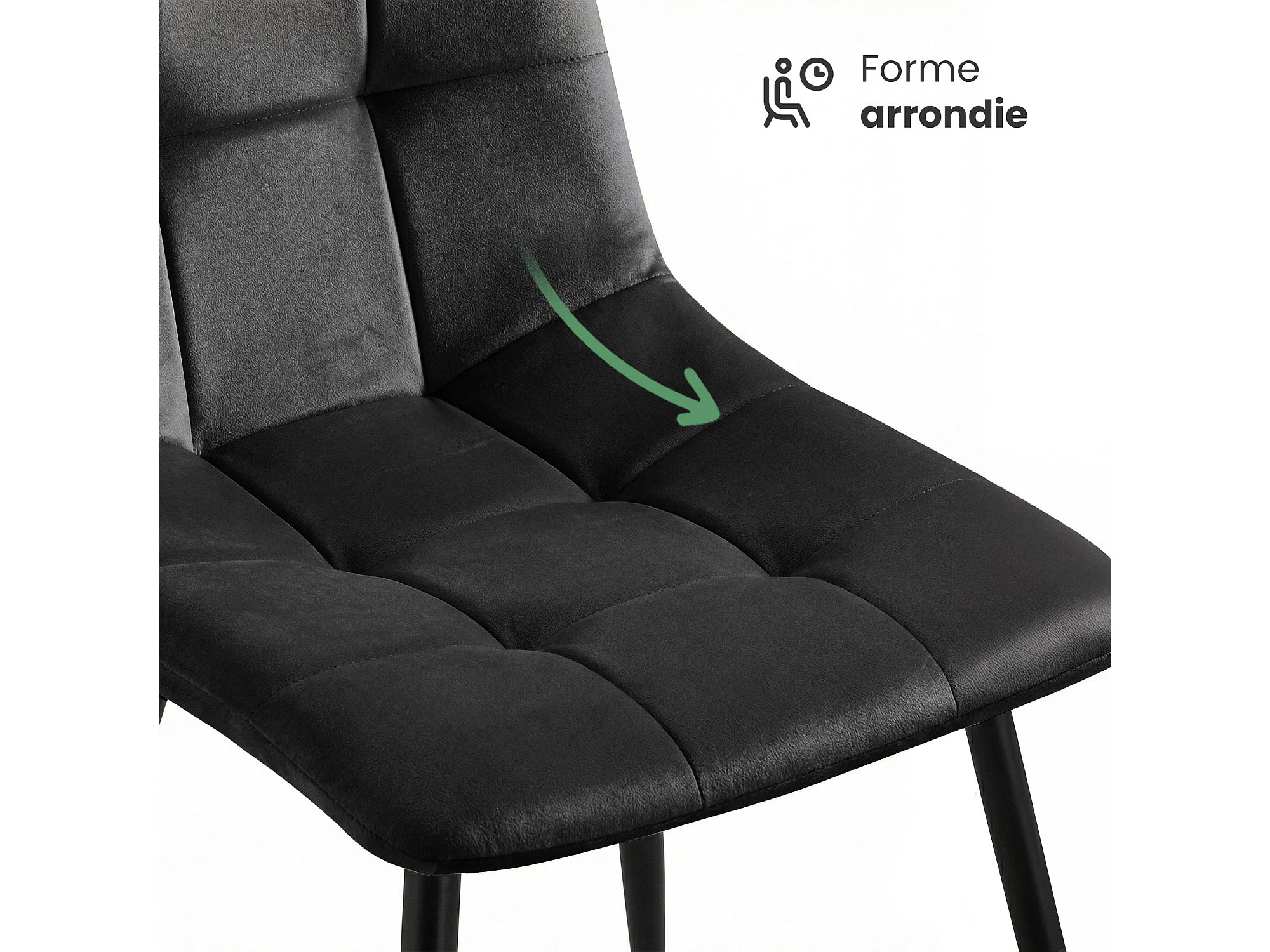 6x Welurowe krzesło tapicerowane pikowane Czarne NERO Czarne nogi