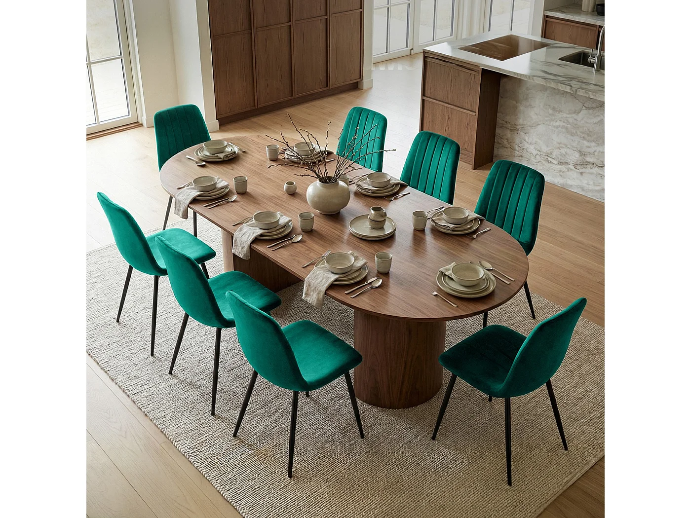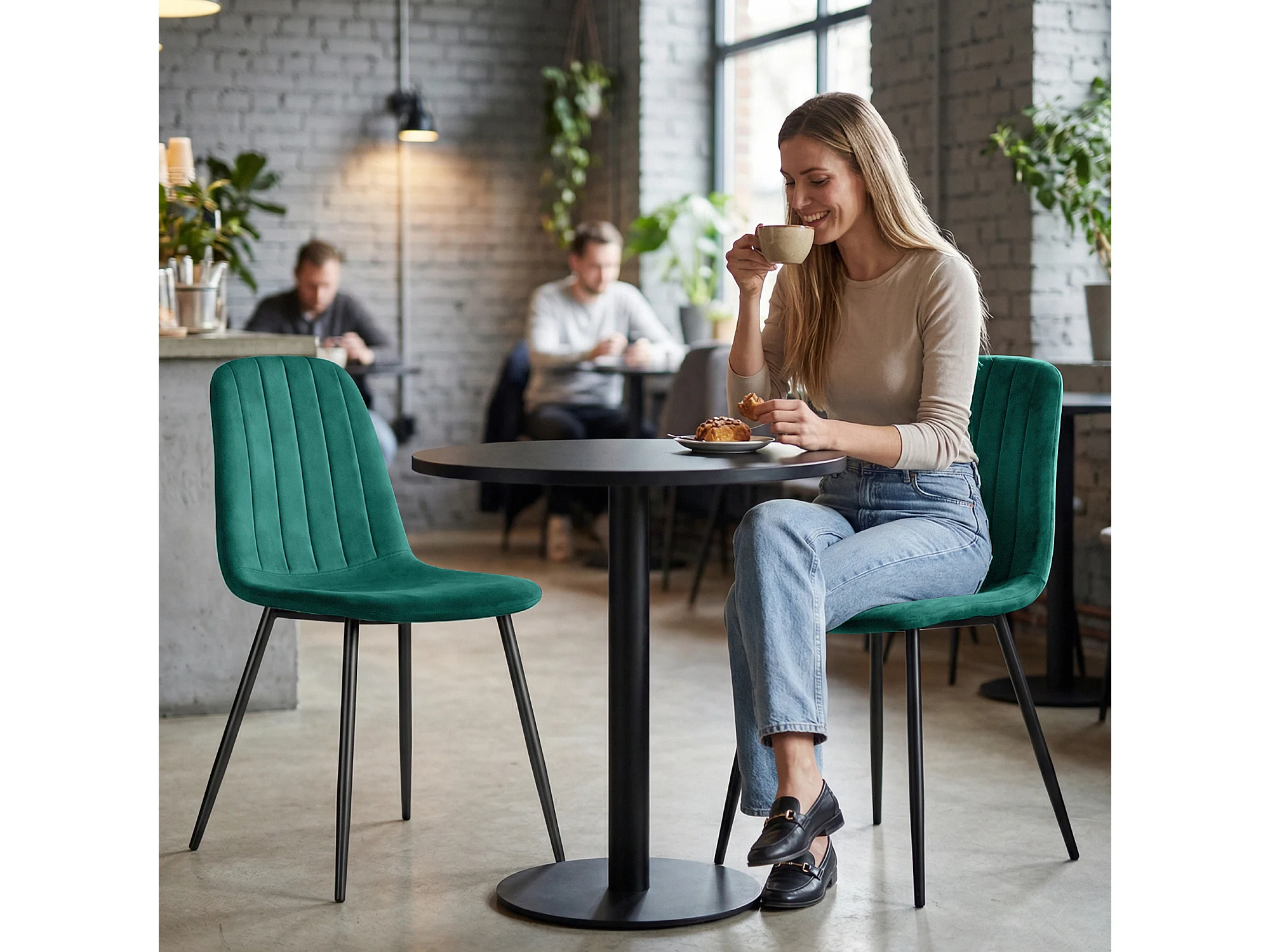 8x Welurowe krzesło tapicerowane pikowane Butelkowa Zieleń LUMO Czarne nogi