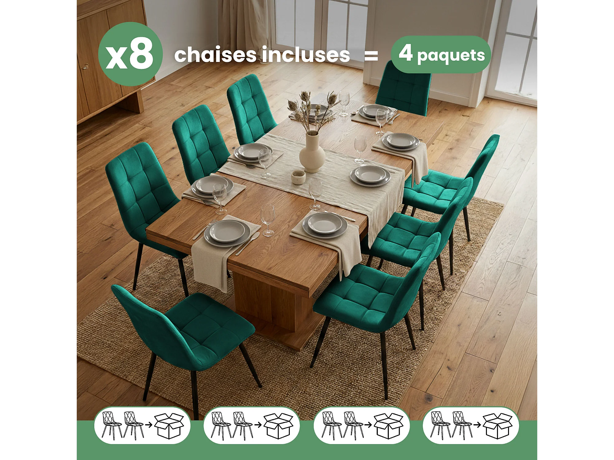 8x Welurowe krzesło tapicerowane pikowane Butelkowa Zieleń NERO Czarne nogi