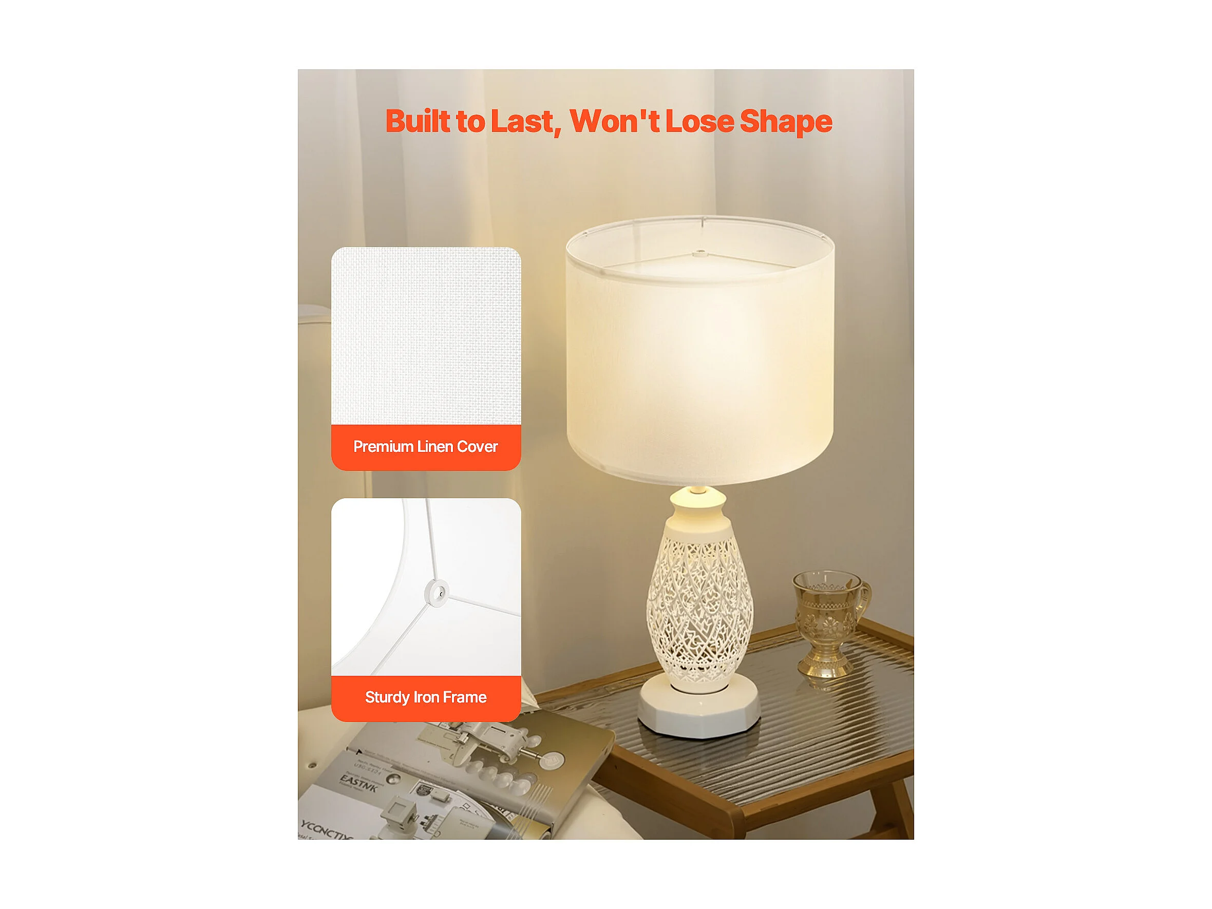 Abażur Bębnowy SucceBuy, 2 Sztuki, 33 x 33 x 25 cm, Średni Abażur Zamienny z Lnu do Lamp Stołowych, Stojących i Wiszących, Len w Kolorze Złamanej Bieli