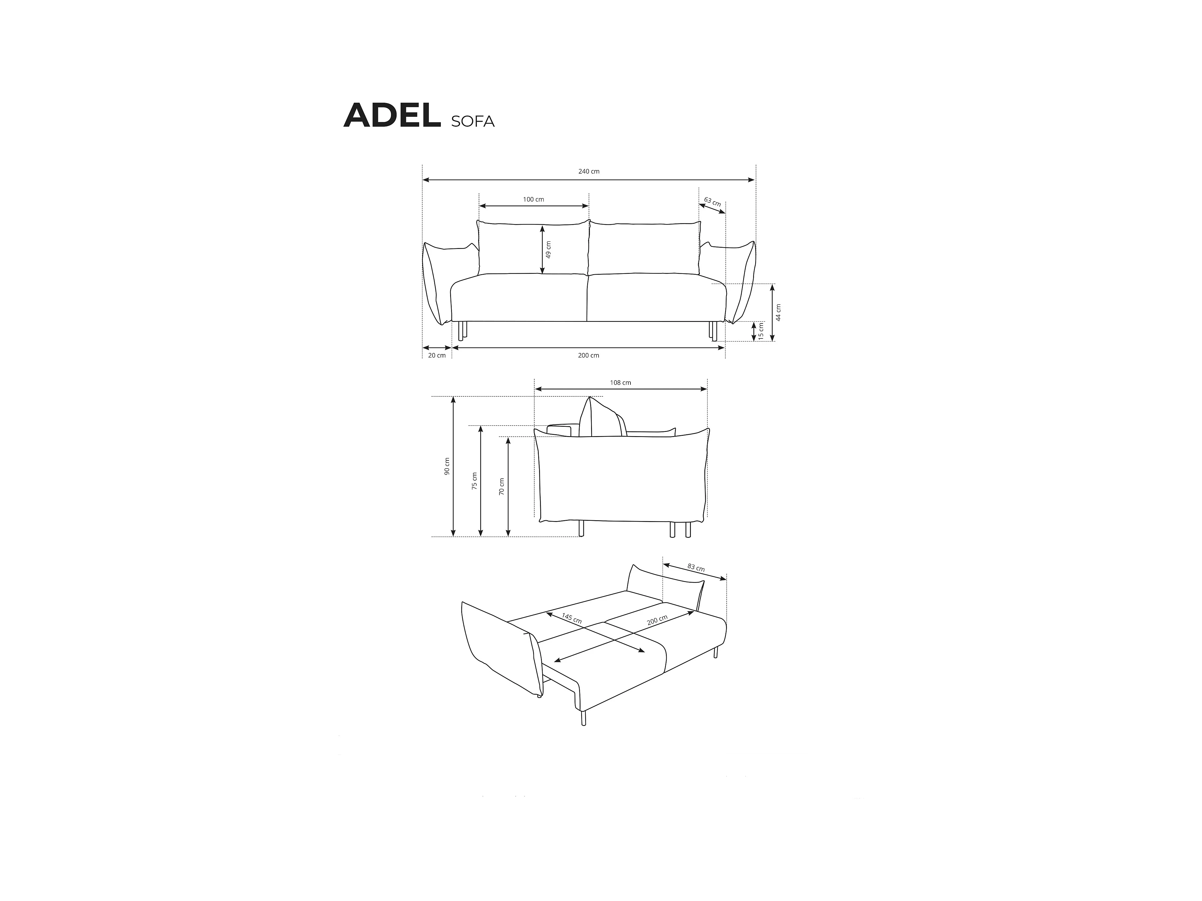 ADEL-Sofa nowoczesna sofa z funkcją spania, pojemnikiem, silikonowe poduszki, sprężyny faliste, ECRU, 145x200 cm