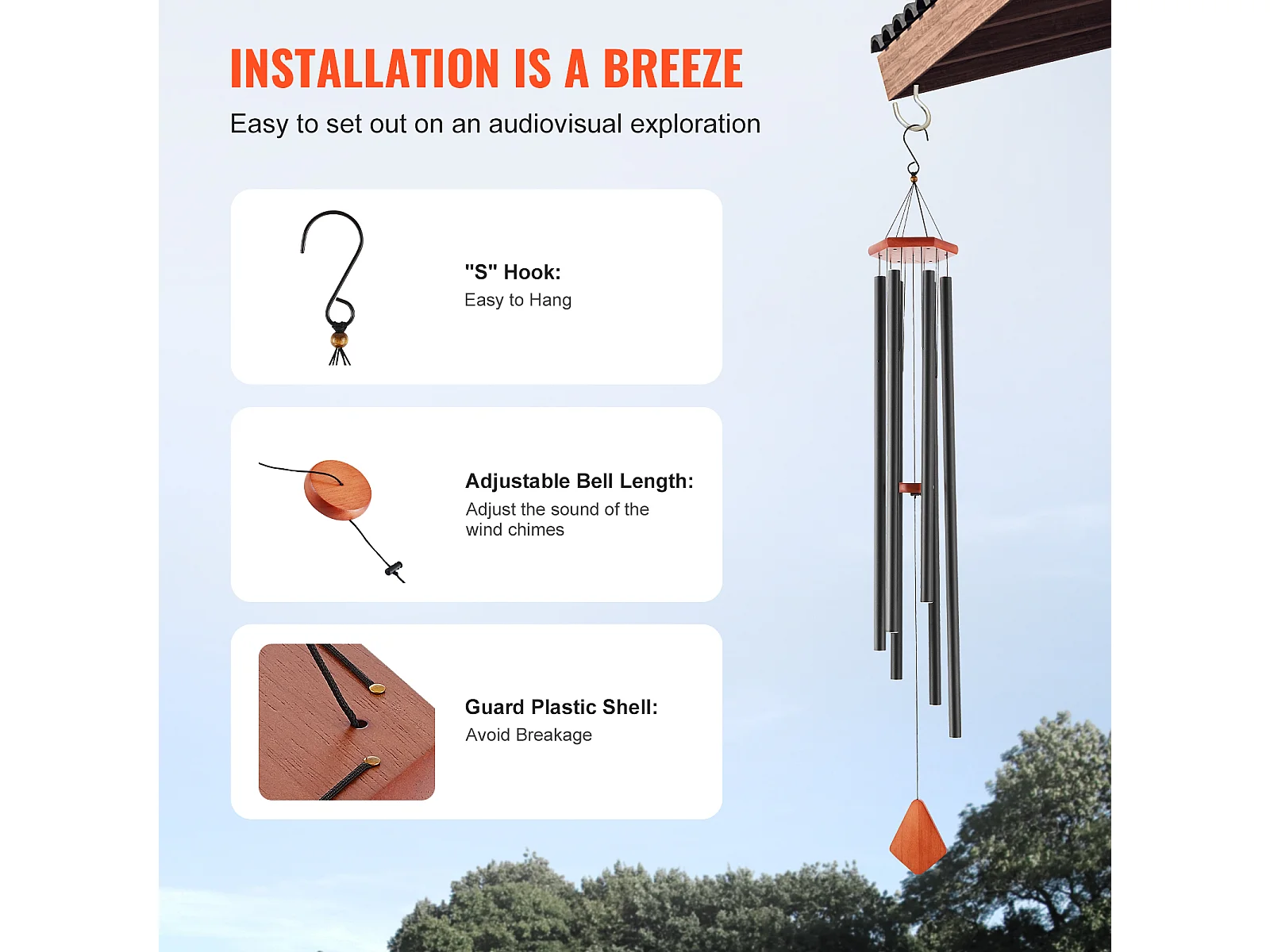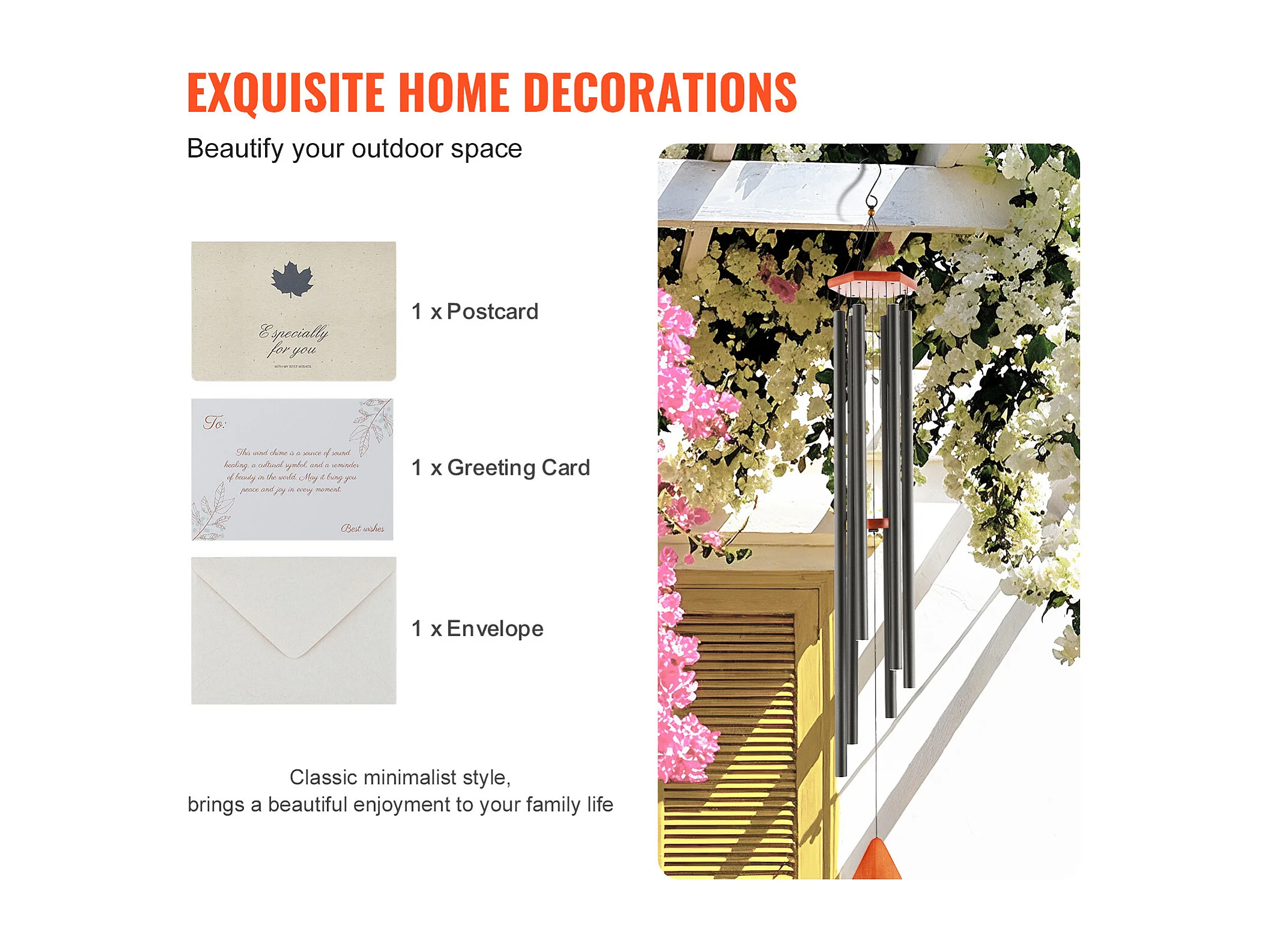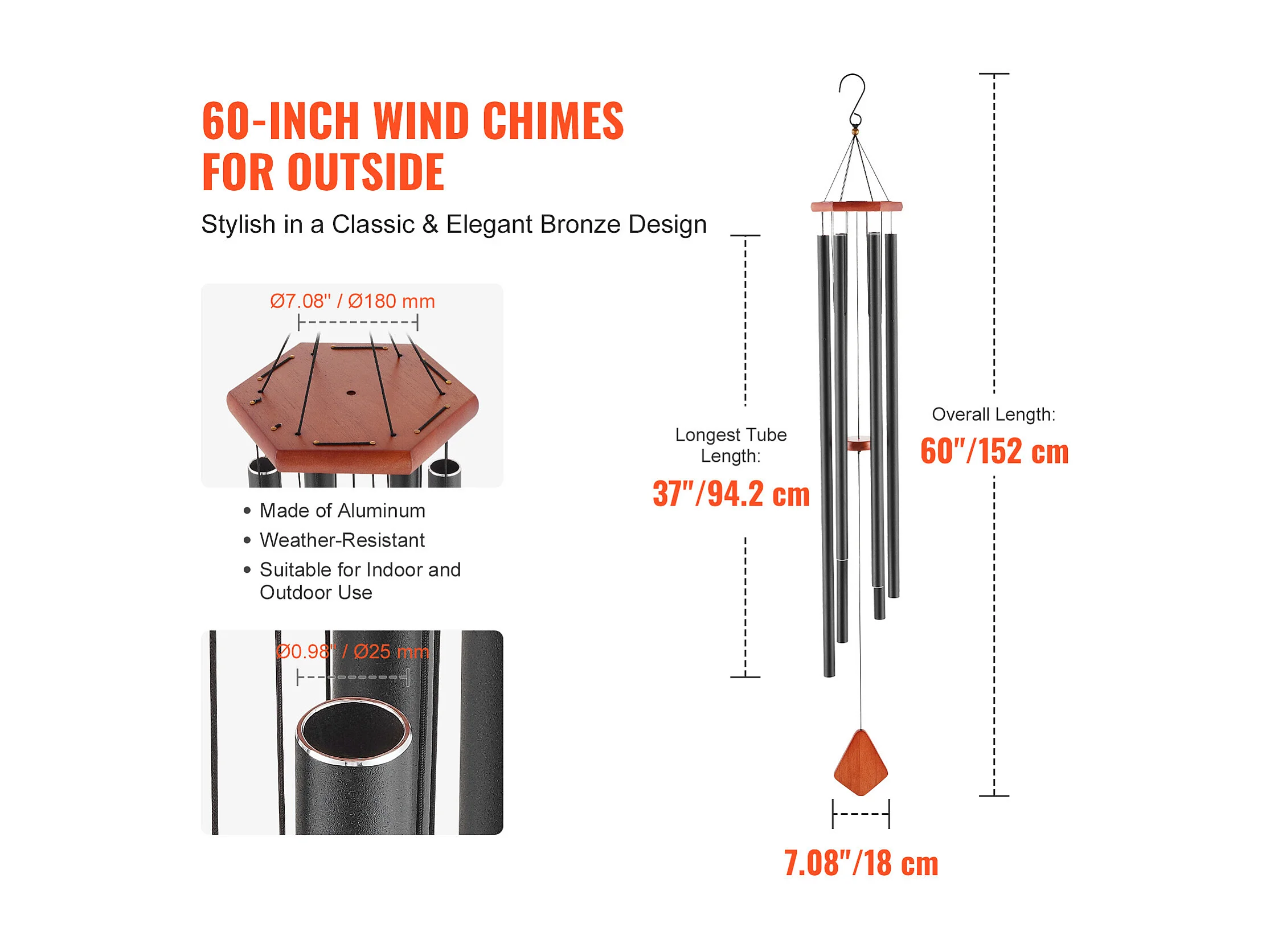 Aluminiowy Dzwonek Wiatrowy SucceBuy, 1524 mm, do użytku na zewnątrz, Pamiątkowy Wzór w Głębokich Odcieniach