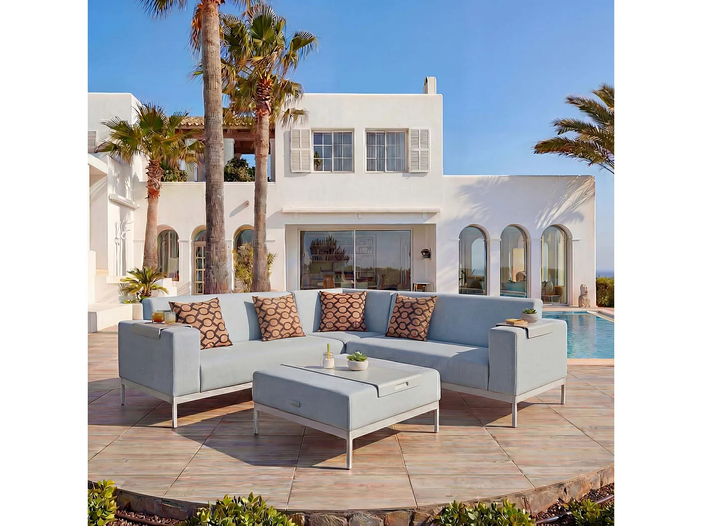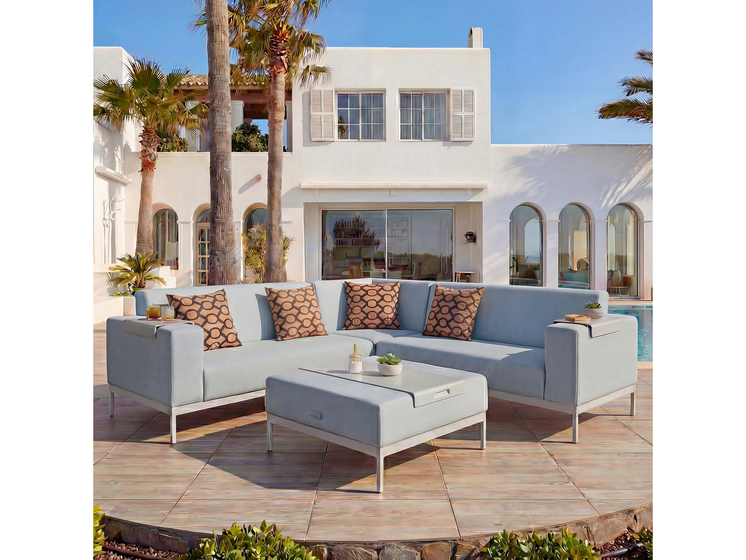 Zestaw mebli ogrodowych Iron - 2 narożniki 4-osobowe + 1 stolik kawowy - kolor khaki