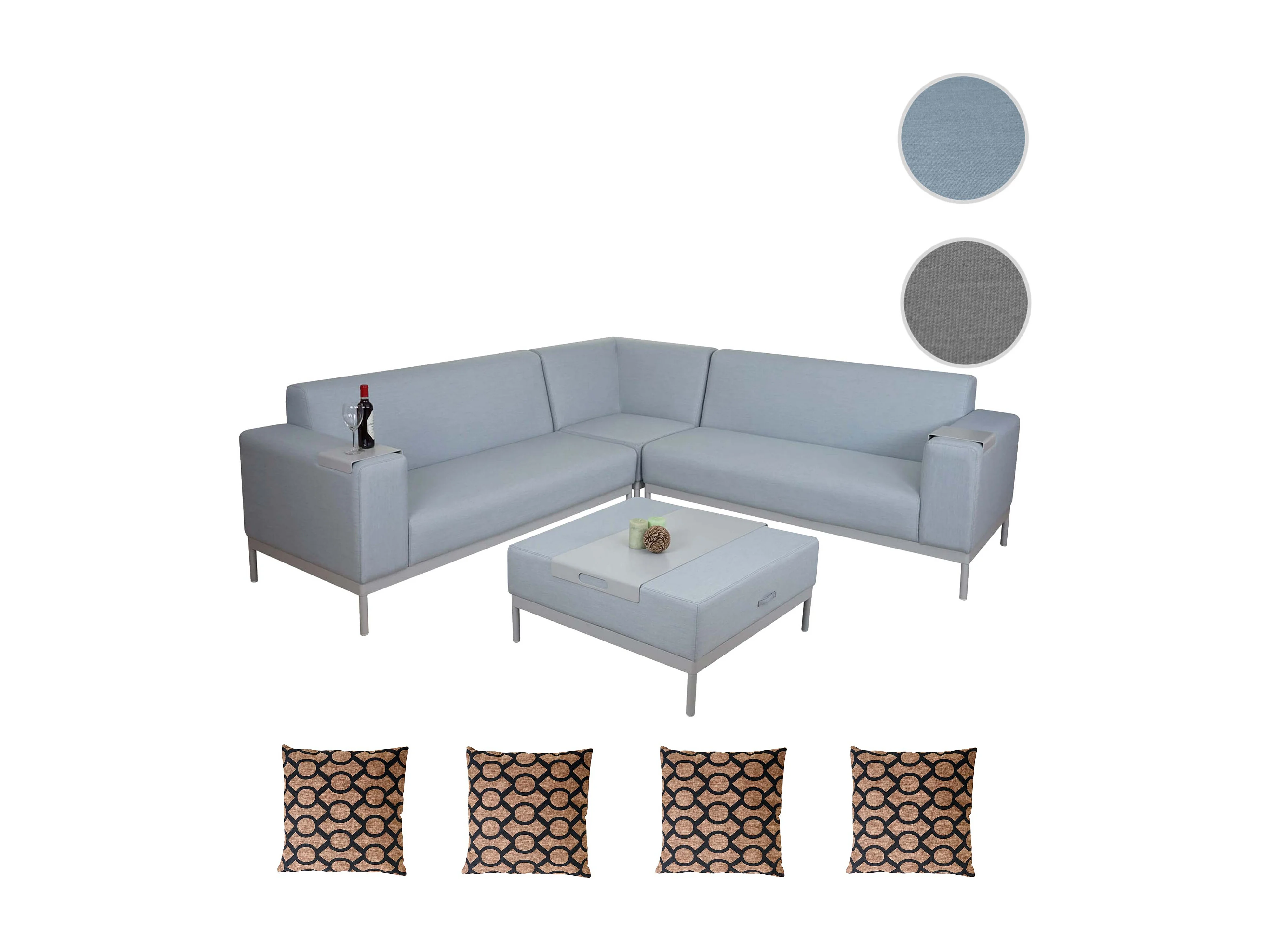 Zestaw ogrodowy z aluminium MCW-C47 (11 elementów), niebieski z półką, poduszki brązowe