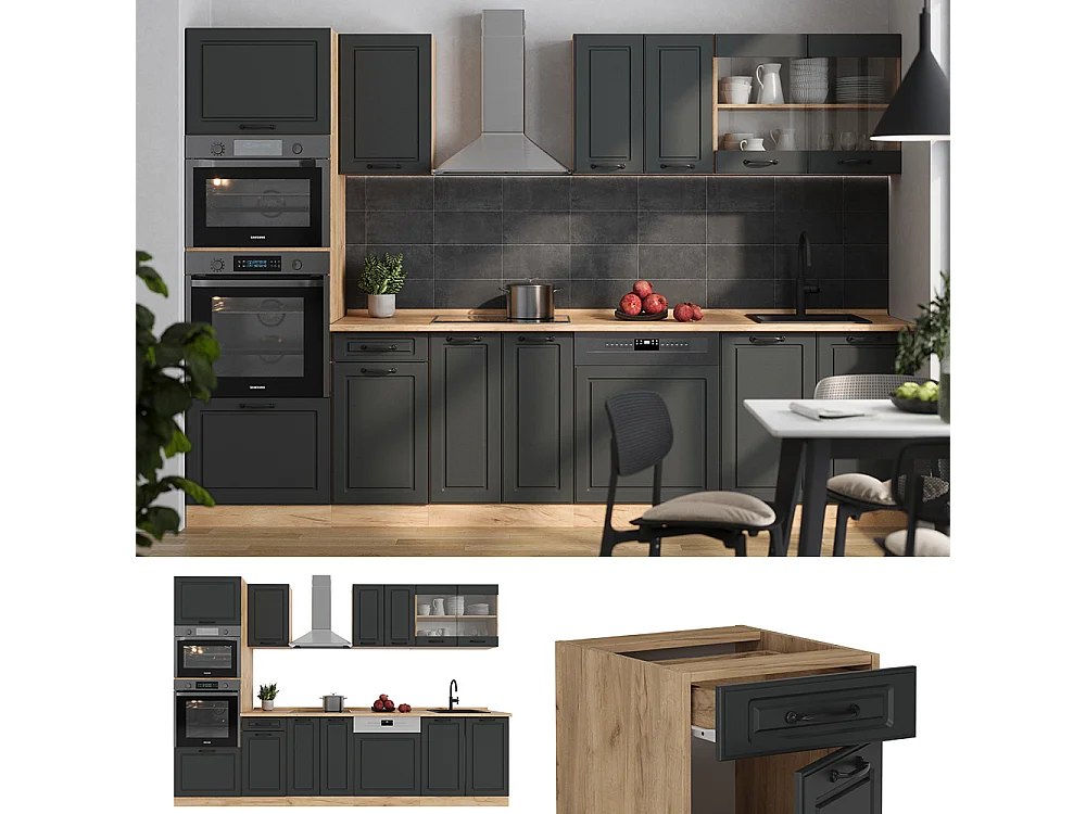 Aneks kuchenny antracytowy dom wiejski/antracyt 300x60x81.6 r-line