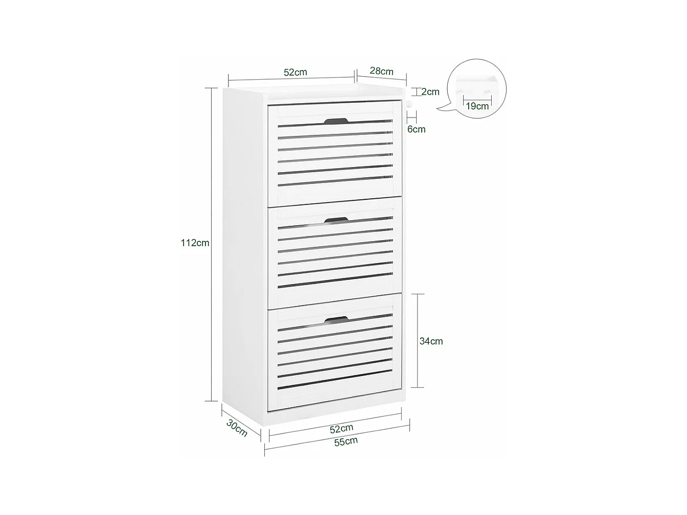 Szafka na buty design 3 skrzydła Zapateros - błyszcząca biel, dla dorosłych