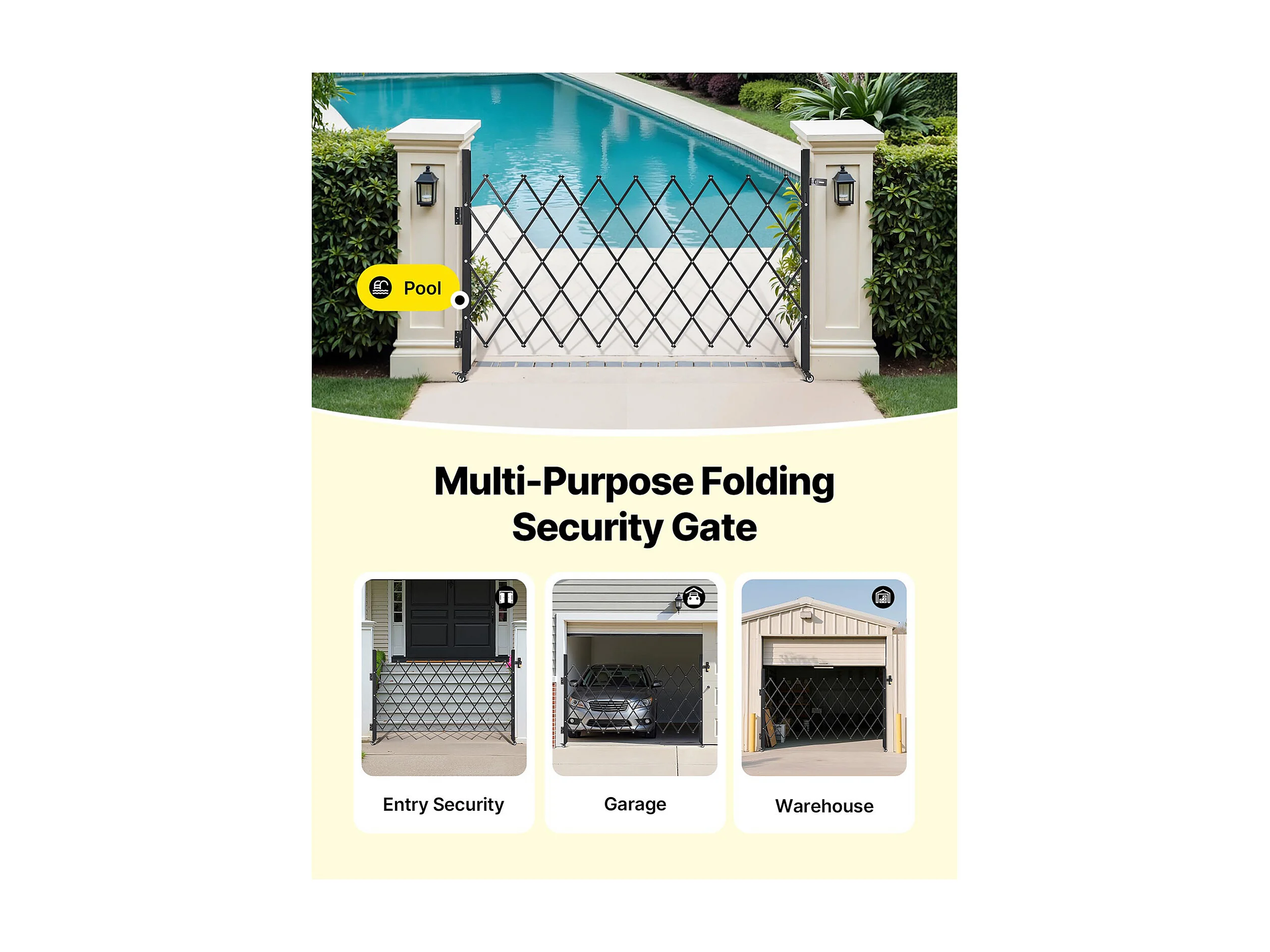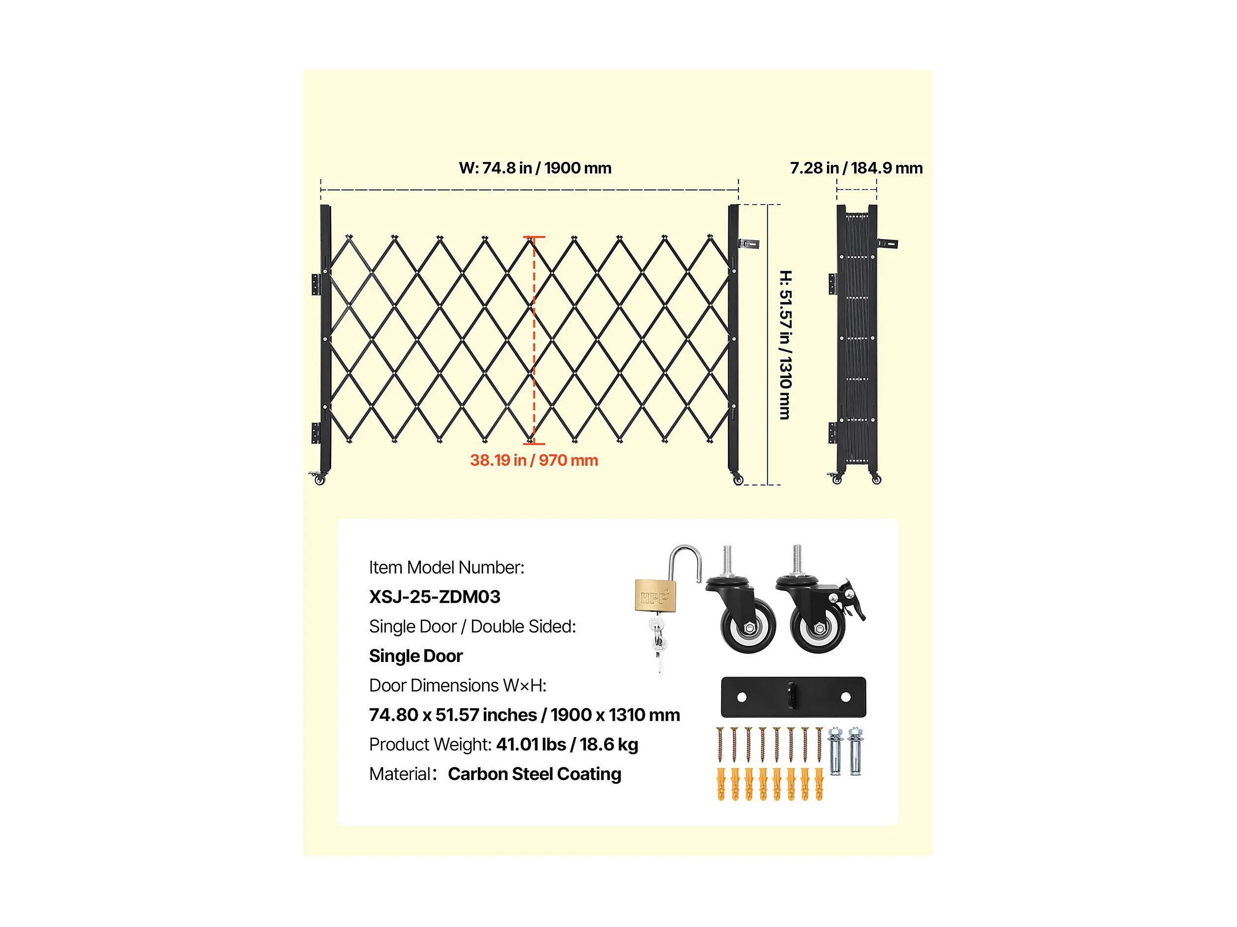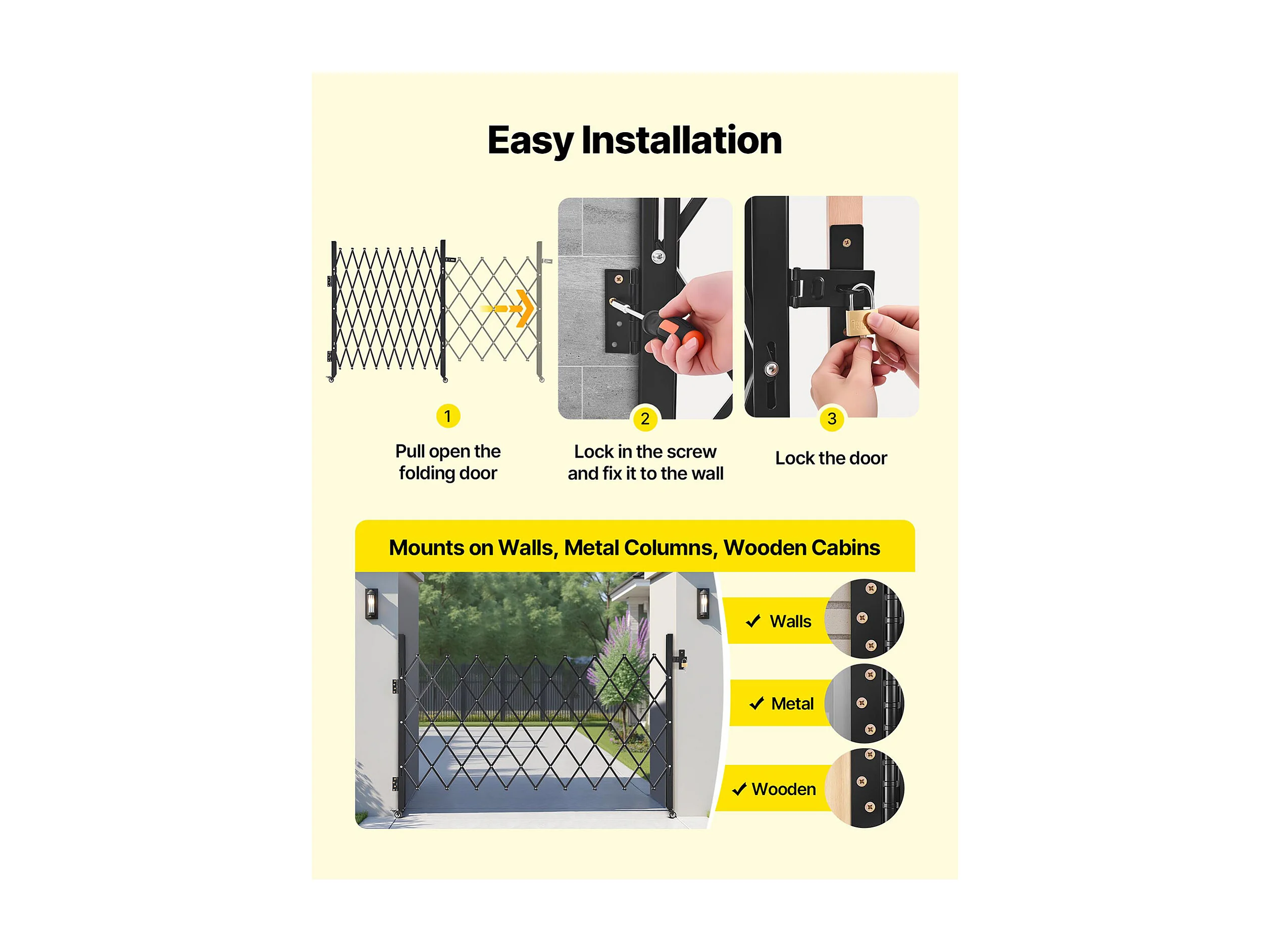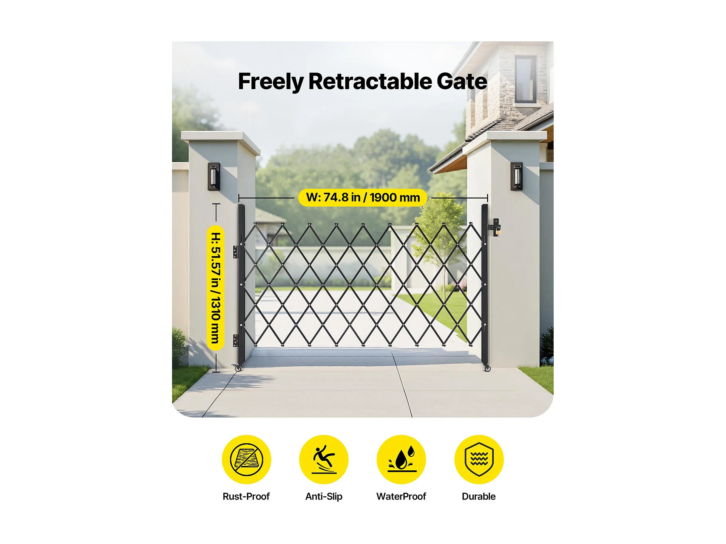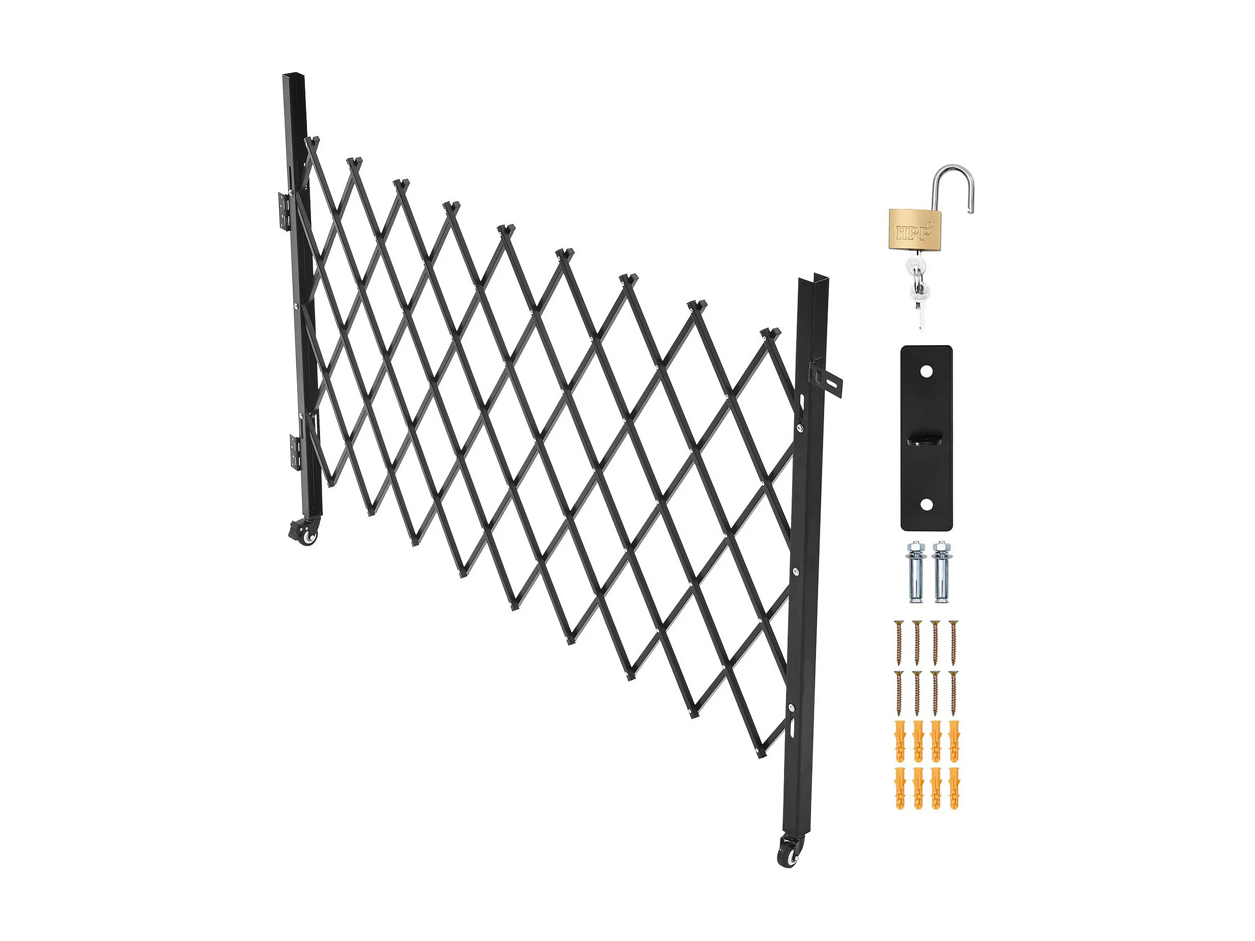 Barierka Bezpieczeństwa SucceBuy Rozsuwana 190 x 131 cm, Pojedyncza Brama Nożycowa, Zamykana i Chowana, ze Solidnej Stali, do Wejścia, Garażu