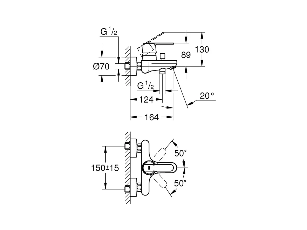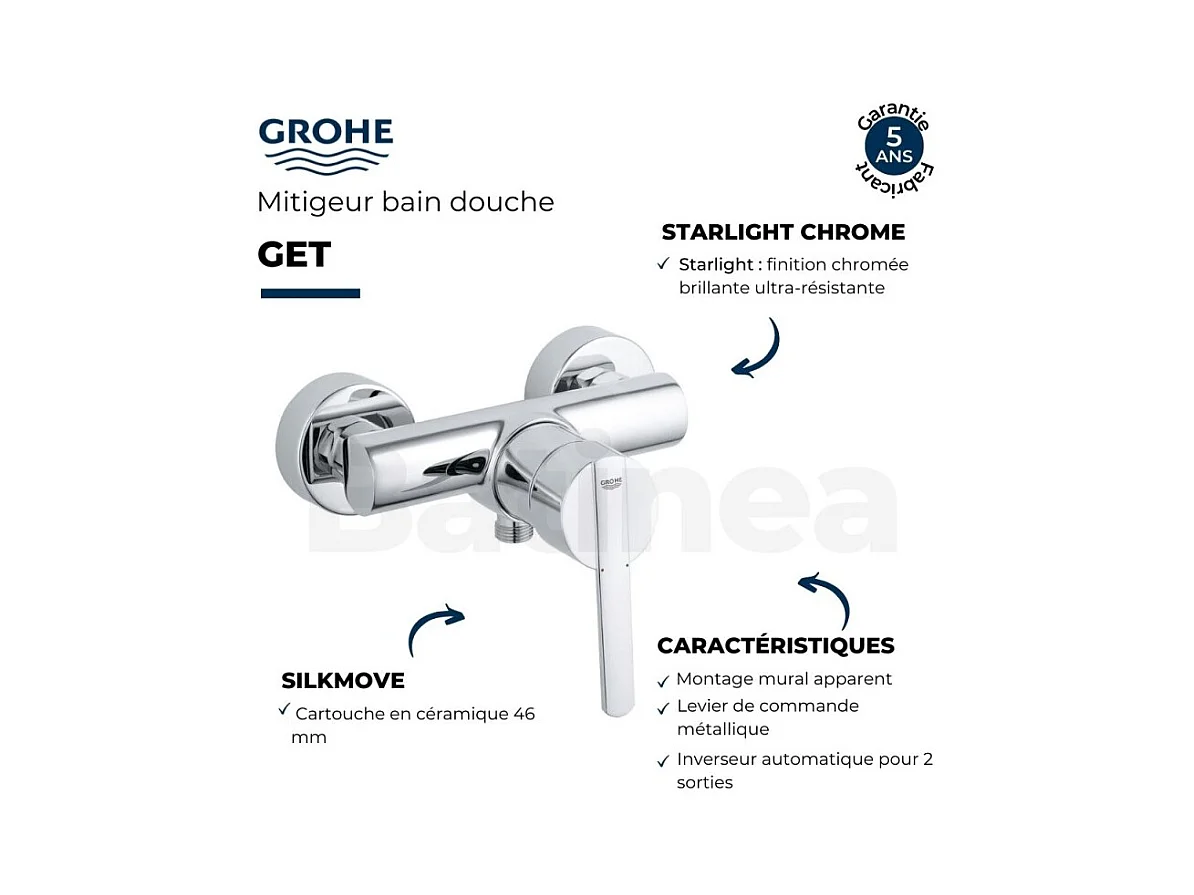 Bateria Wannowo-Prysznicowa GROHE Get Chromowana Ścienna