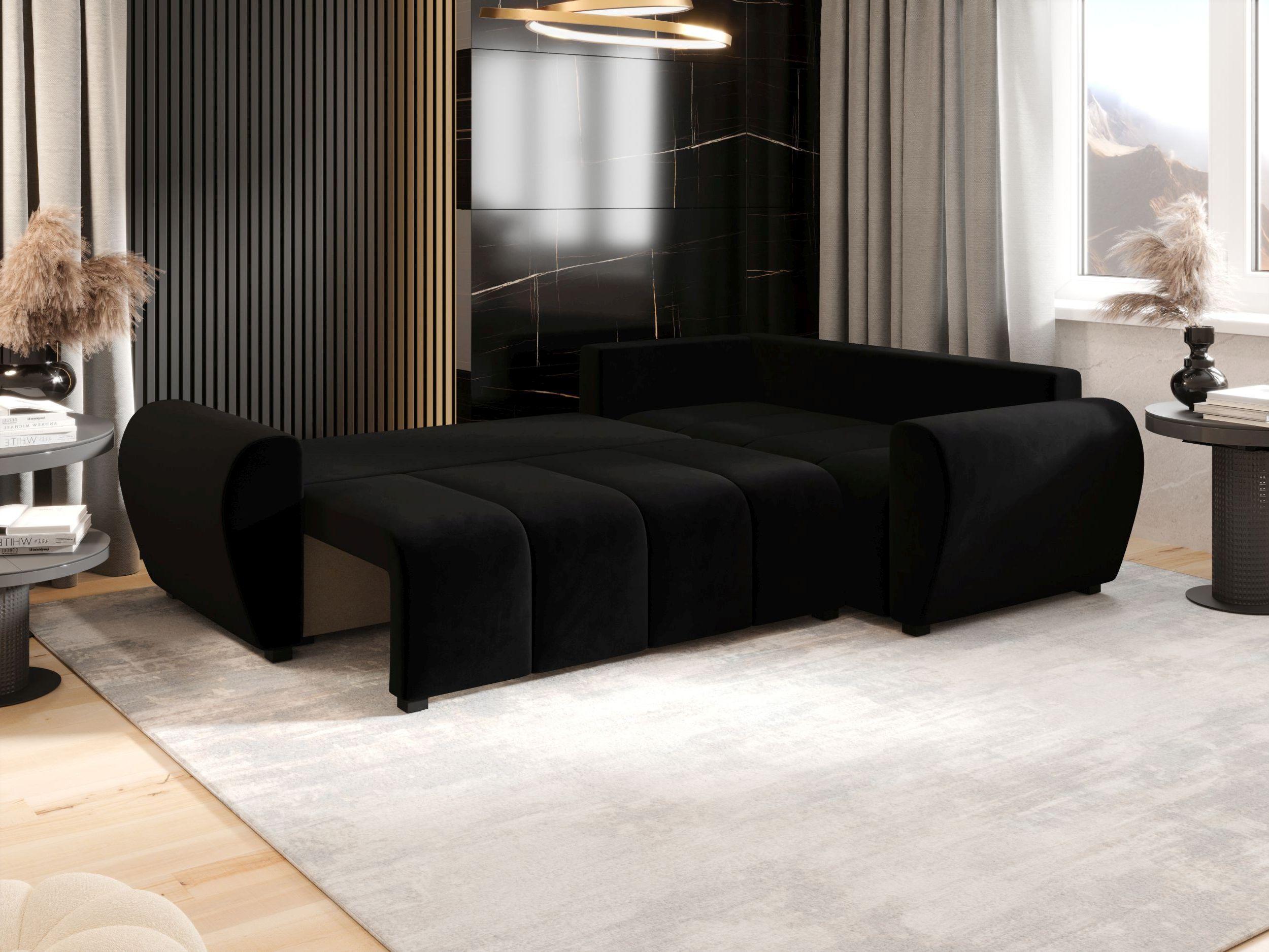 Narożnik z funkcją spania LUCAS Curio 99 czarny prawy sofa w kształcie L z pojemnikiem na pościel sofa do salonu, sofa rozkładana, sofa z pojemnikiem