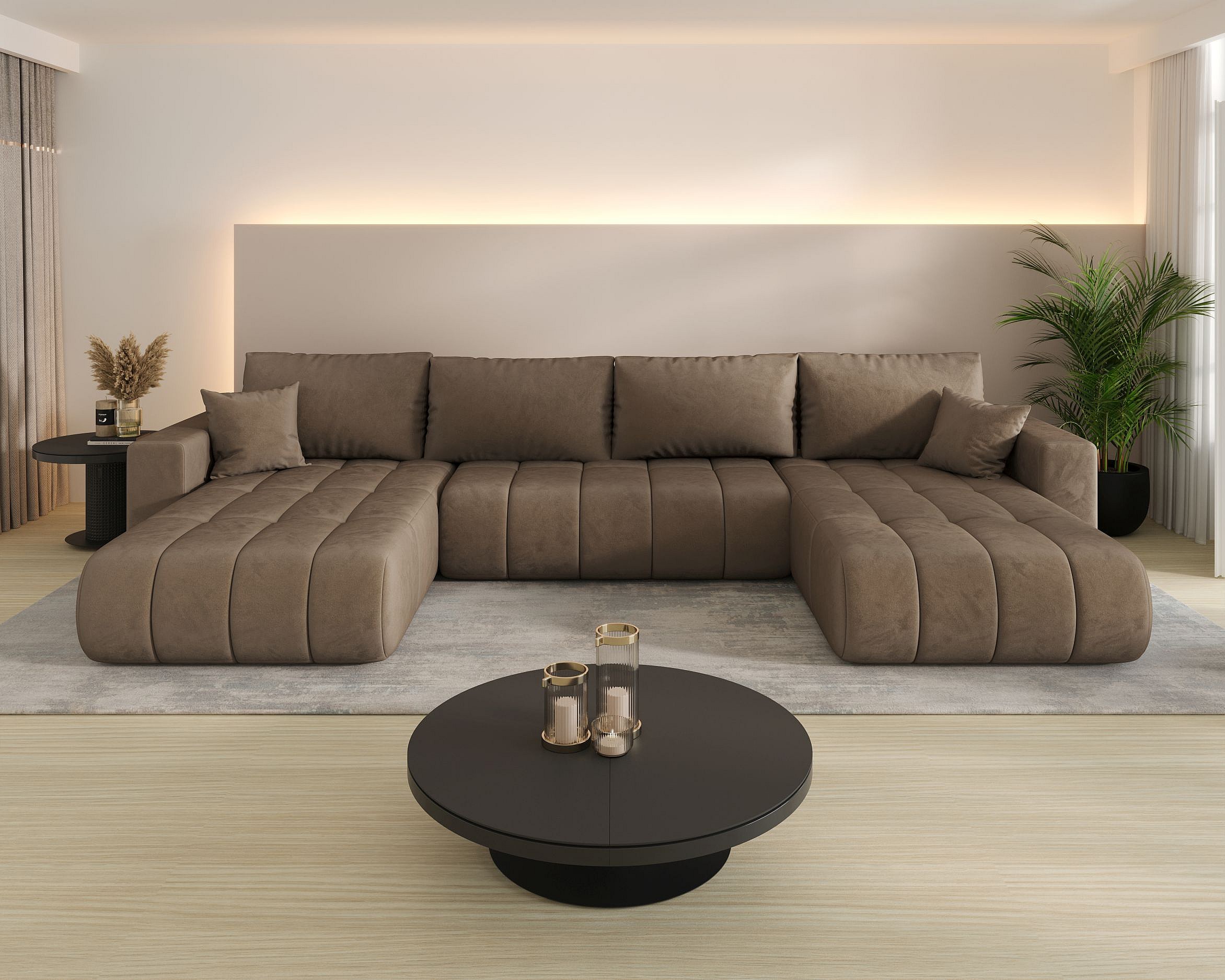 BEDANTE narożnik z funkcją spania MILO U PREMIUM Monolith 09 Przestronny narożnik w kształcie litery U z funkcją spania