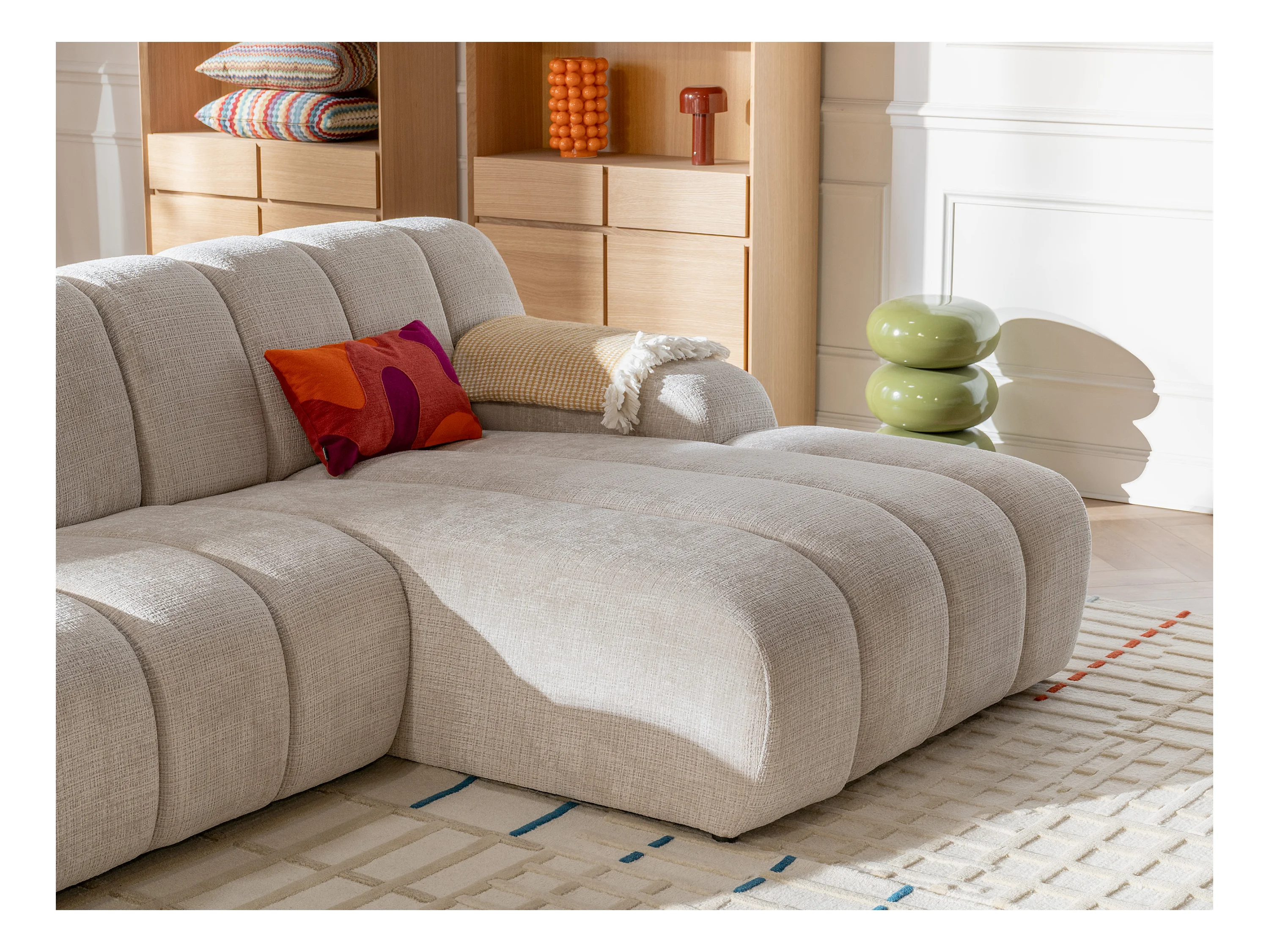 Kanapa narożna prawostronna z beżowej tkaniny szenilowej BELADON