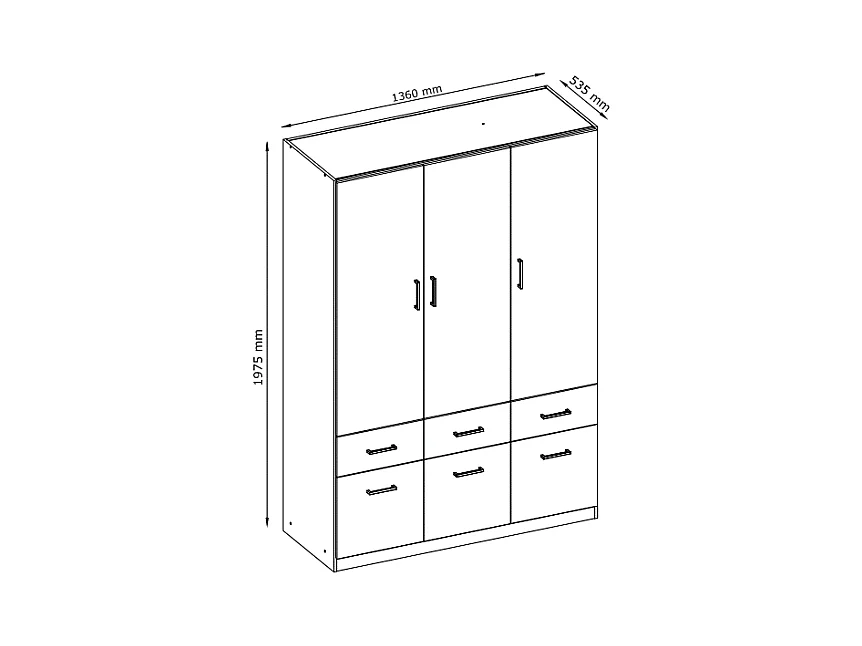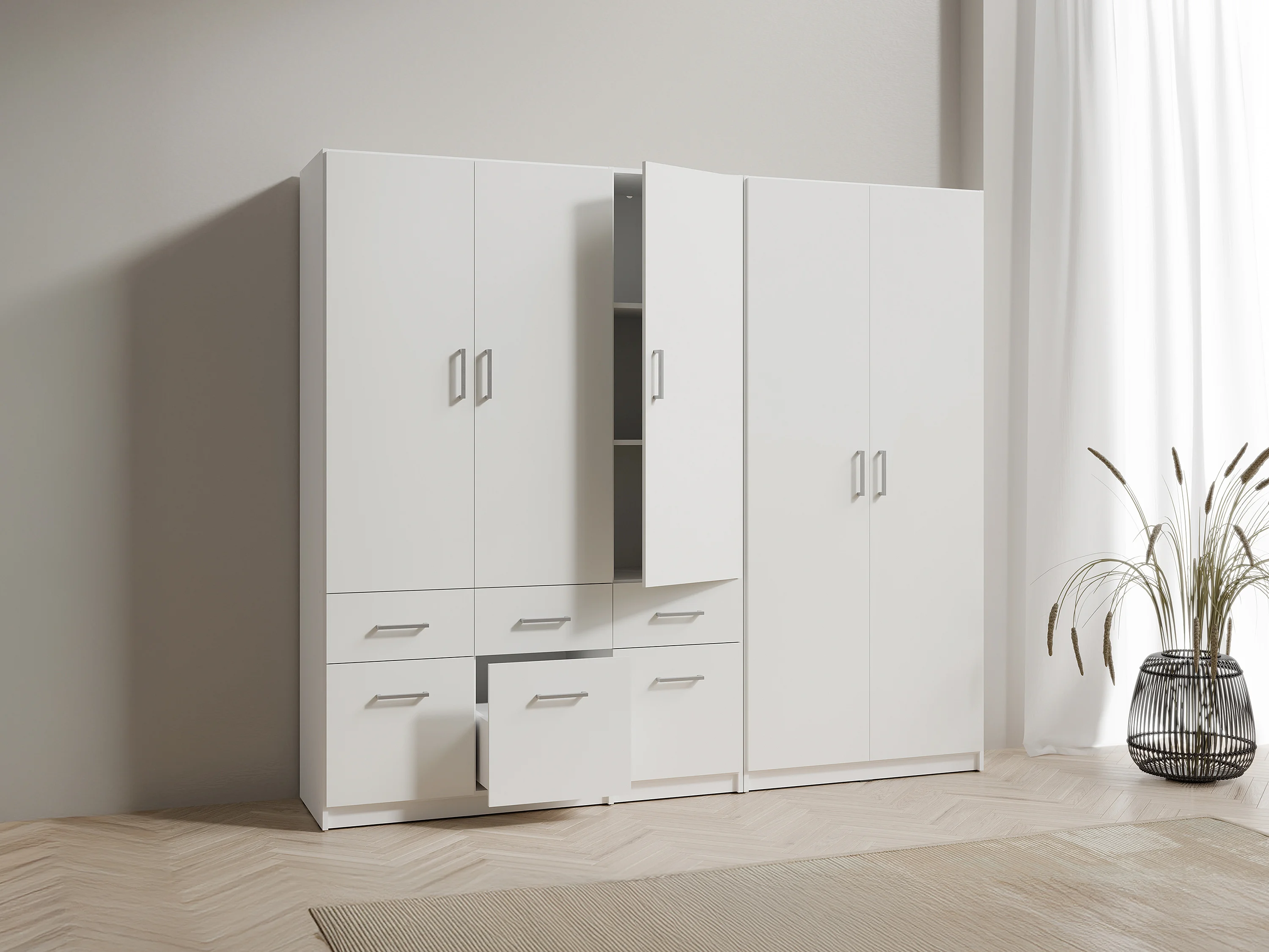 Szafa 5-drzwiowa z 6 szufladami - szer. 228 cm - Biały - BELOMY