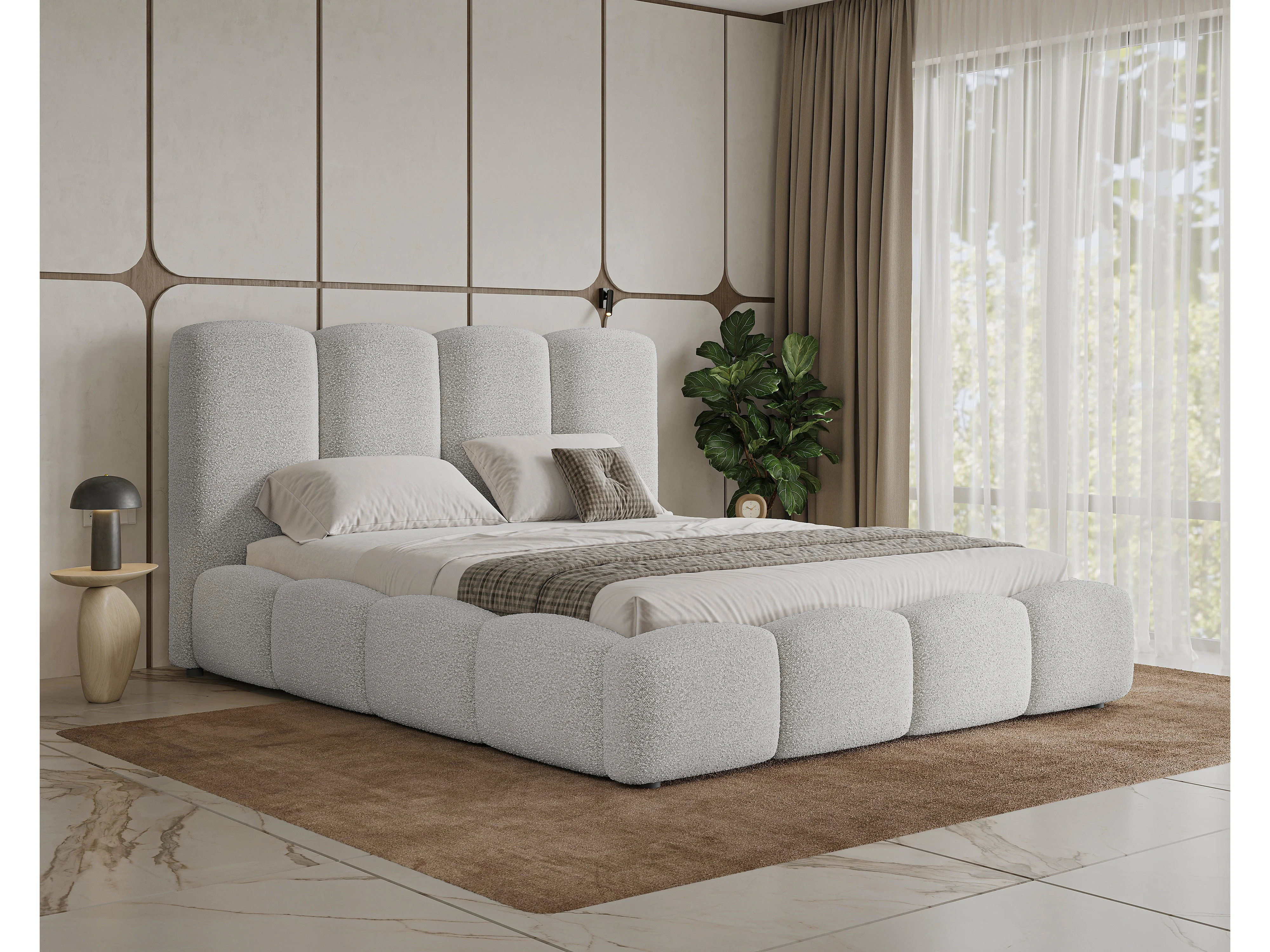 BESILIO Łóżko chmurka z pojemnikiem i stelażem 200x200 Fluffy - łóżko tapicerowane tkanina boucle/baranek, łóżko gruba pianka - Jasnoszary