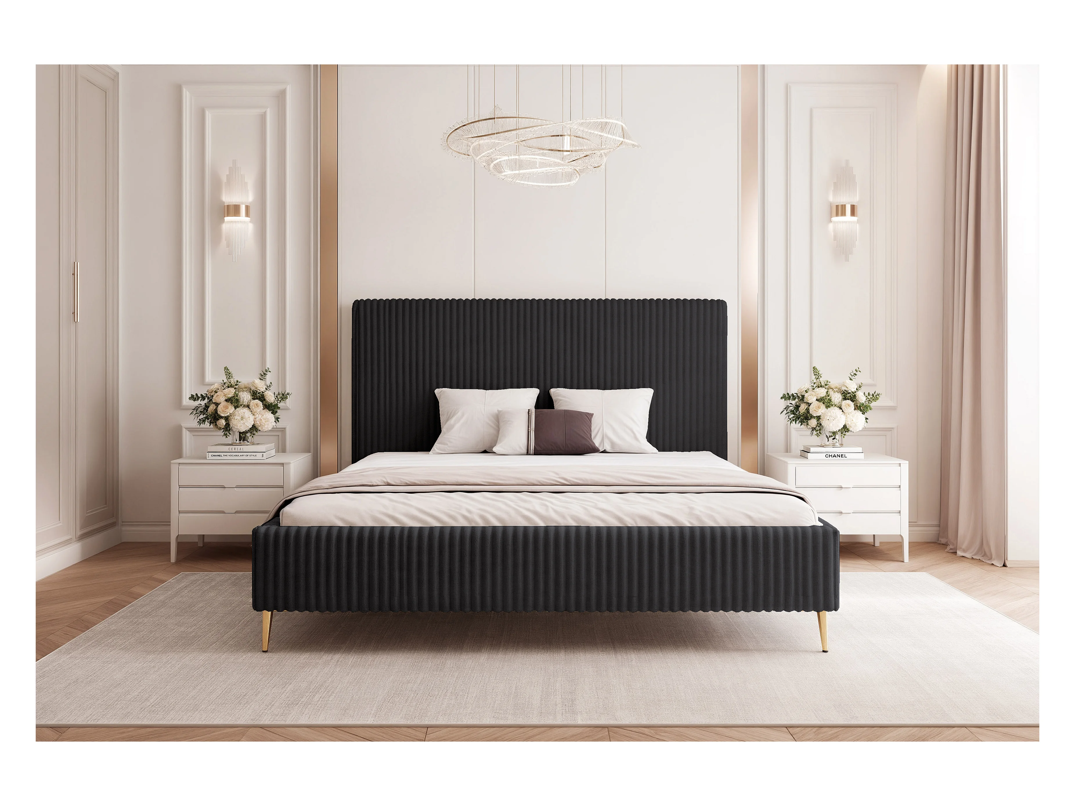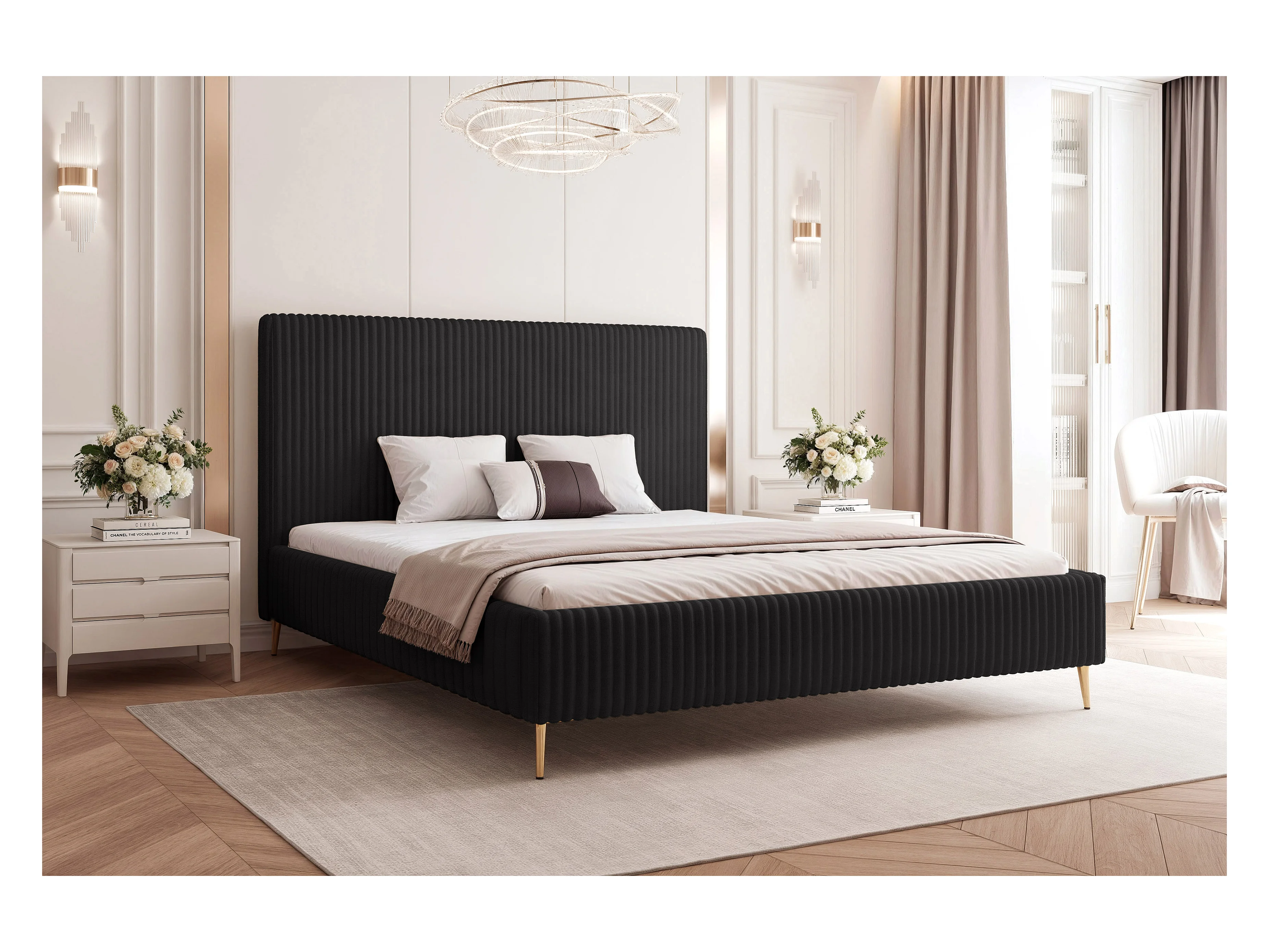 BESILIO Łóżko do sypialni 180x200 Vienna II - Łóżko z pojemnikiem, łóżko slim, wysokie złote nogi, stelaż listwowy - Tkanina miękki sztuks - Czarny