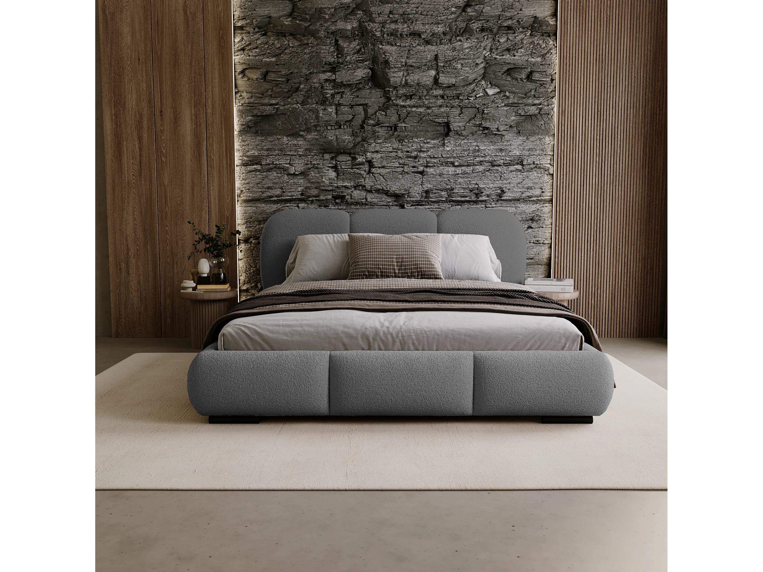 BESILIO Łóżko z pojemnikiem i stelażem 140x200 Holi- łóżko podwójne tapicerowane, tkanina boucle, baranek - Szary