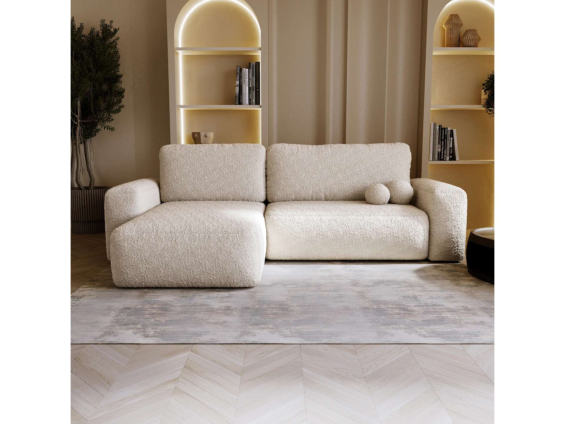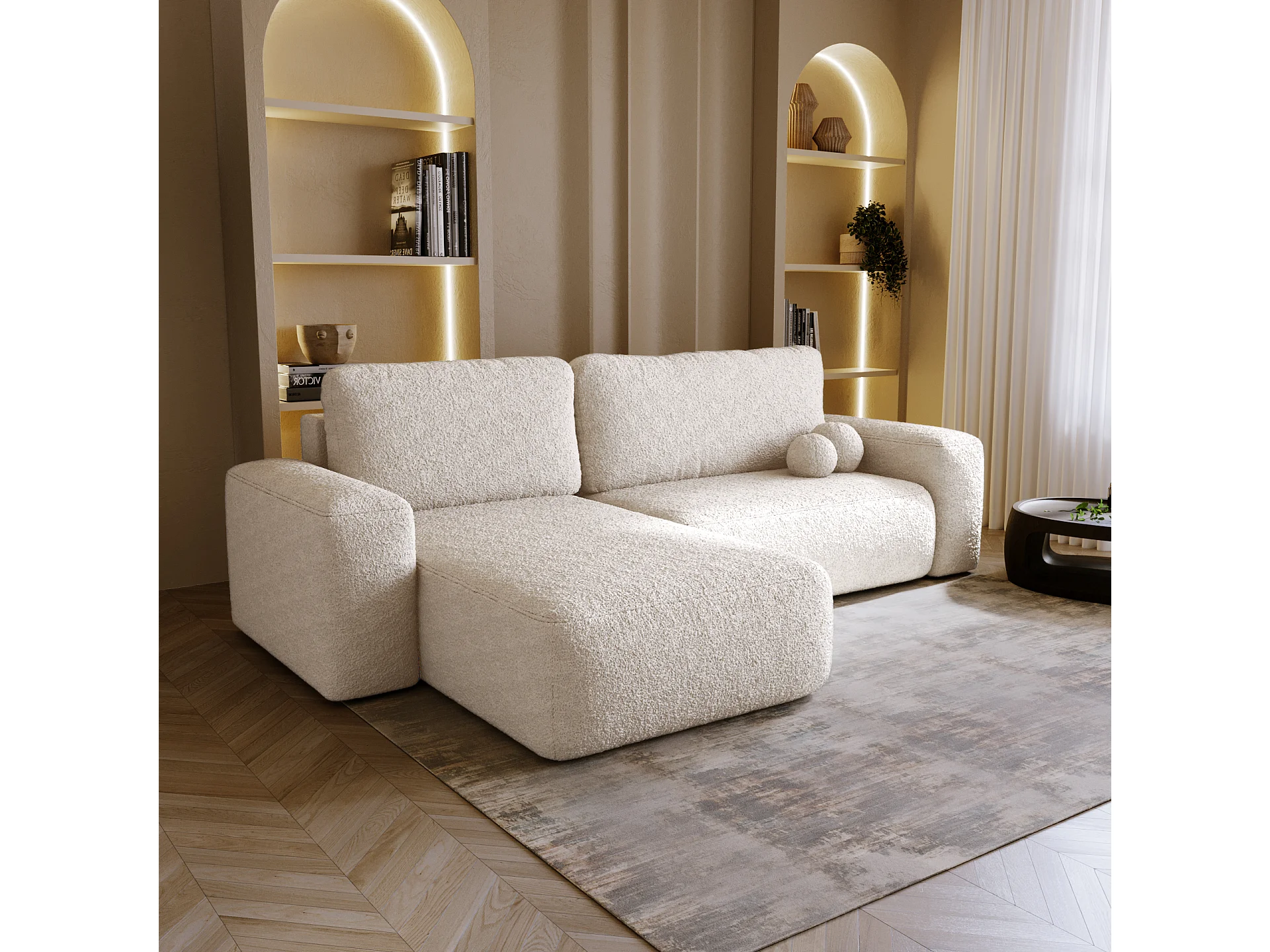 BESILIO Narożnik lewostronny rozkładany Ornello L- okrągłe poduszki, z funkcją spania, szezlong w boucle - Beżowy
