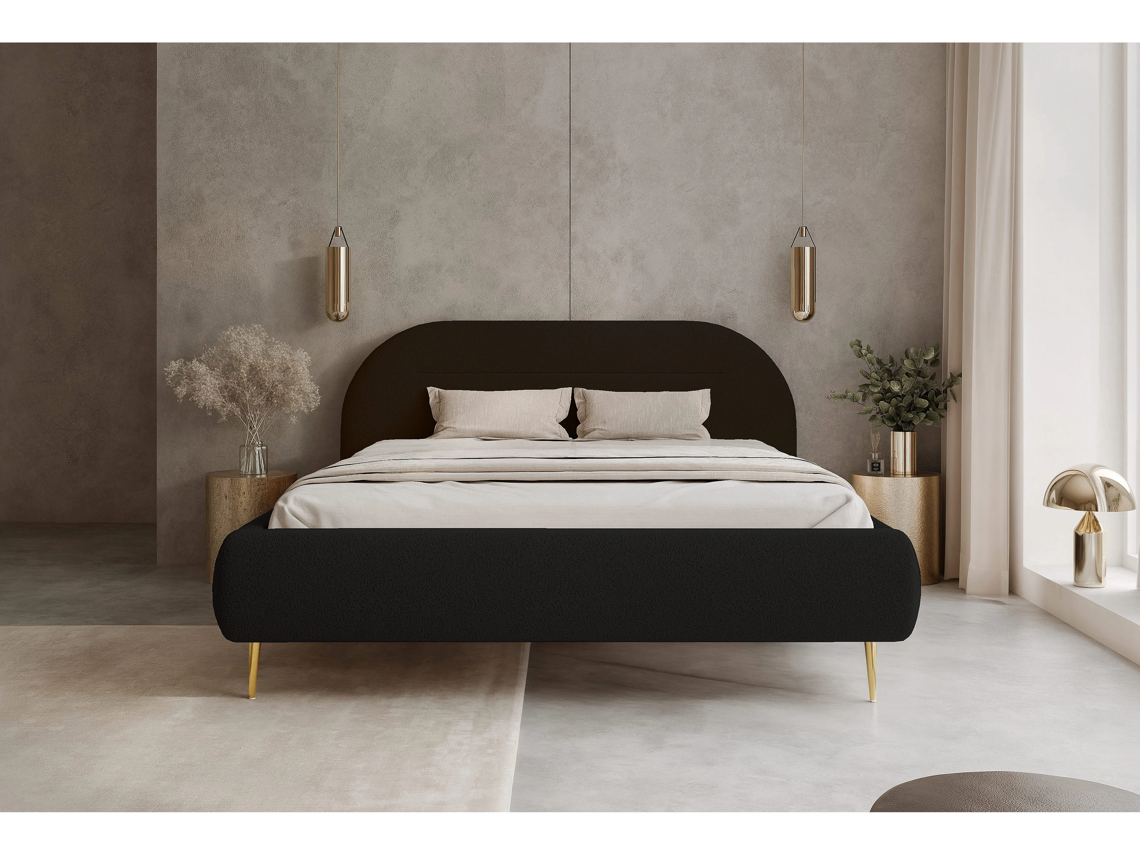BESILIO Nowoczesne łóżko z pojemnikiem 140x200 Apolline - łóżko zaokrąglone wezgłowie, miękka tkanina pluszowa- Czarny
